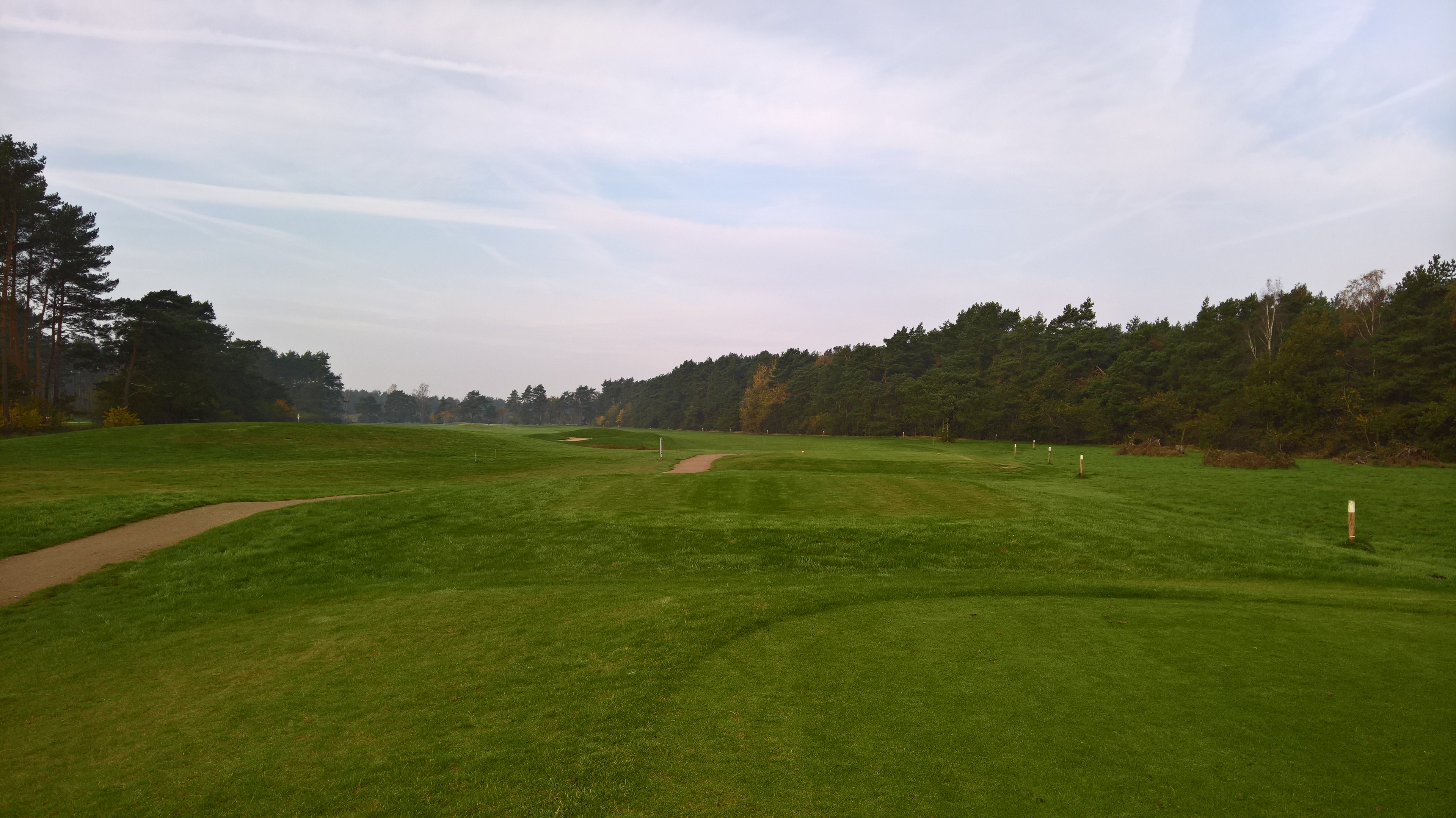 Der Meisterschaftsplatz selbst fängt mit drei eher unspektakulären Bahnen an. Wie die meisten Löcher spielt man sich durch einen Wald, der fast alle Fairways sowohl rechts als auch links begrenzt. Ein befreundeter Golfer hat es mal so beschrieben: „Die Schlagfolge ist immer gleich: Langer Eisenschlag – Chip aus dem Wald – langer Eisenschlag – Chip aus dem Wald…“