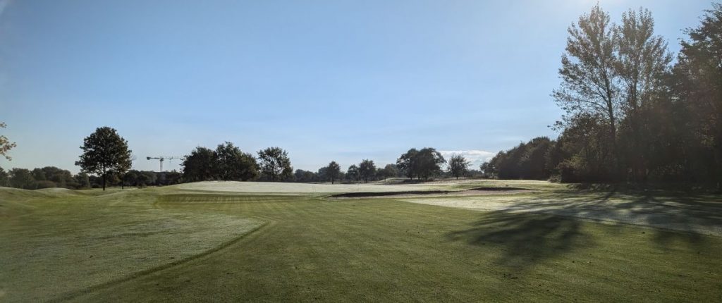 Zum ersten Abschlag ist es auch nur einen kurzen Fußweg in Richtung des Ferienparks, neben dem noch ein 9 Loch Kurzplatz liegt und zum Wedges- und Kurzspieltraining einlädt. Das neue große Hauptgebäude des Ferienparks wird Mitte 2025 fertiggestellt und macht schon einen schicken Eindruck.