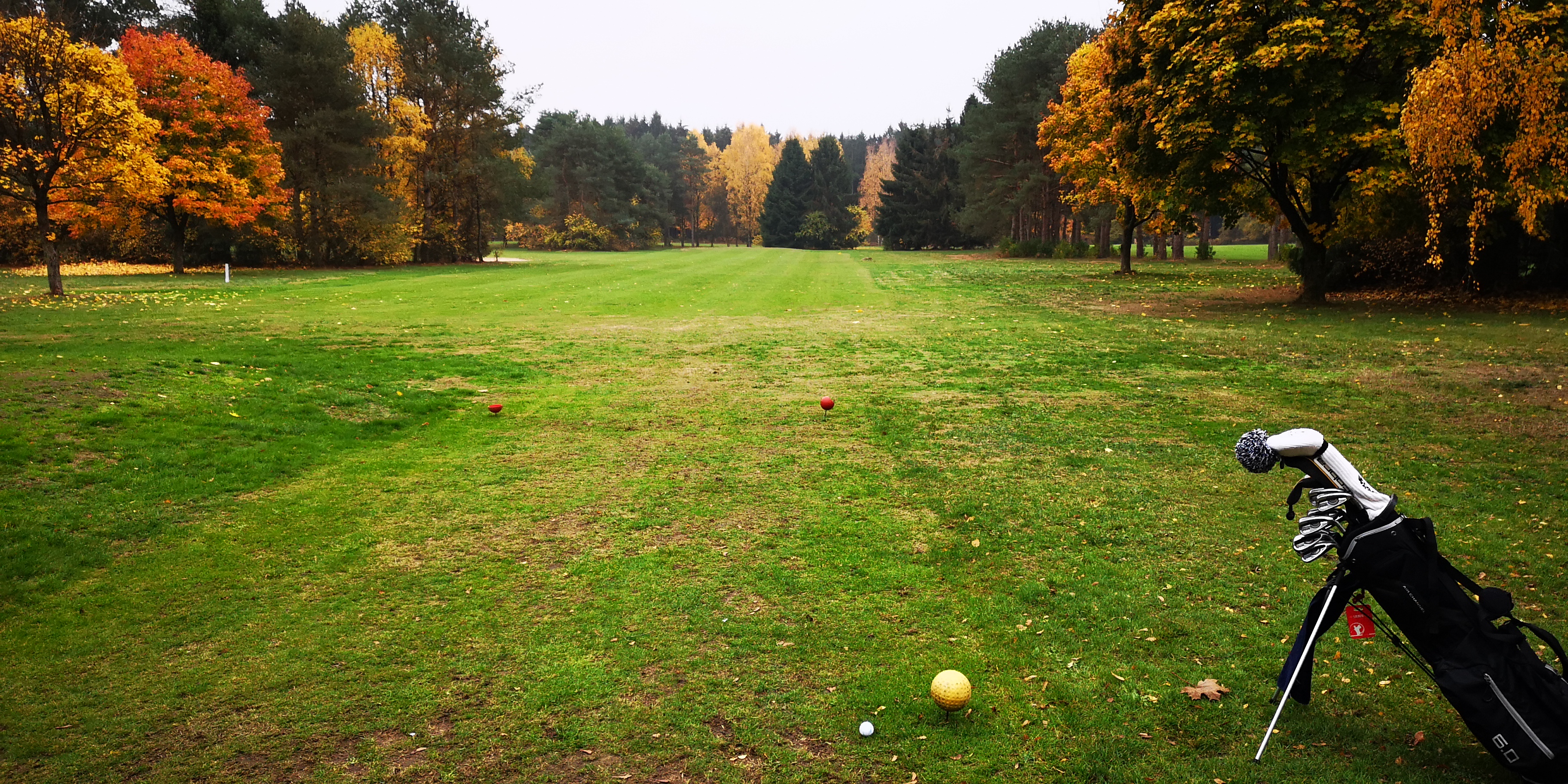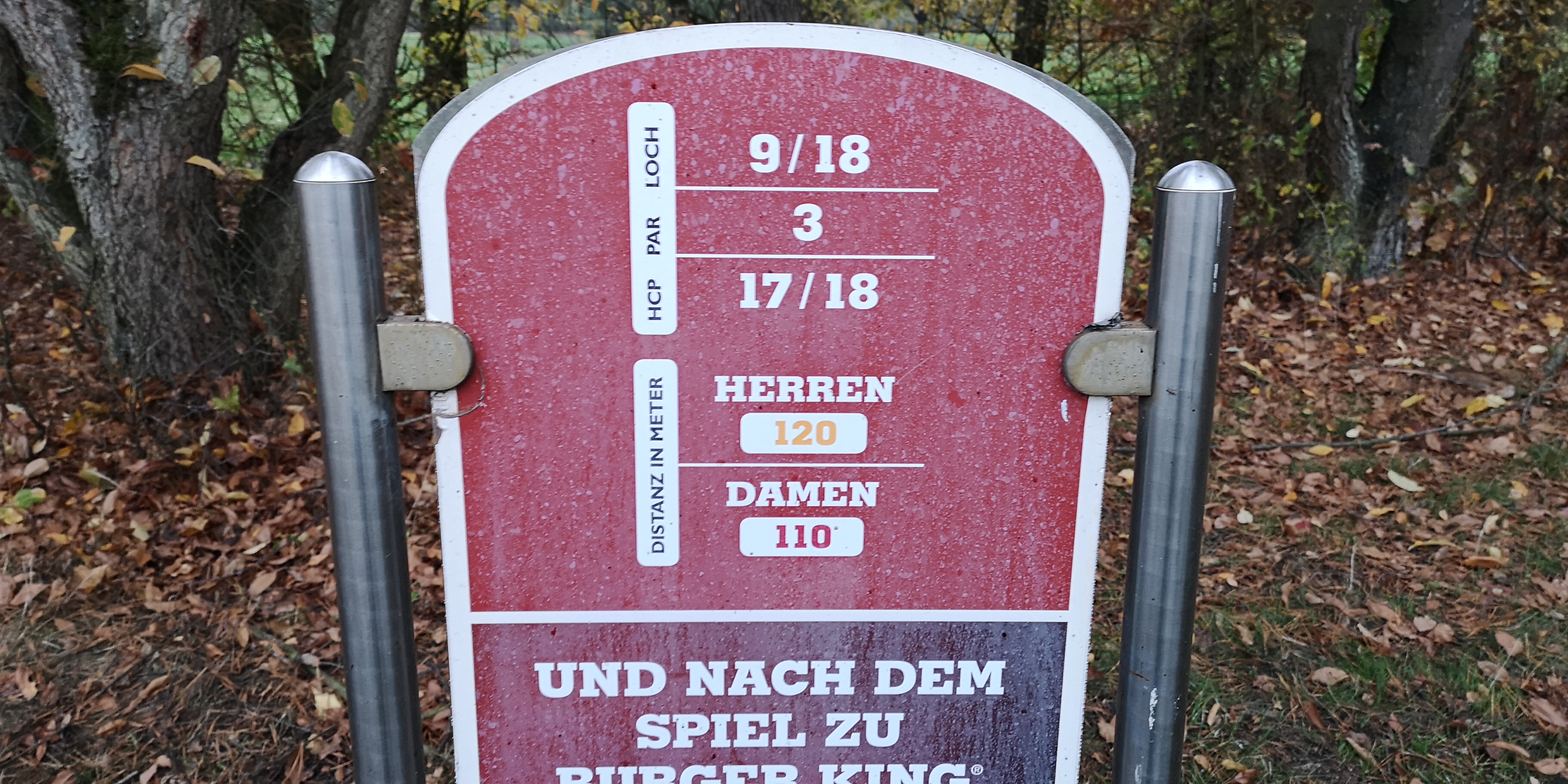 Wetter- und zeitbedingt kam ich auf einem fast leeren Parkplatz an und suchte nach Orientierung. Nach dem freundlichen Hinweis eines anderen Spielers habe ich dann den Weg zum 9 Loch Platz gefunden (eine Beschilderung ist entweder nicht vorhanden oder so gut versteckt, dass ich sie nicht gesehen habe).