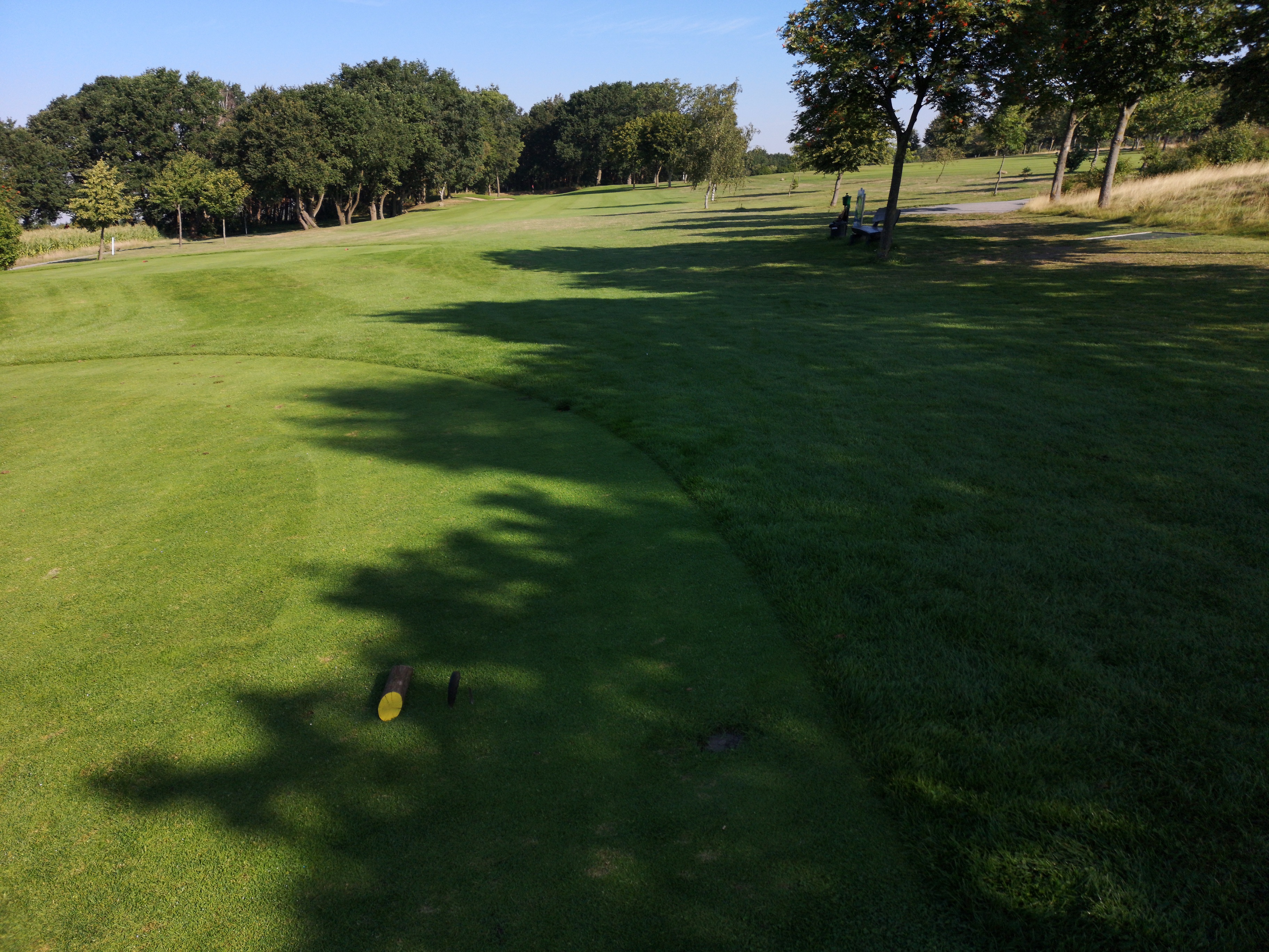 Die Homepage gibt die 1 übrigens als schwerstes Loch des Platzes an – was auch immer stimmt, leicht spielt sich die Bahn jedenfalls nicht. Online gibt es eine Spielbeschreibung für den Scratch- und eine zweite für den Bogeygolfer. Das hatte ich auch schon einmal beim Golf-Klub Braunschweig gesehen und finde es nach wie vor sehr gut.