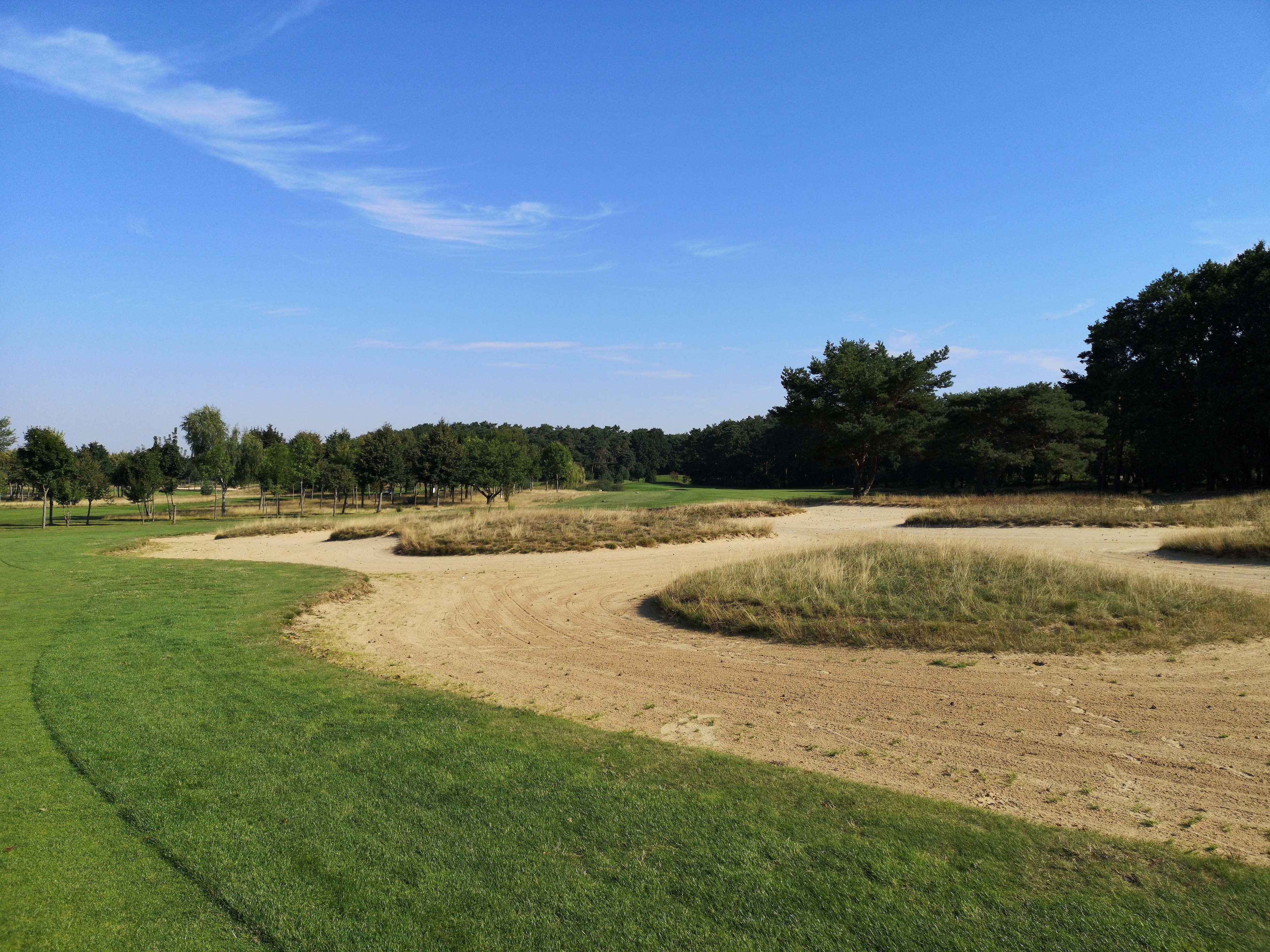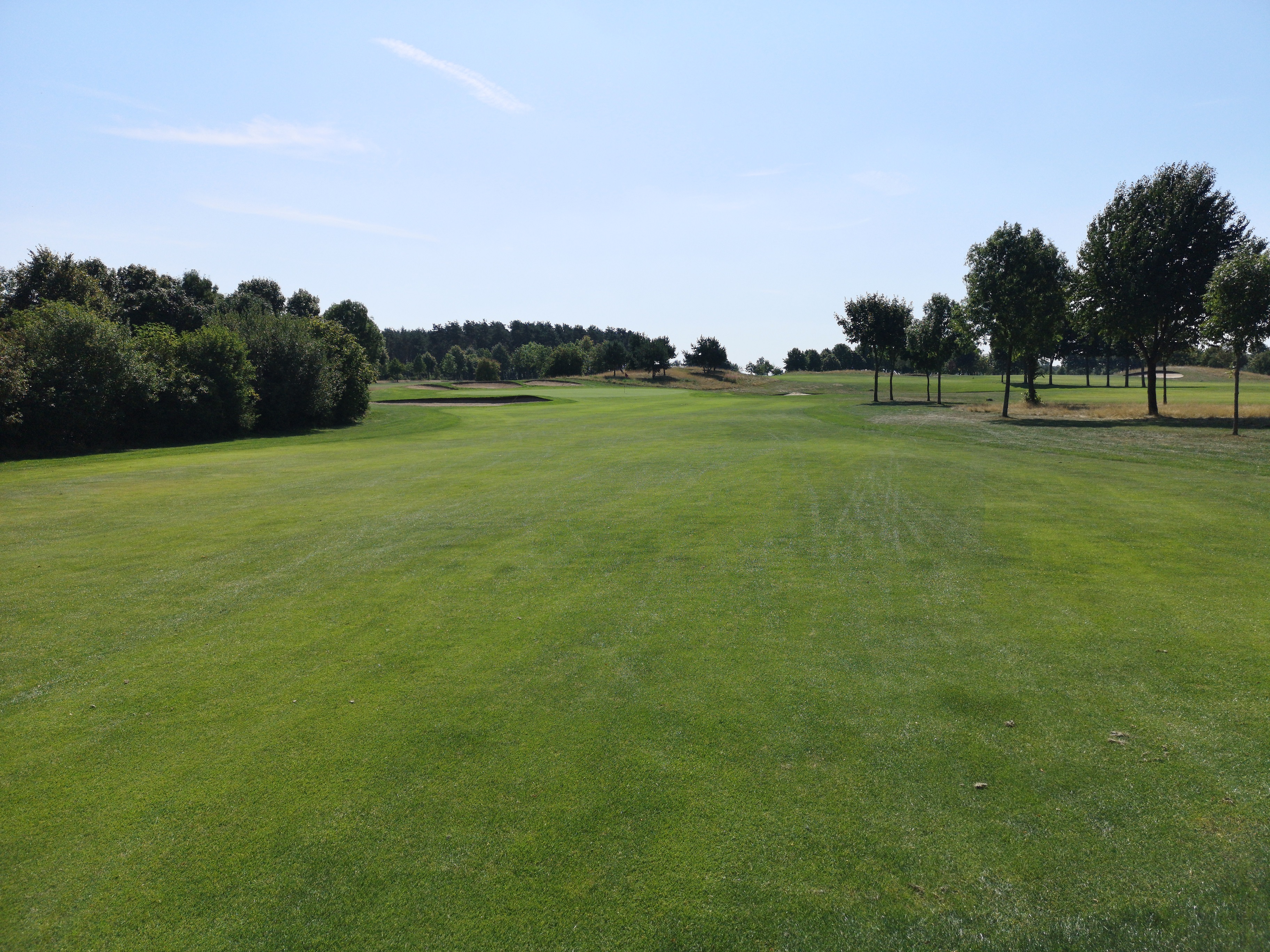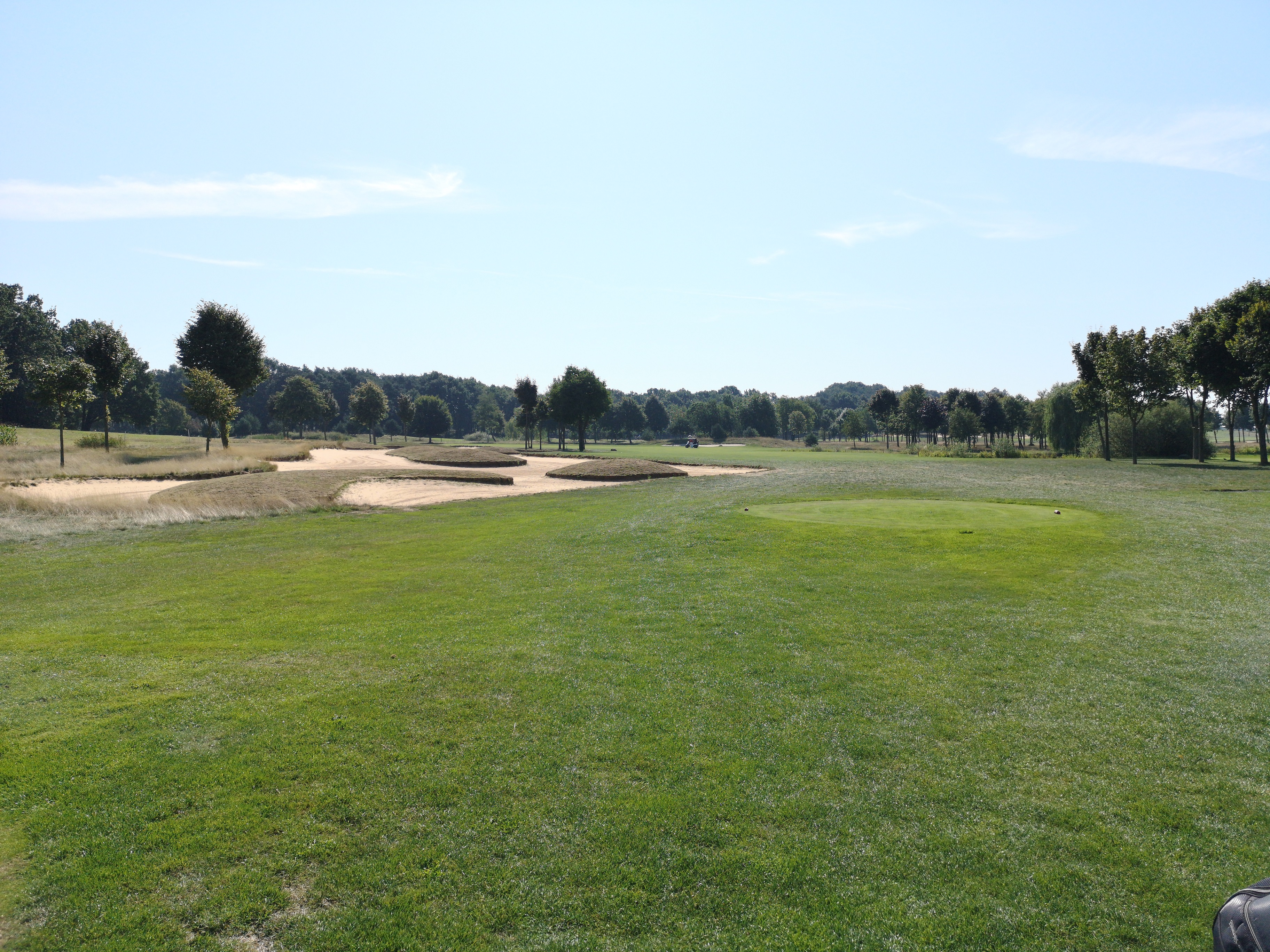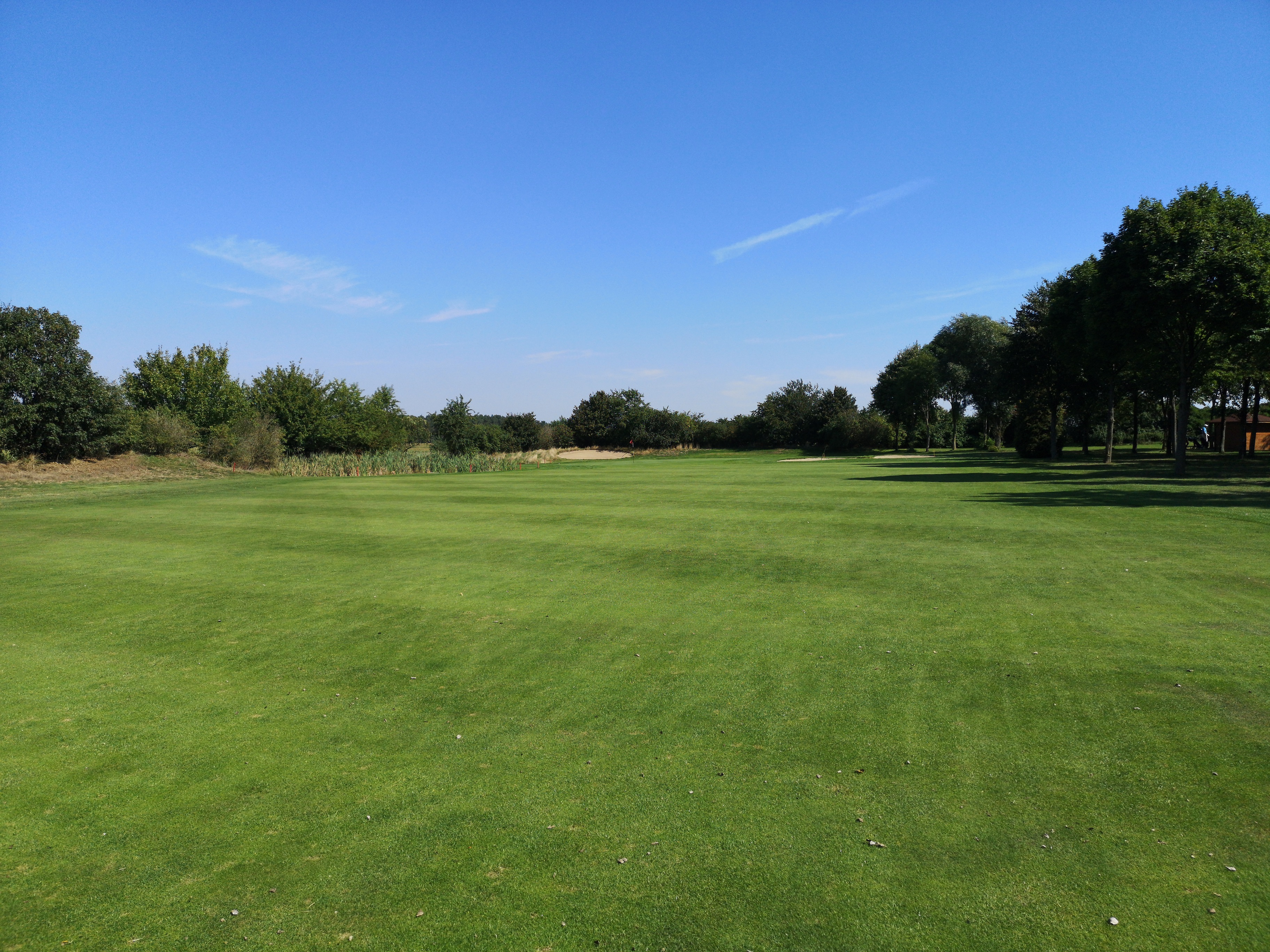 Die nächsten Löcher verlaufen ruhig durch das Gelände, das nicht ganz so eben ist, wie ich es erwartet hatte. Auf der drei schlägt man erhöht ab und hat eine herrlich angelegte Waste Area im Blick, die das Fairway rechts säumt.