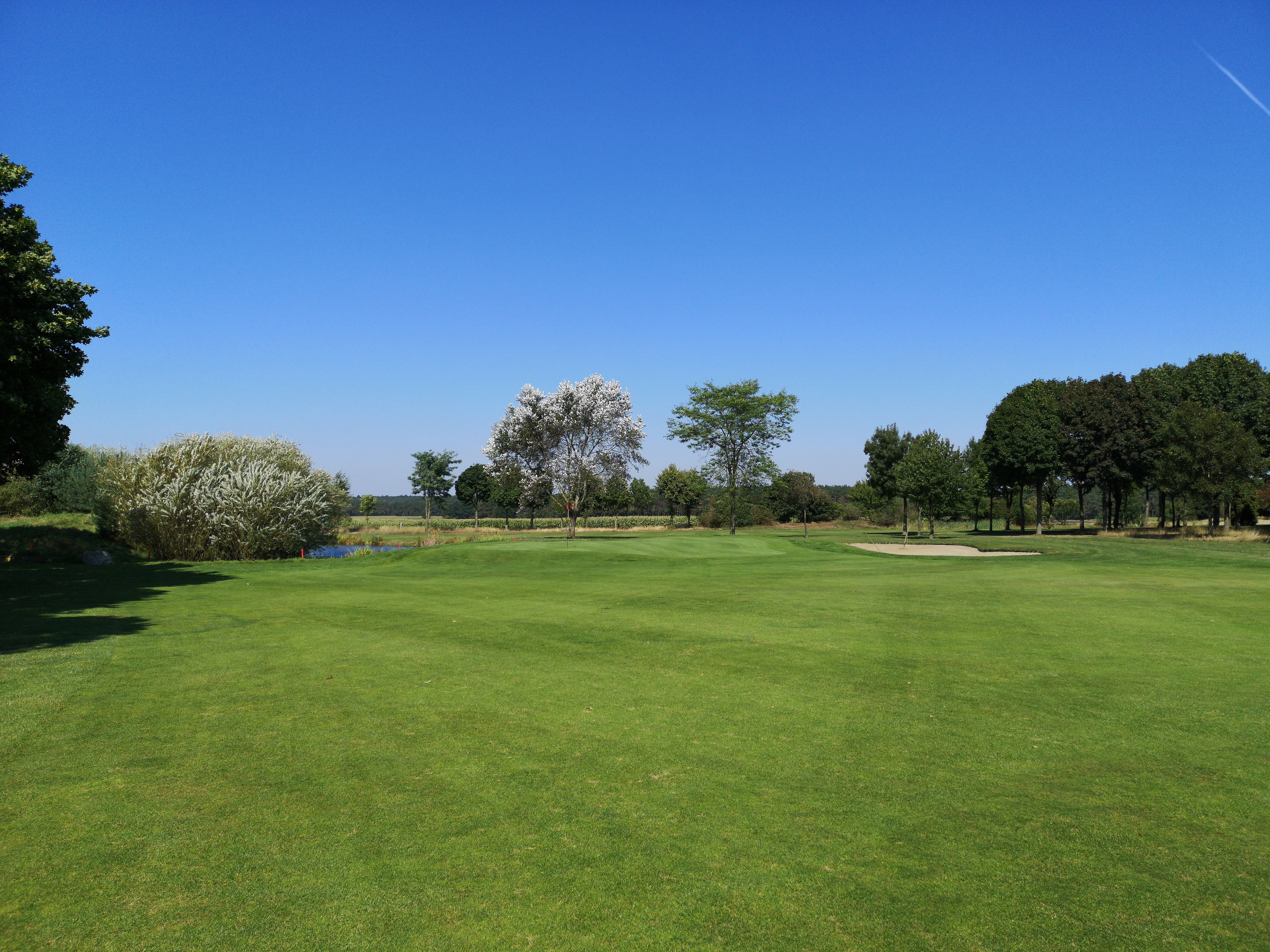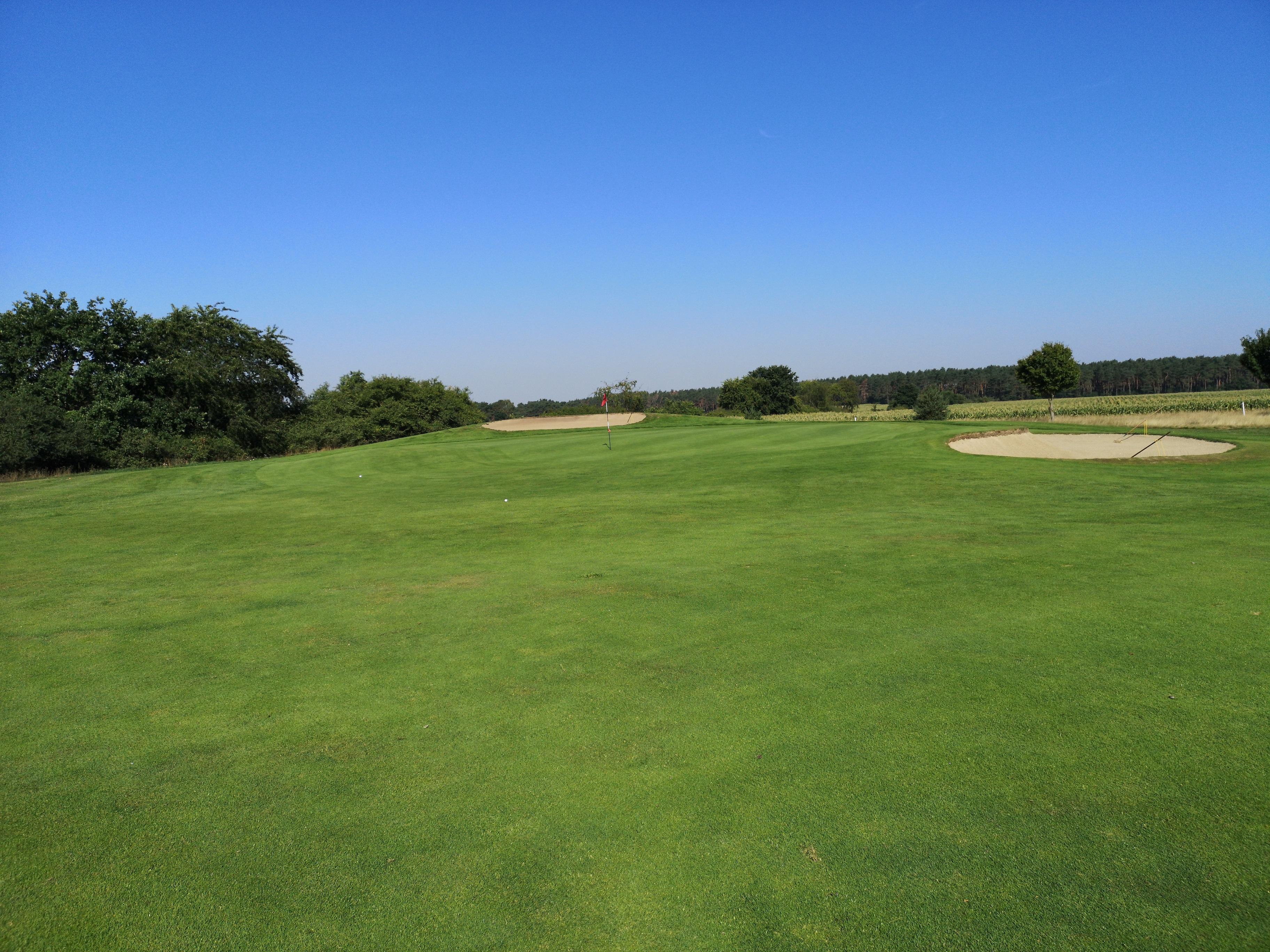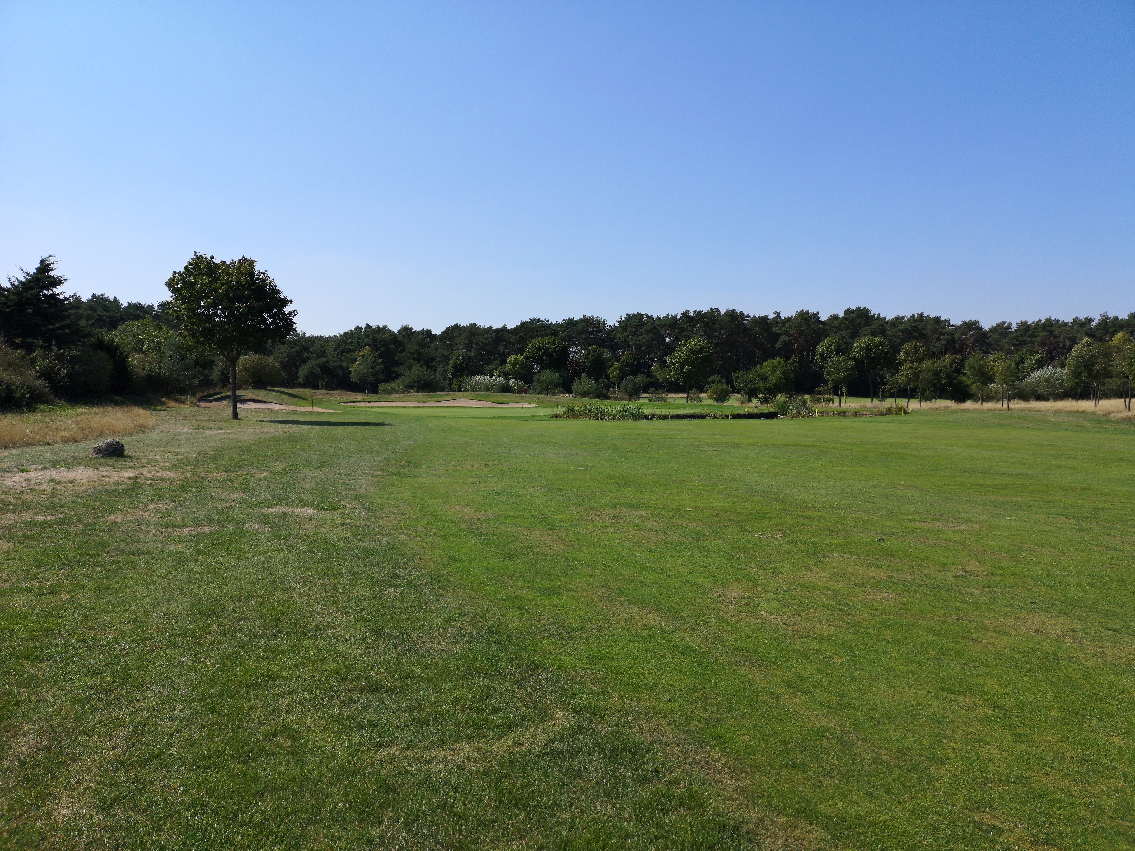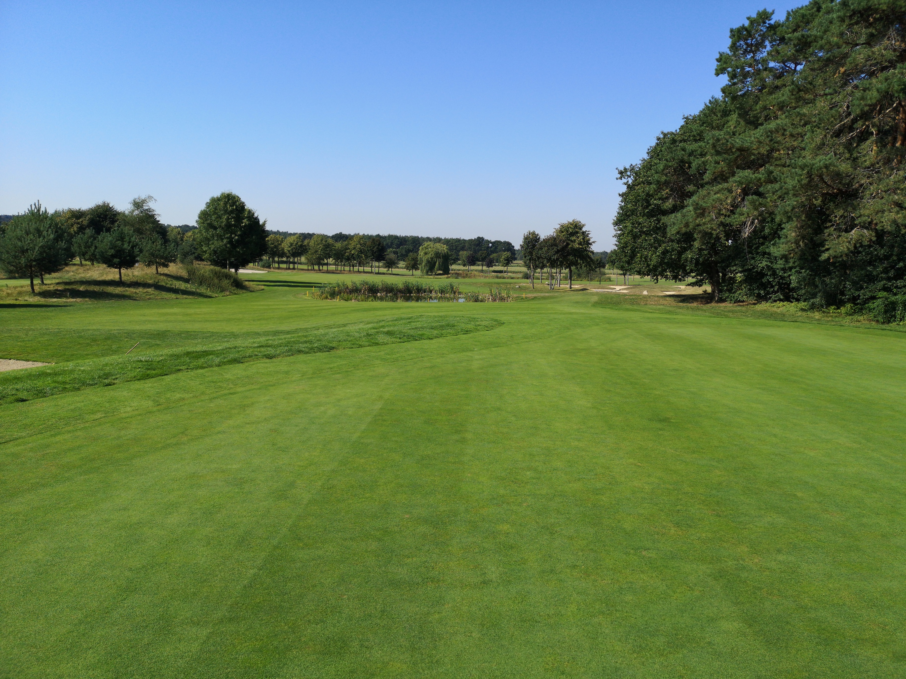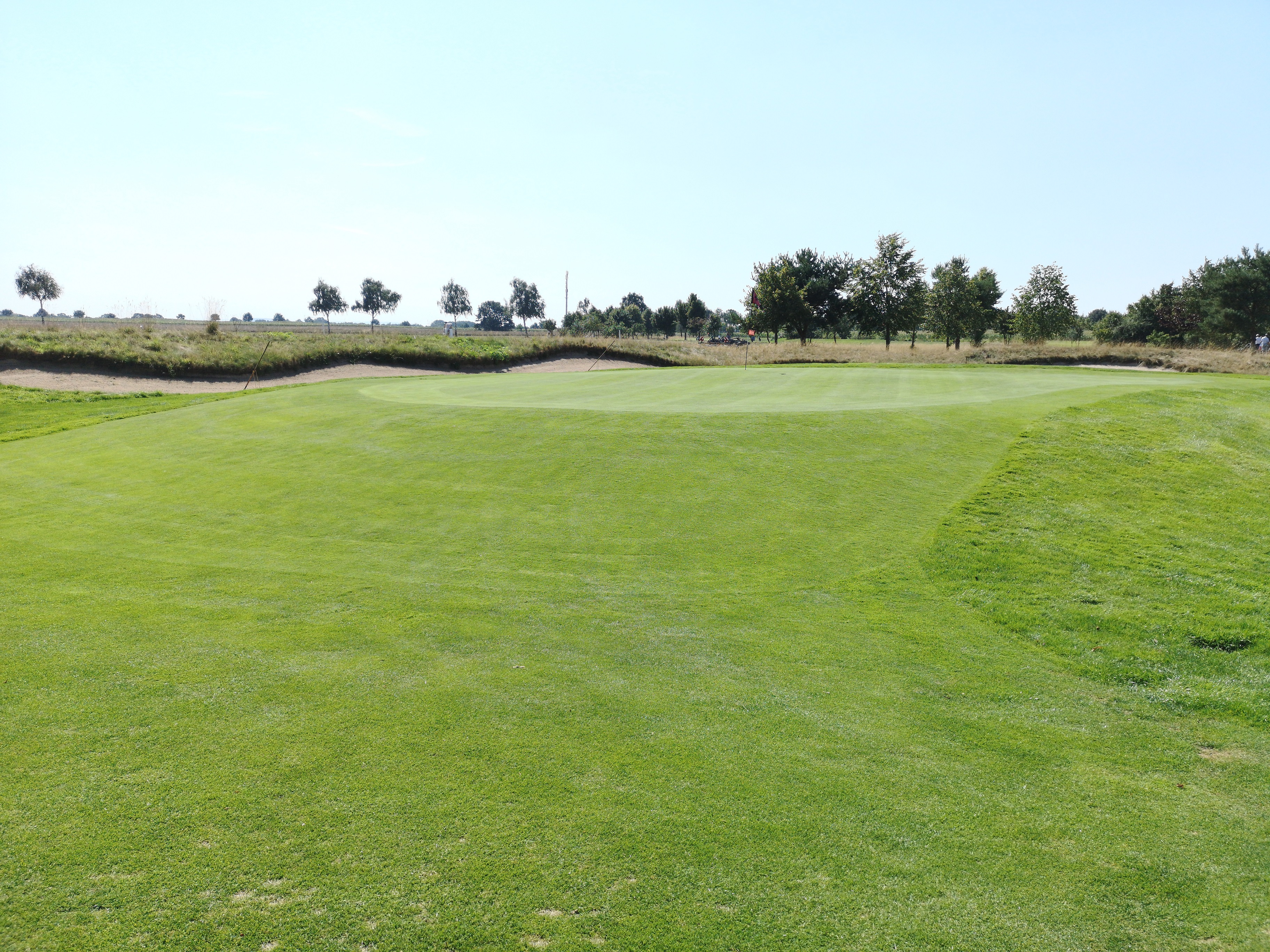 Die nächsten Löcher verlaufen ruhig durch das Gelände, das nicht ganz so eben ist, wie ich es erwartet hatte. Auf der drei schlägt man erhöht ab und hat eine herrlich angelegte Waste Area im Blick, die das Fairway rechts säumt.