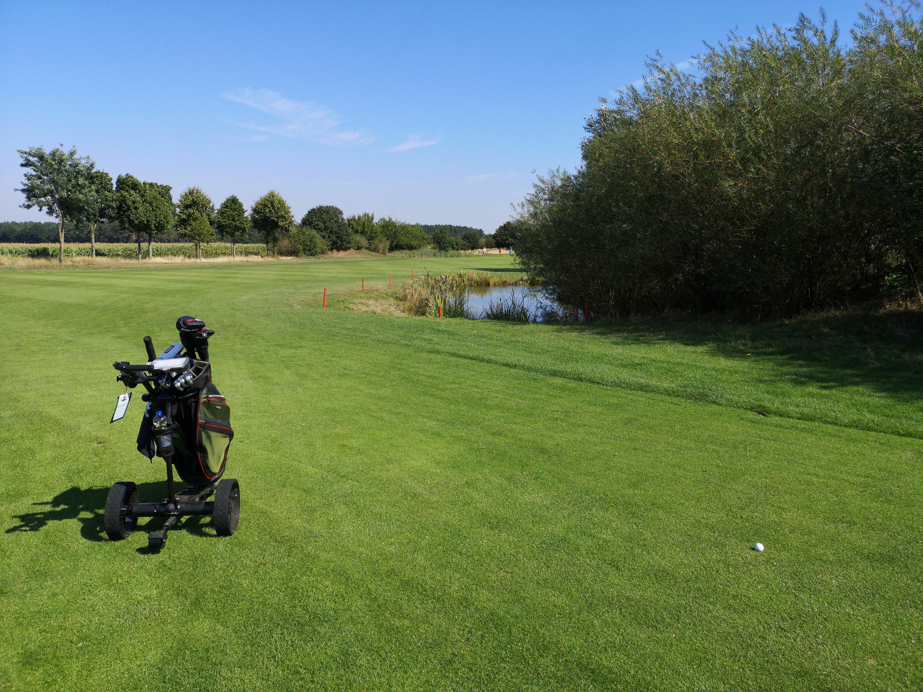 Auffällig fand ich, dass alle drei Grüns der Par 5 Löcher von einem Wasserhindernis bewacht werden. Das feuchte Bällegrab kommt jetzt insgesamt öfter vor, an sieben der neun Löchern kann es nass werden.