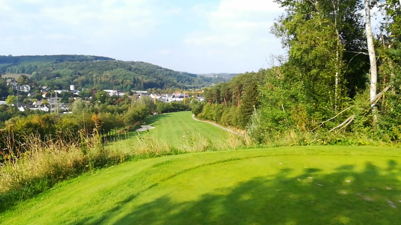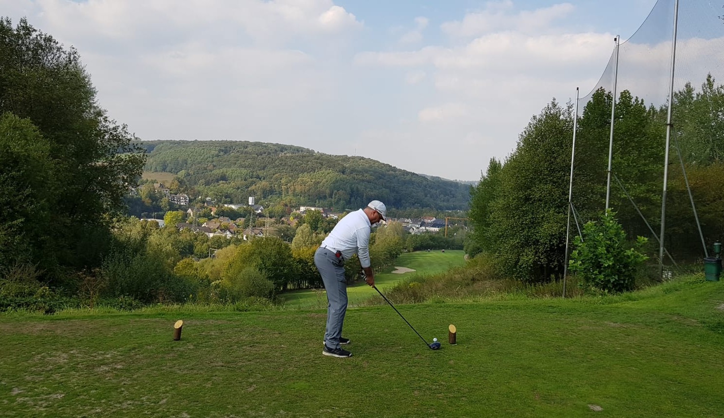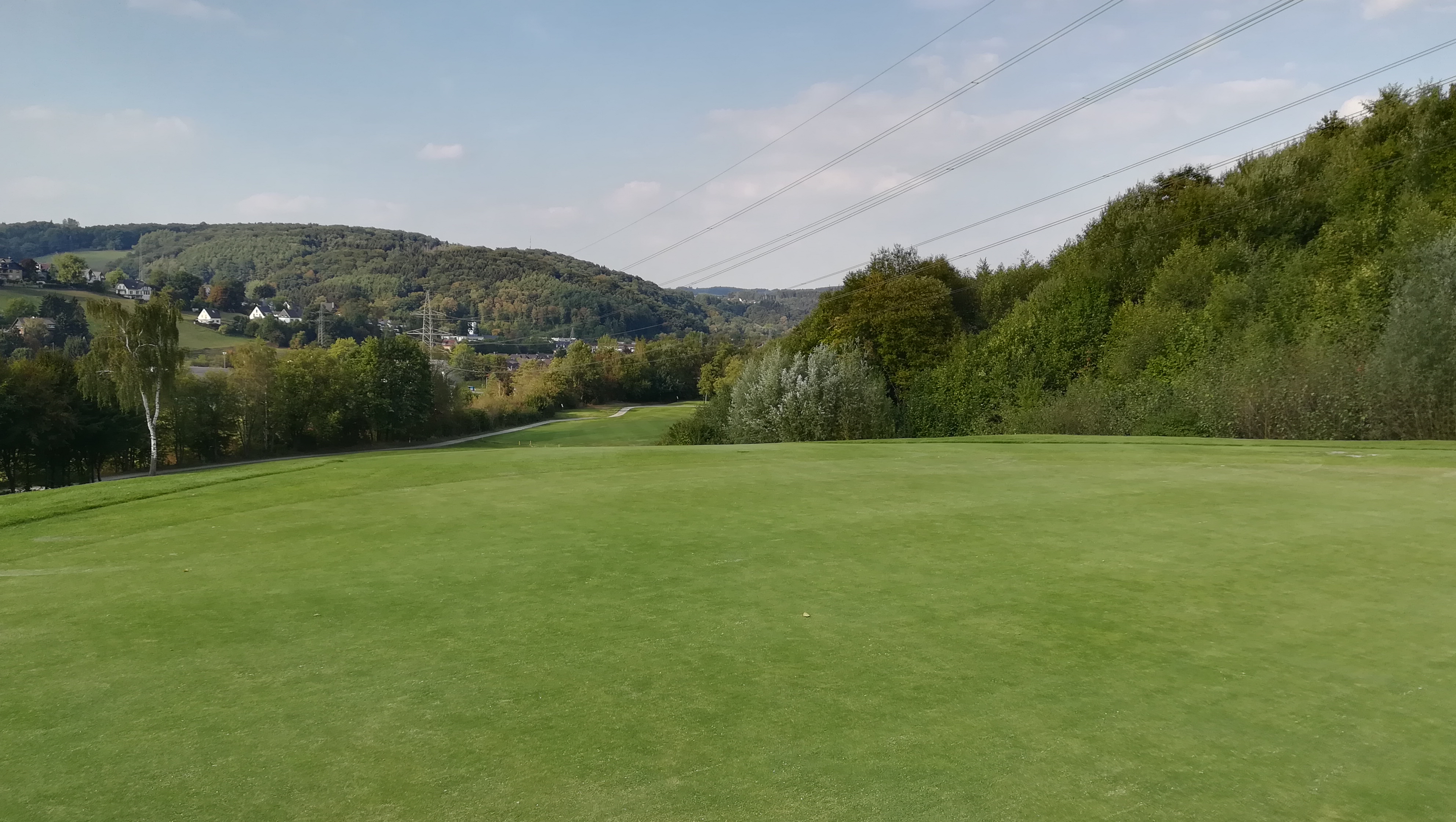 Die Anfahrt ist für einen Flachlandspieler wie mich schon interessant. Der Platz vom Golfclub am Lüderich liegt in Overath bei Köln und ist an einen Berghang gebaut. Also geht es ziemlich steil aufwärts, bis man endlich den Parkplatz erreicht.
