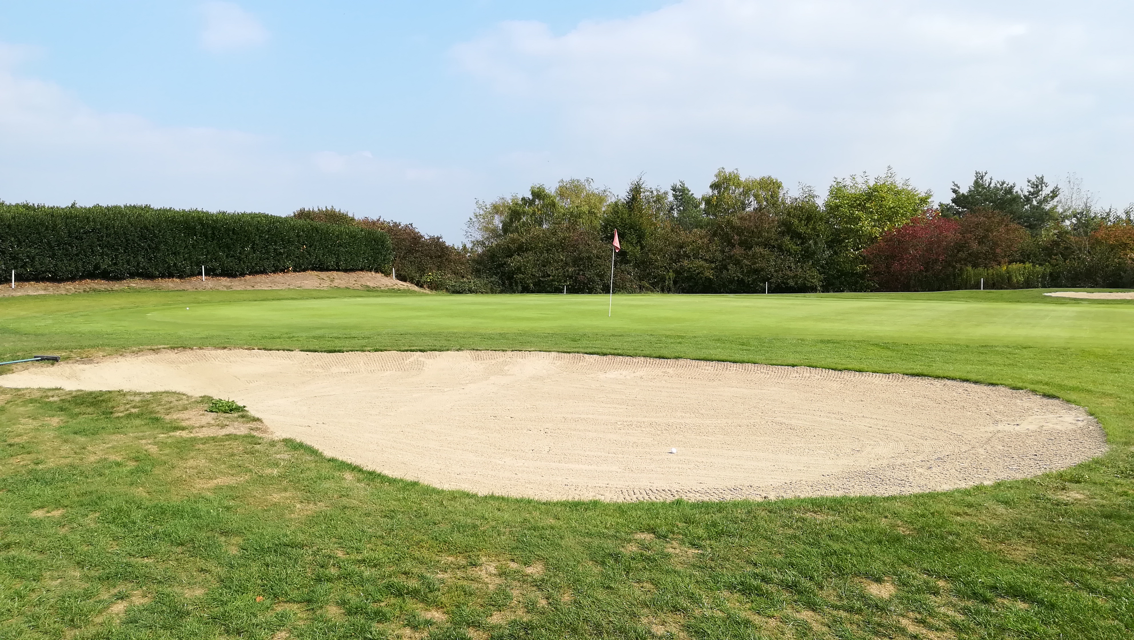 Die Frontnine im Golfclub am Lüderich bestehen aus drei Par 3 und sechs teilweise sehr kurzen Par 4. Insgesamt sind die neun Löcher gerade einmal 1.937 Meter lang und aus der Kürze wird vermutlich auch der geringe Slope-Wert resultieren. Wirklich leicht spielen sich die Löcher nämlich trotzdem nicht.