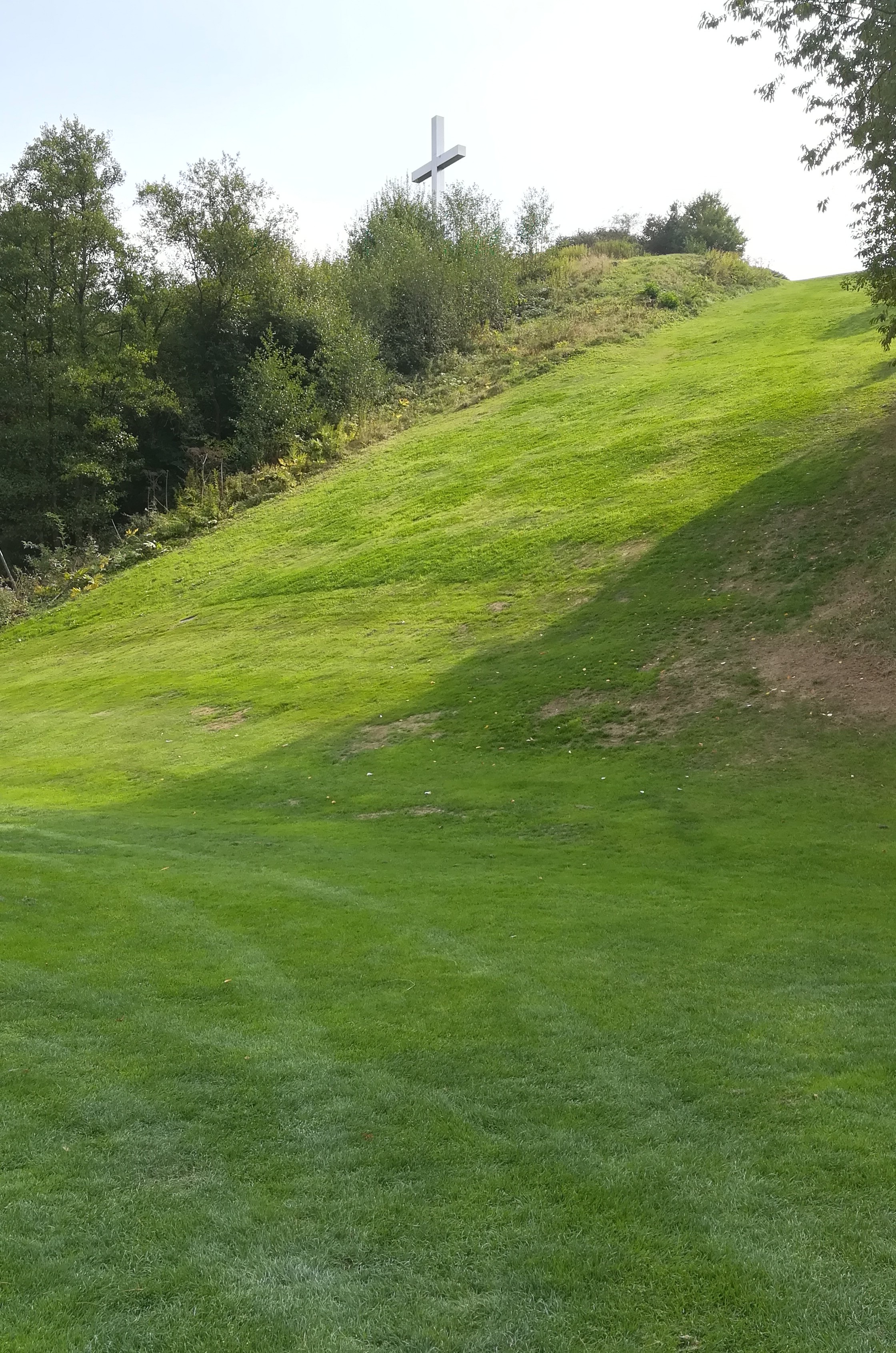 Hoch oben thront ein alter Förderturm. Der Golfplatz ist nämlich auf dem Gelände des ehemaligen Erzbergwerk Lüderich entstanden. Bis Ende 1978 wurde hier noch Erz abgebaut und aufbereitet, im Oktober 1978 stellte das Erzbergwerk dann endgültig den Betrieb ein. Der Förderturm erinnert an diese Vergangenheit.