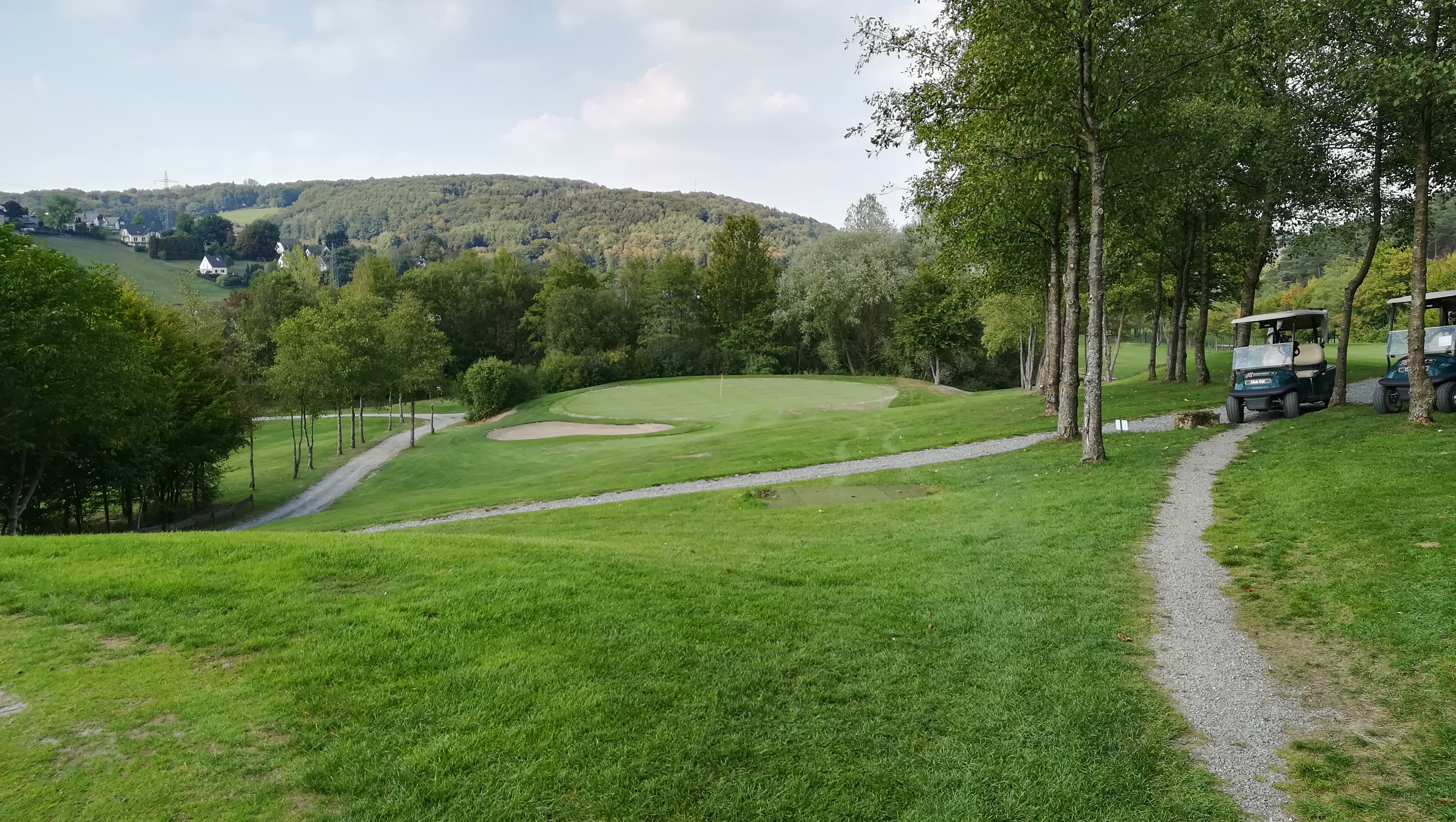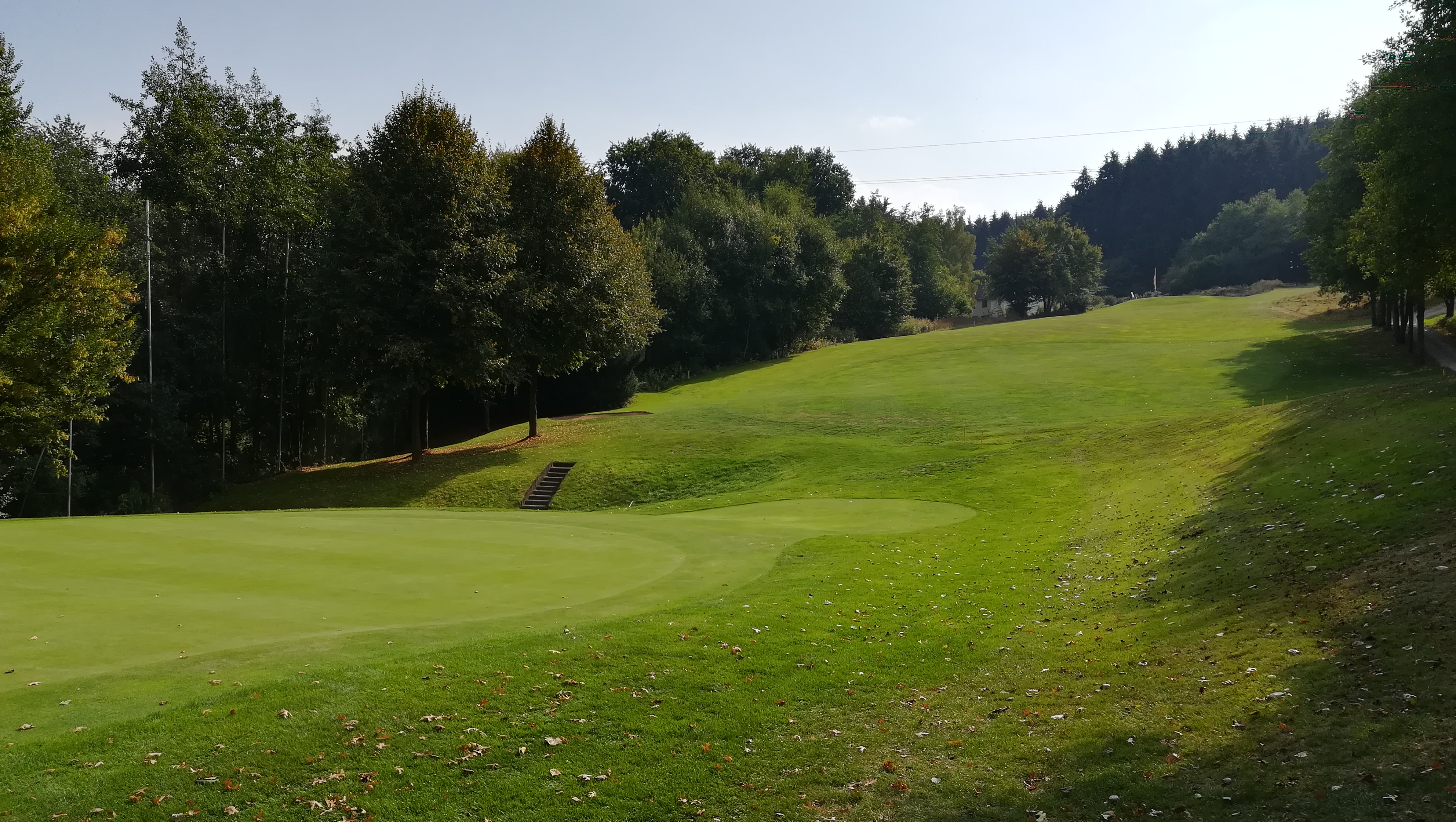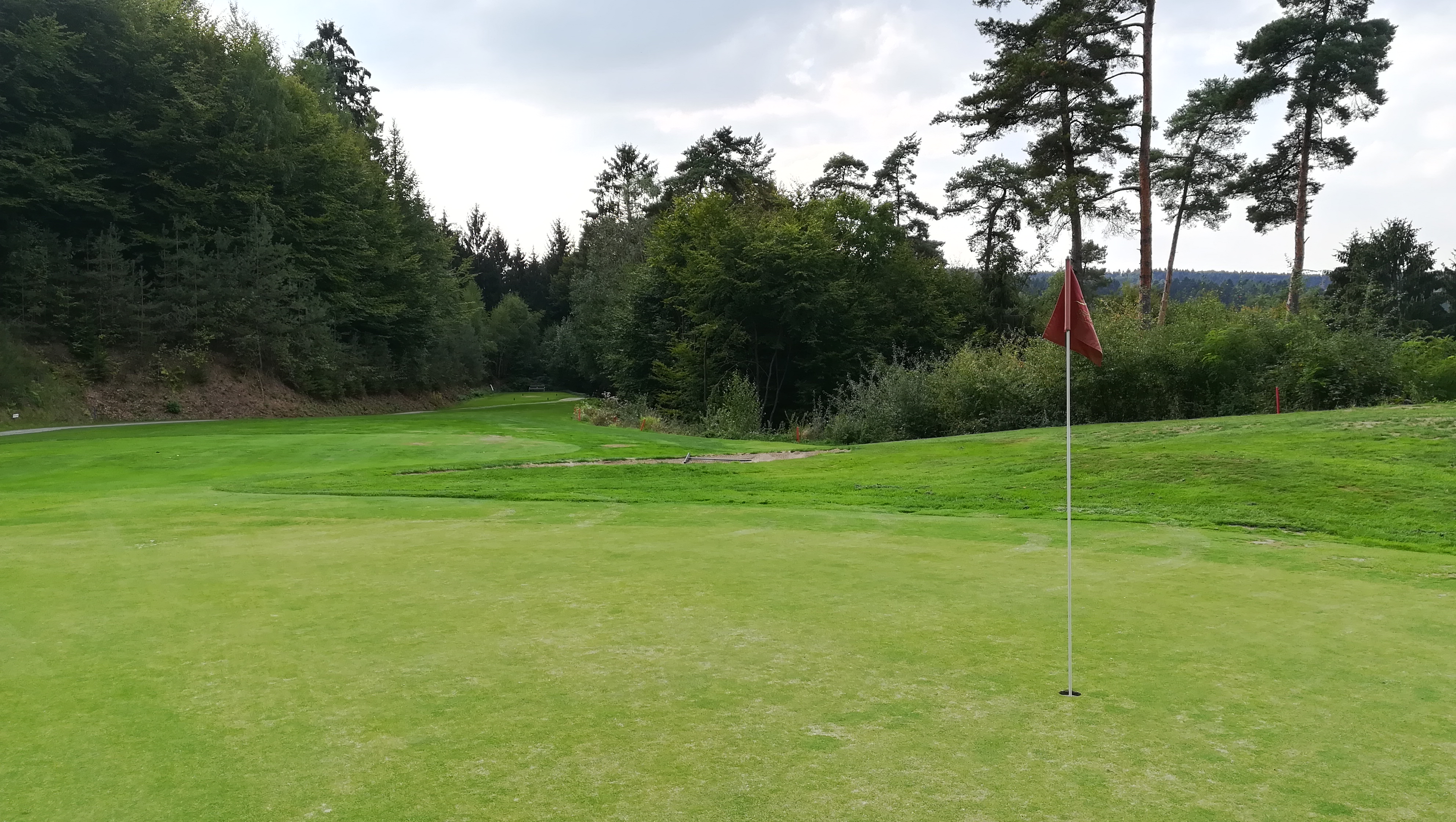 Zum Grün hin geht es wieder einige Meter aufwärts und damit wird das Anspiel der Fahne spürbar erschwert, zumal man die Position auf dem Grün nicht wirklich sieht.