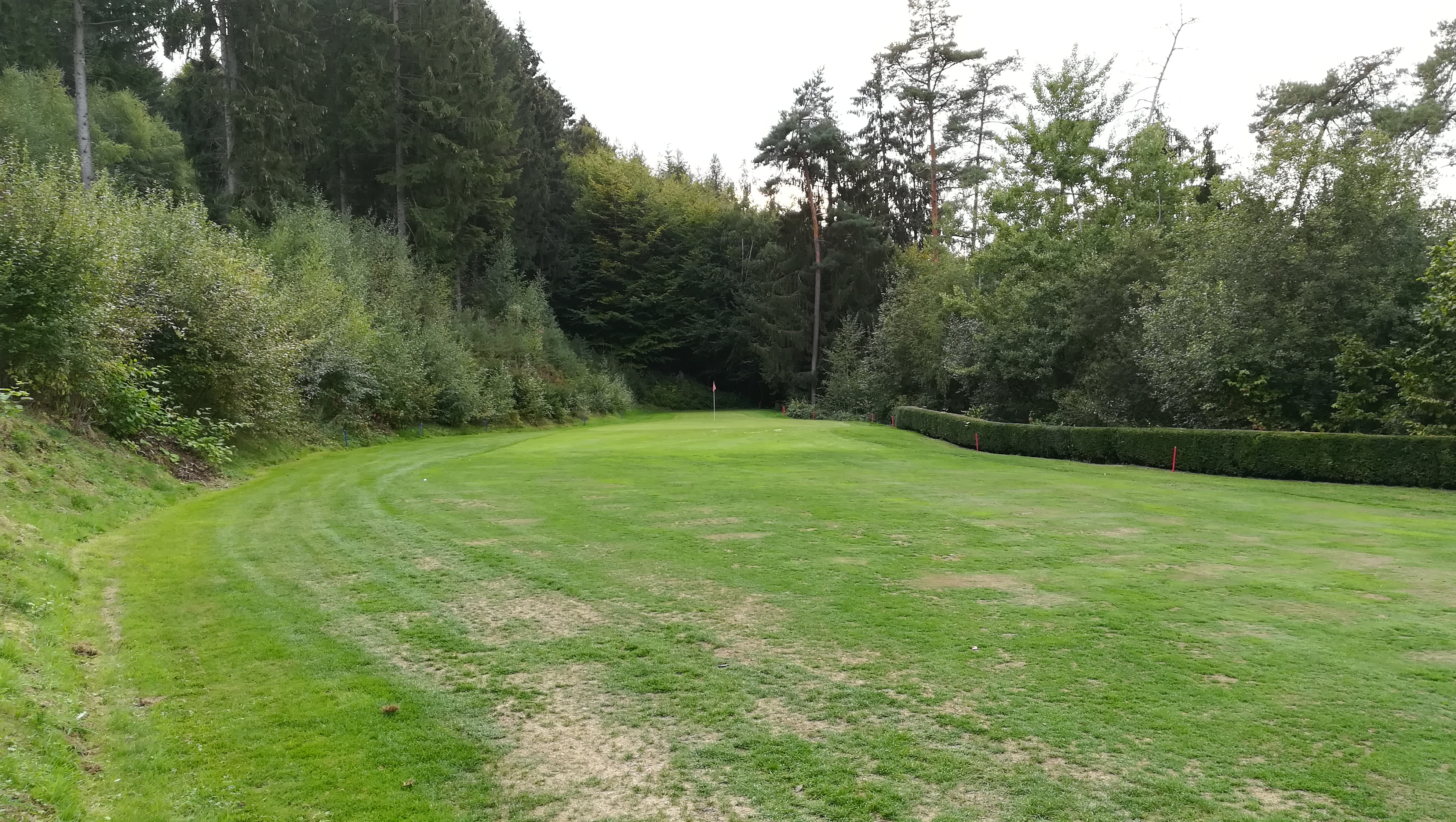 Kurz gesagt bedeutet das schlicht: Triff das Kurzgemähte oder freunde Dich mit dem Gedanken an, Dich von Deinem Ball zu verabschieden. Und genau so sieht es bei den meisten Löchern der Backnine im Golfclub am Lüderich aus: Dichter Wald ringsum, enge Gassen oder schmale Anspiele auf die Grüns.