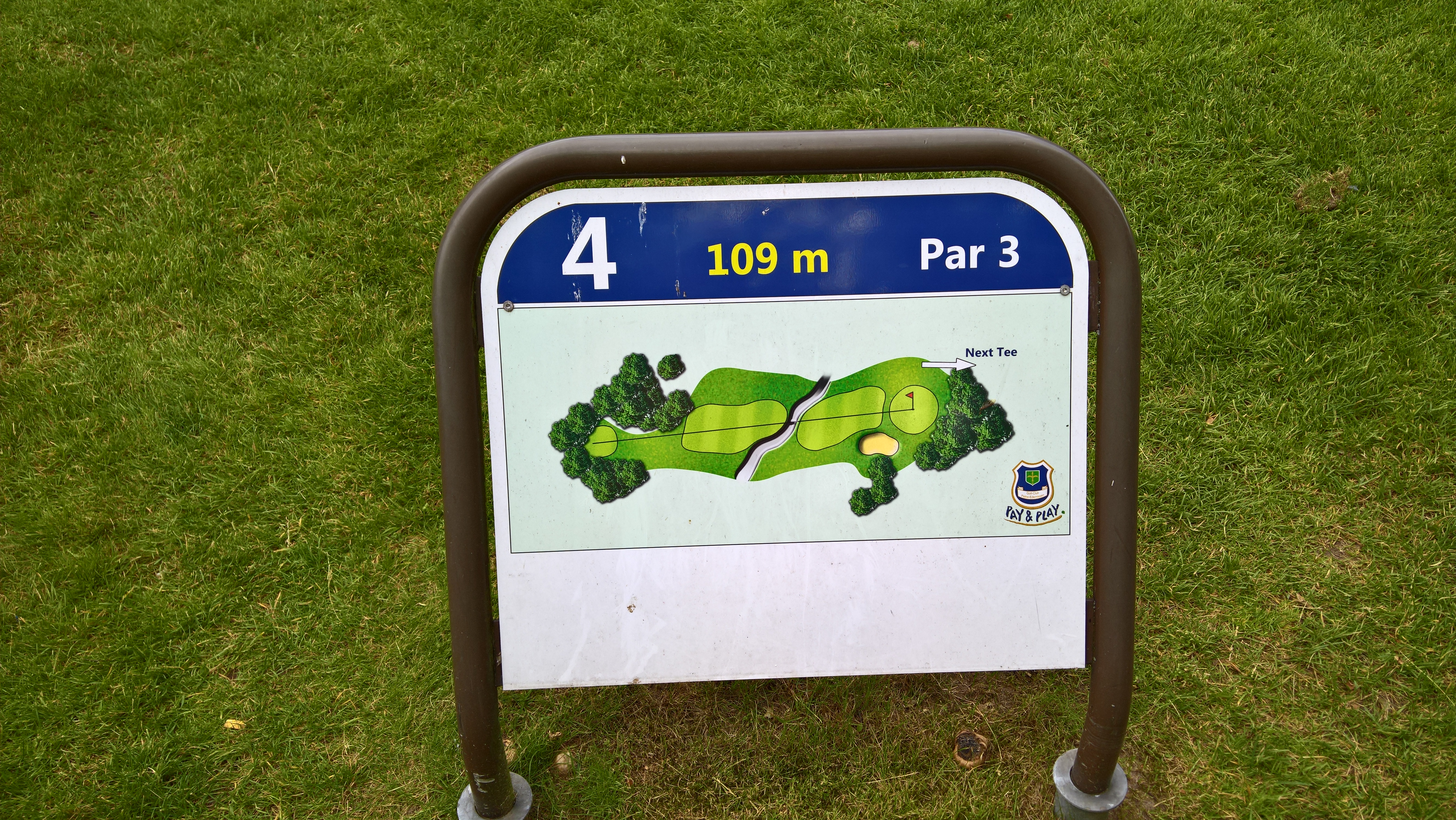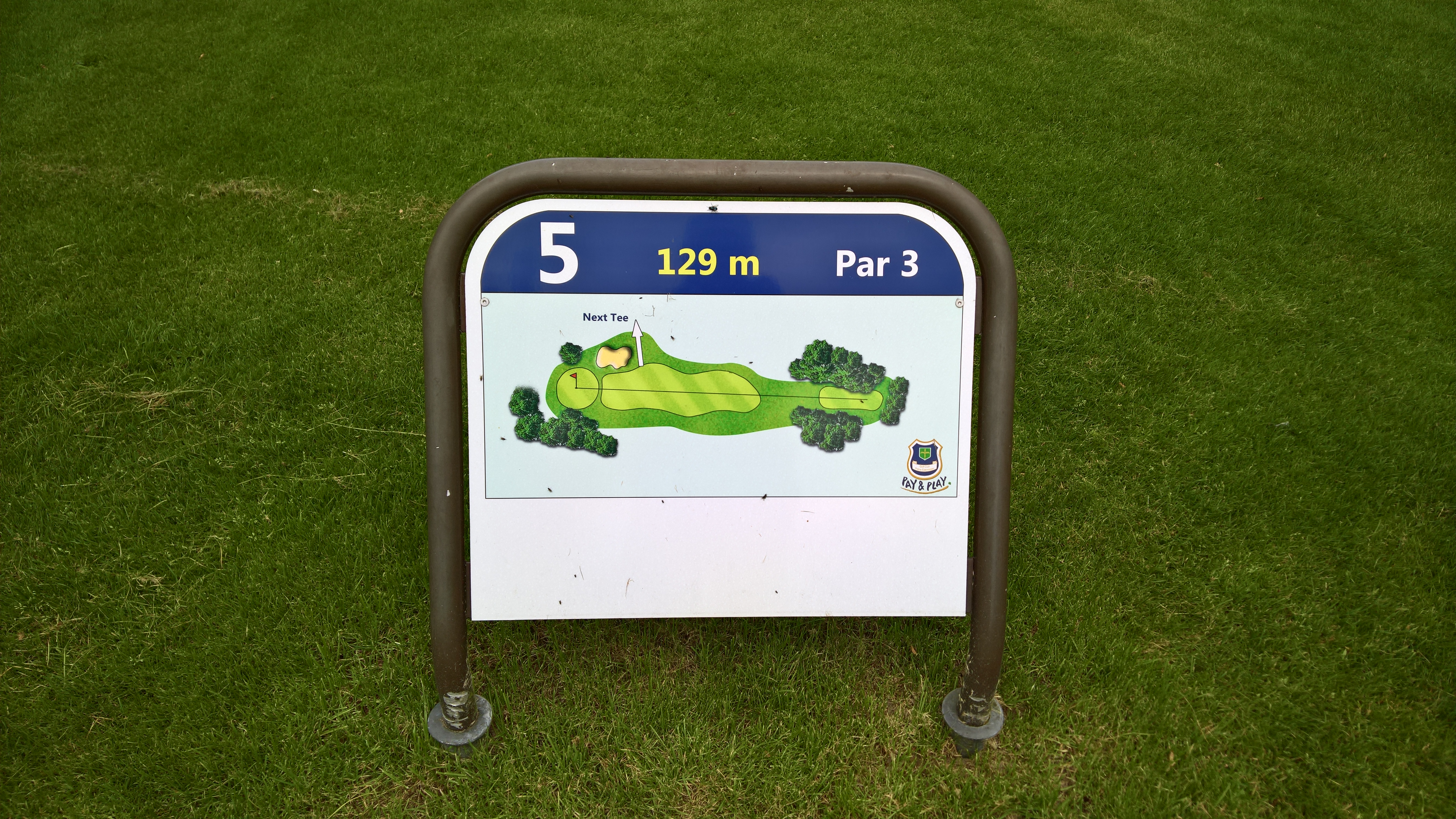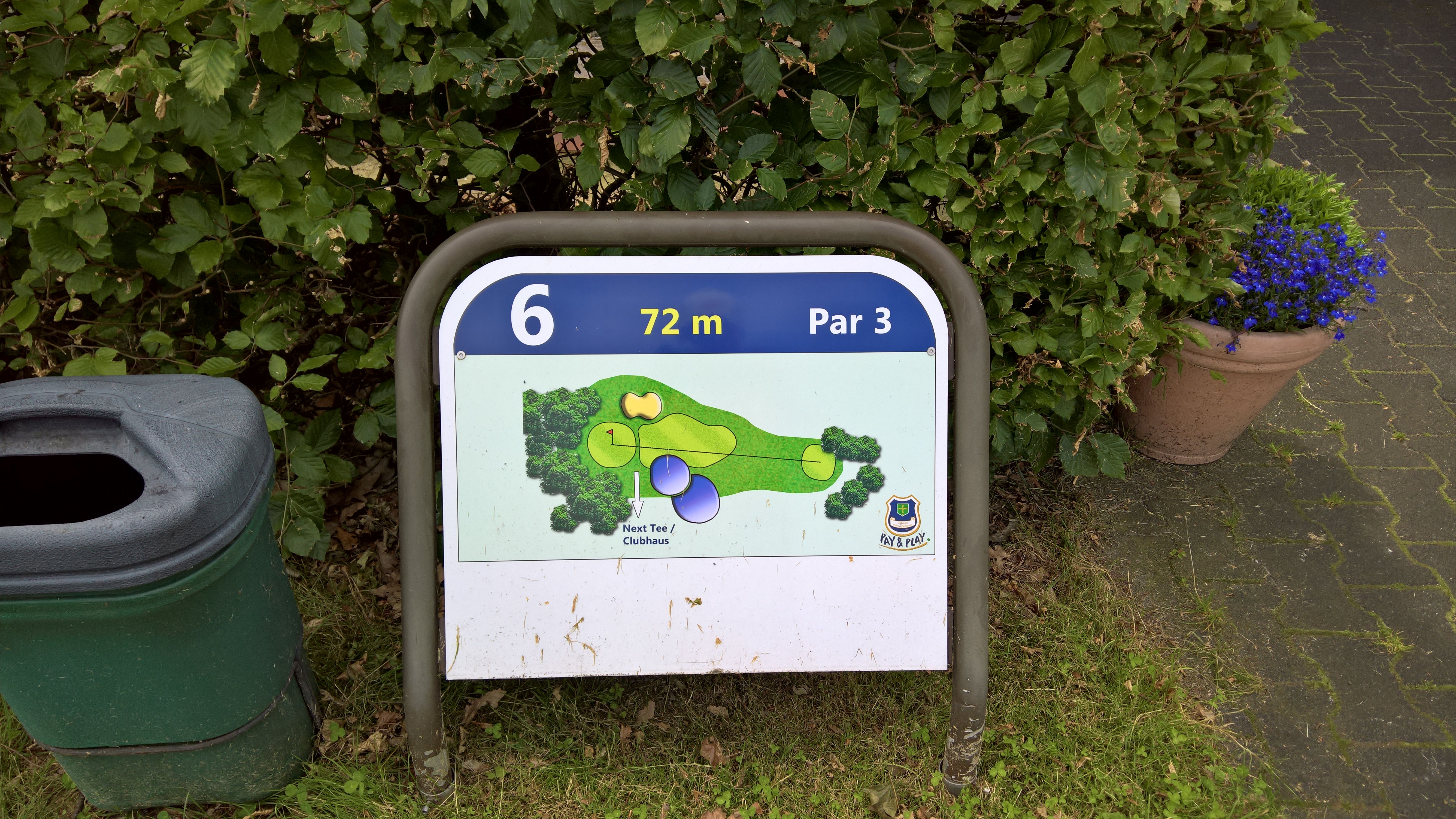 Bei den sechs Bahnen handelt es sich um allesamt (sehr) kurze Par 3. Die längste Bahn ist gerade einmal 129 Meter lang, das Abschlussloch ist mit 72 Metern dann das kürzeste. Man hat also in der Regel ein kurzes Eisen oder sogar nur ein Wedge in der Hand, wenn man am Abschlag steht. Landschaftlich sind die Bahnen nett angelegt, alles ist baumbewachsen und Bahn sechs hat als optisches Highlight einen kleinen Teich vor dem Grün, in dem sogar ein Springbrunnen vor sich hinsprudelt.