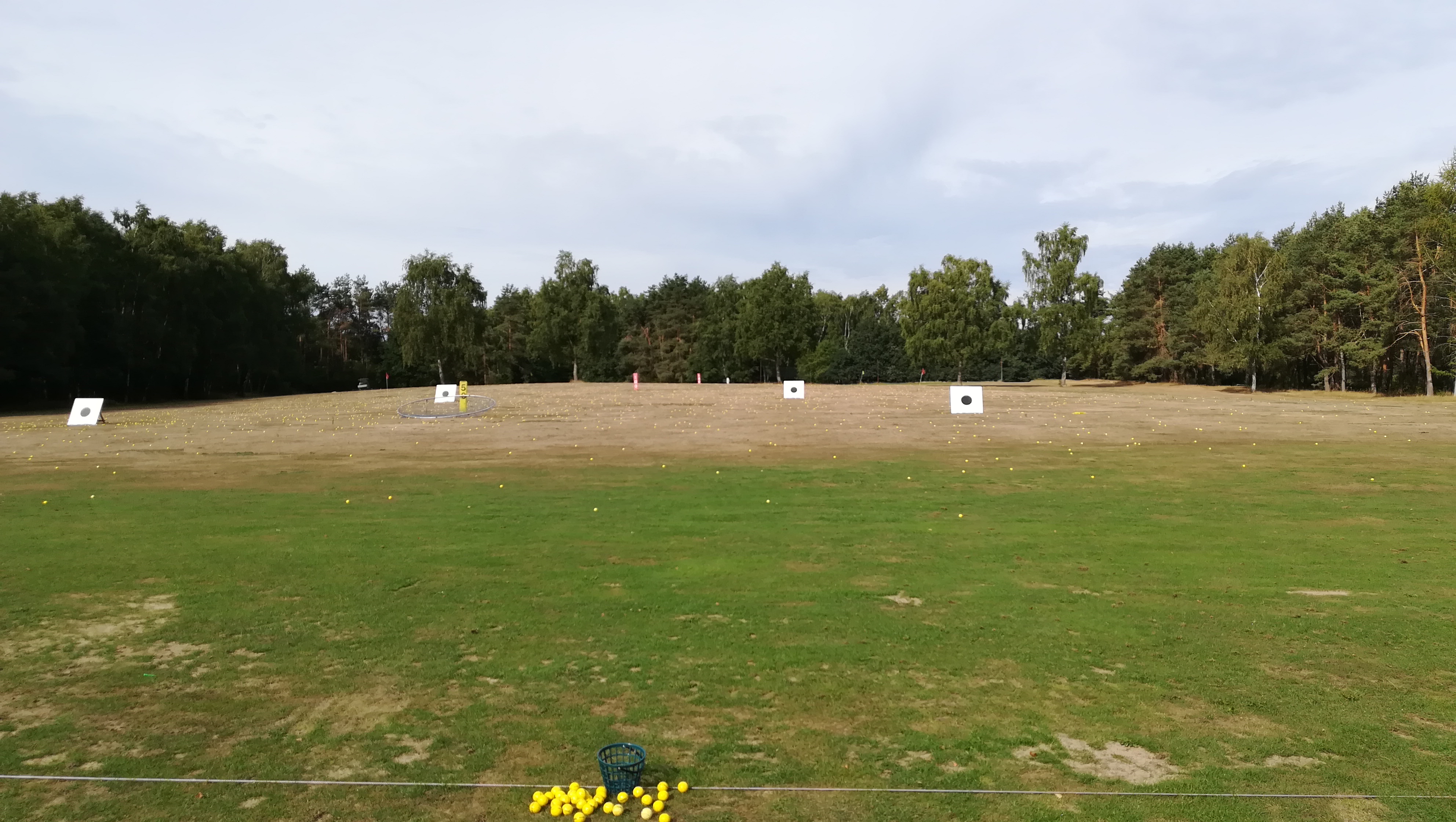 Die Range ist einfach, aber funktional. Es gibt vier überdachte Abschläge und davor gelegen diverse Mattenabschläge für die Wintermonate. Aber natürlich waren im Sommer die üblichen Rasenplätze abgesteckt.