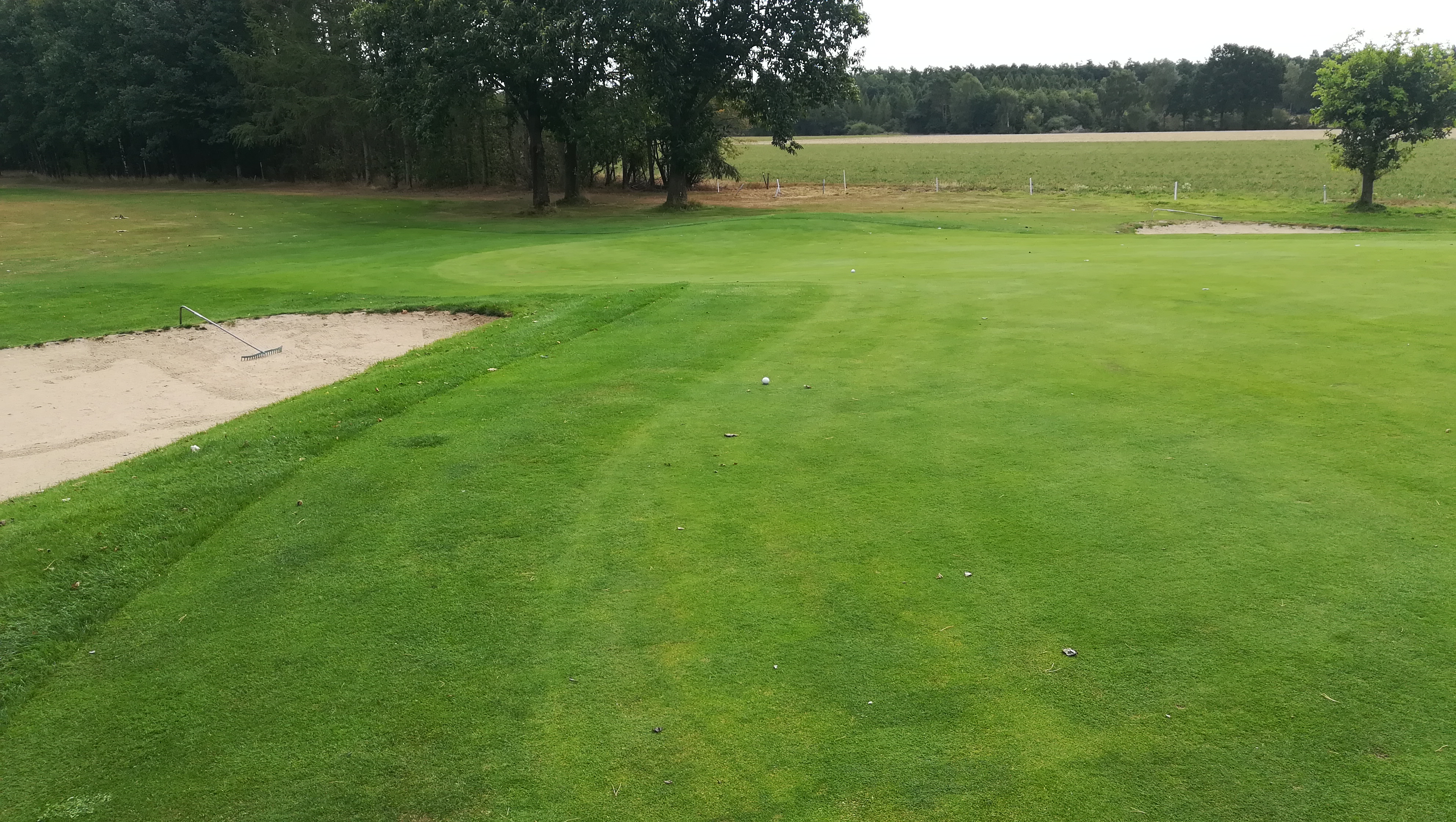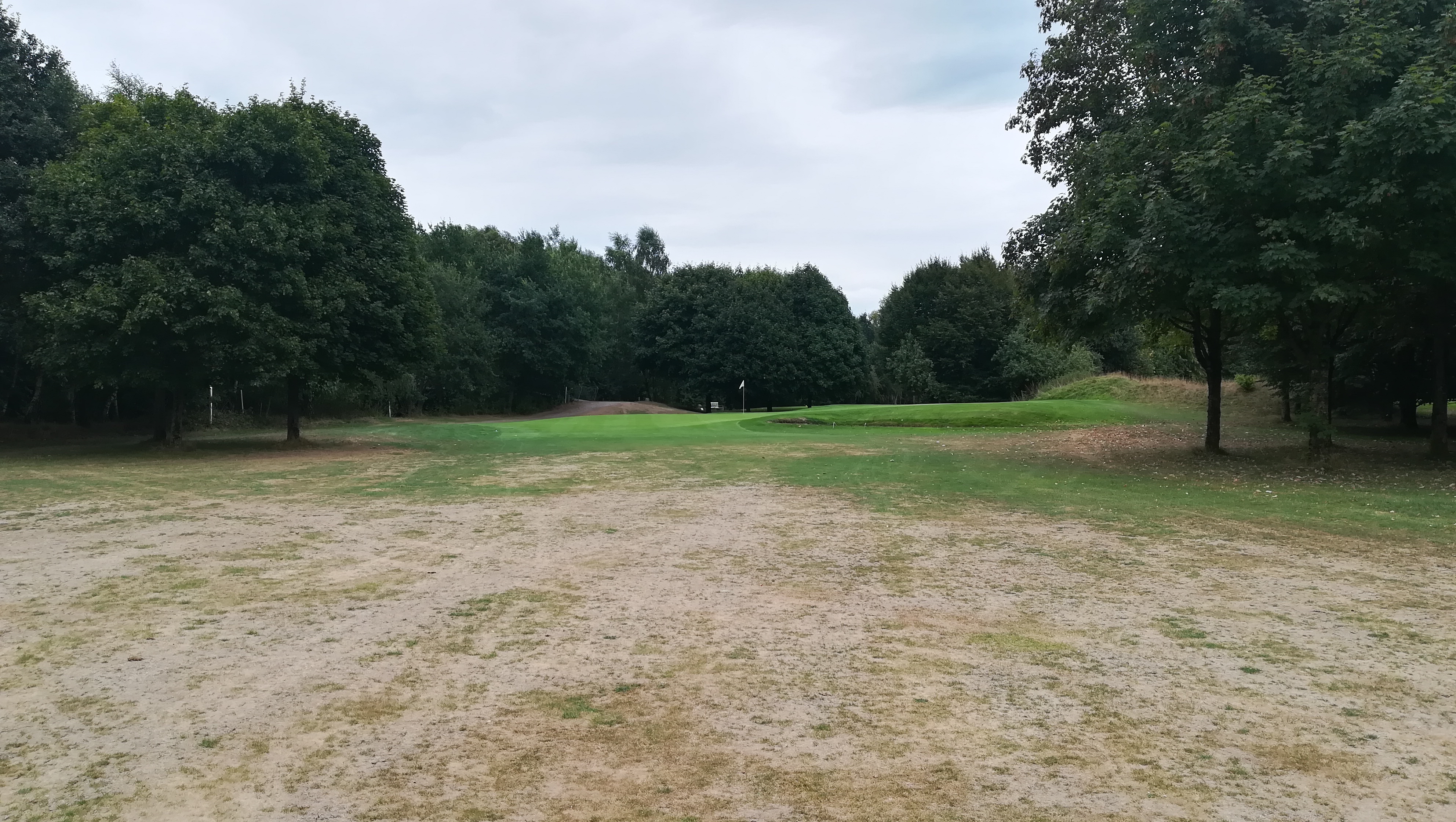 Wie auf den Bilder gut zu erkennen ist, hatte der Platz durch die lange Trockenheit leider enorm gelitten. Die Grüns und die Abschläge sind in Schuss, aber das Fairway sieht zum Teil alles andere als gut aus. Ich bin mir allerdings sicher, dass es bei einem „normalen“ Sommer anders ist, von daher kann man hier niemandem einen Vorwurf machen – immerhin geht es sehr vielen Clubs nach diesem Sommer so.