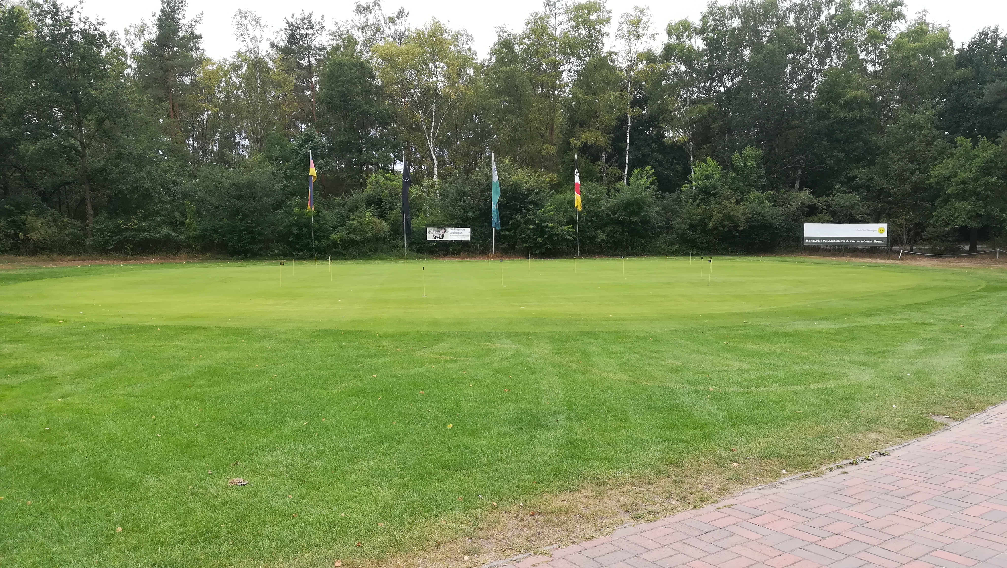 Man schlägt leicht bergan und hat zwei-drei Fahnen und einige Schilder als mögliche Ziele – nichts weltbewegendes, aber zum Aufwärmen ist das ausreichend. Ähnlich ist es mit dem Puttinggrün direkt am Clubhaus – klein aber fein.