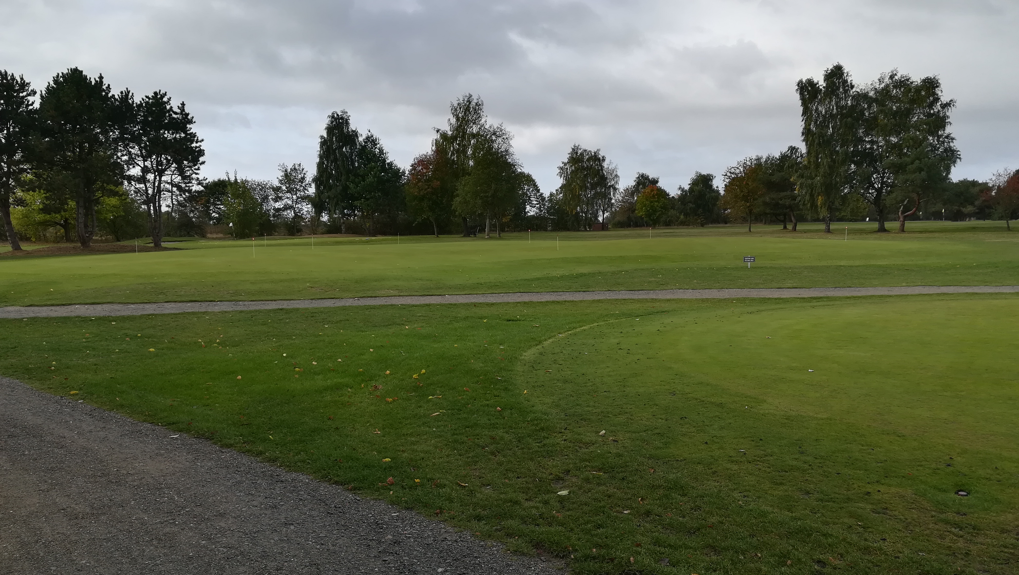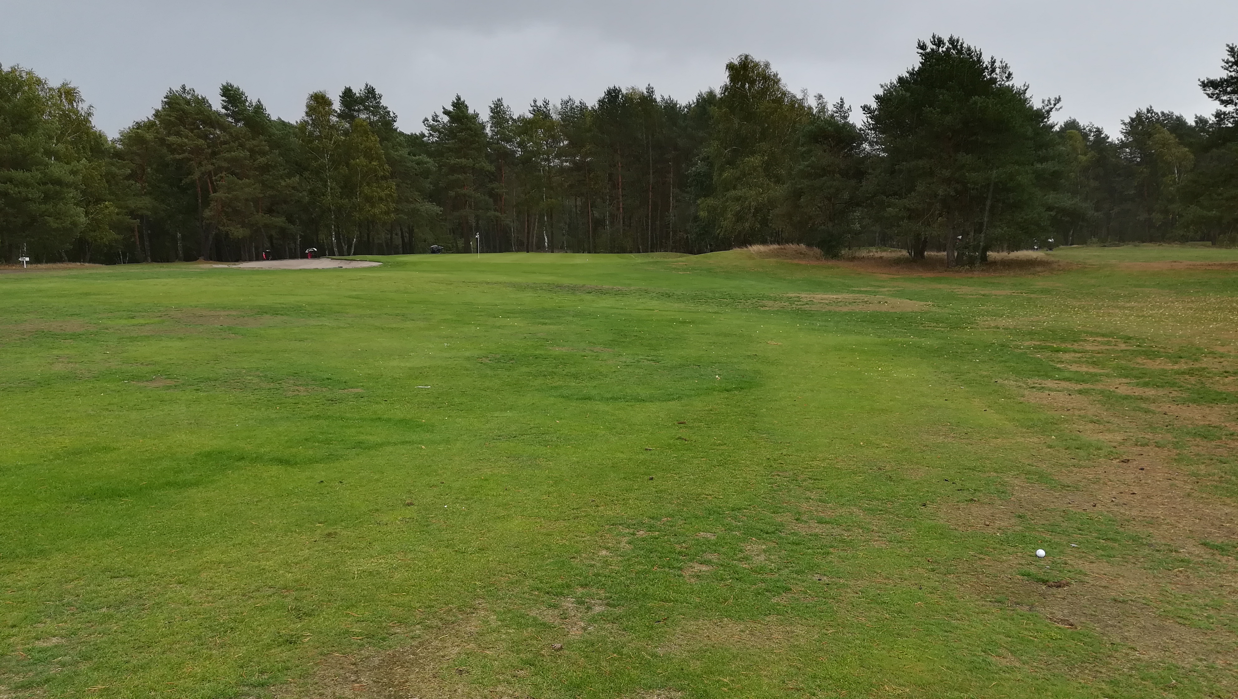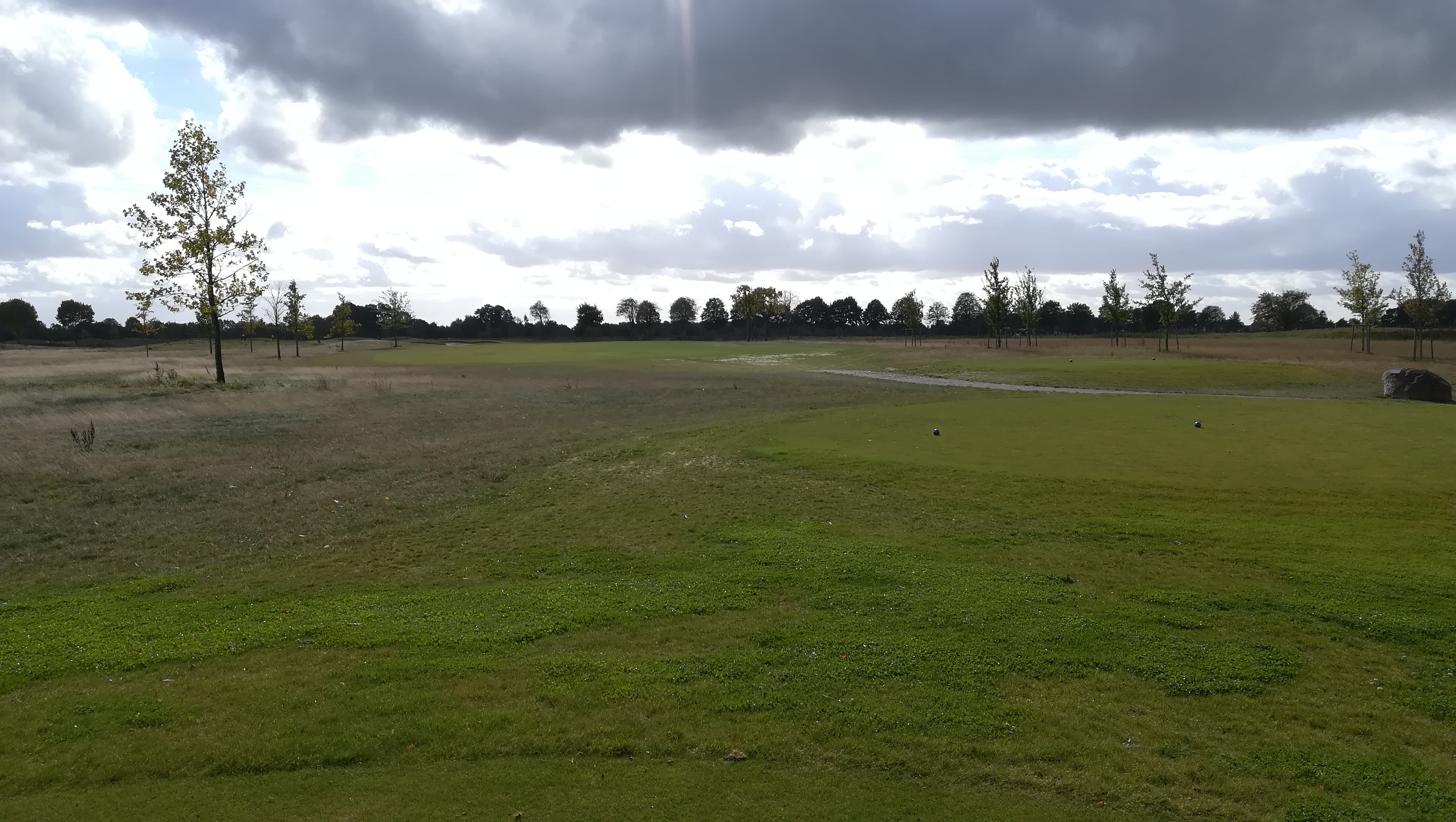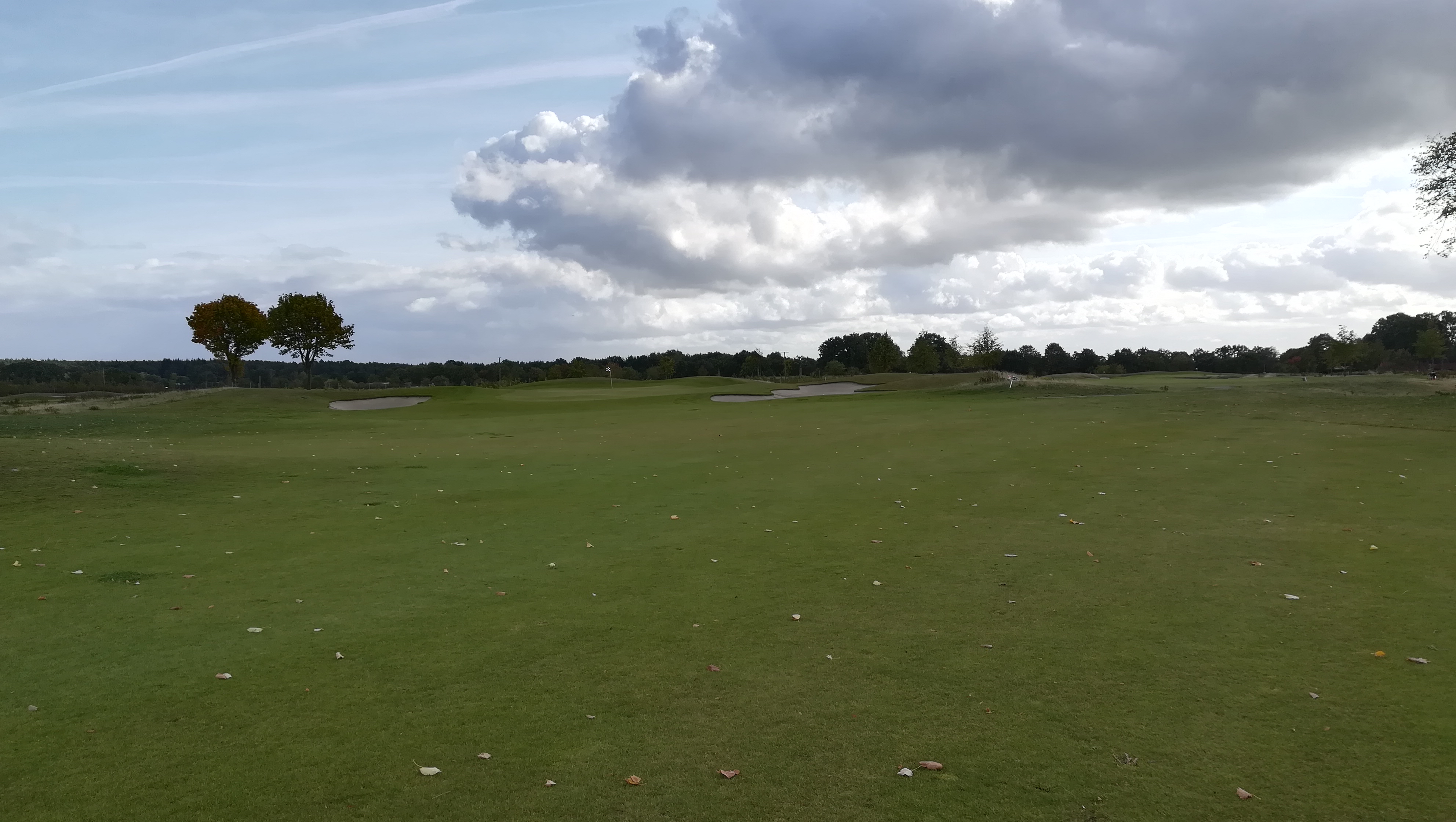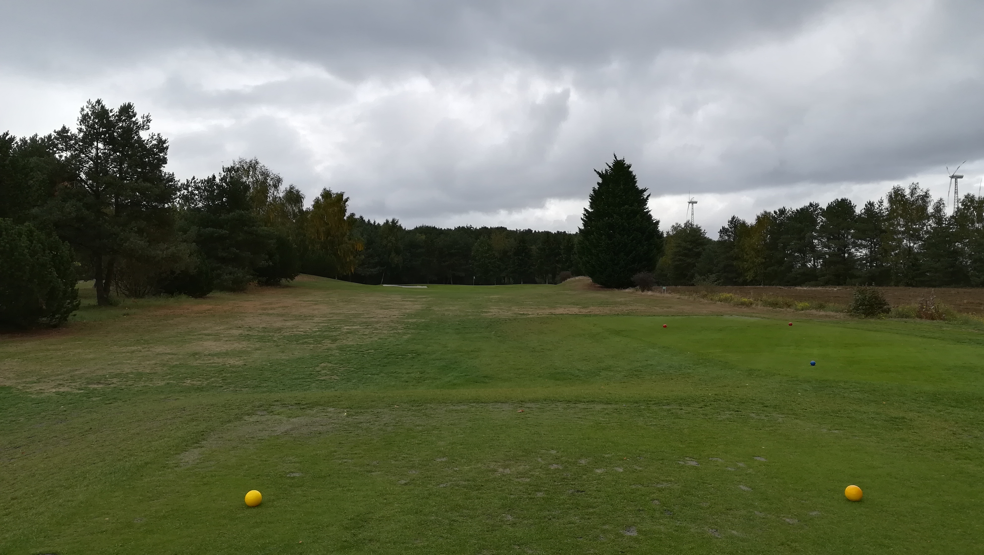 Nebenbei ist uns aufgefallen, dass der Platz zwar auch unter dem langen und heißen Sommer gelitten haben muss, aber trotzdem in einem insgesamt sehr guten Zustand war. Wir haben auf unserer Runde bis auf Hagel und Schnee so ziemlich jedes Wetter erlebt. Einige kräftige Regenschauer zwischendurch hat der Platz locker weggeschlürft – da ist also Qualität „verbaut“.
