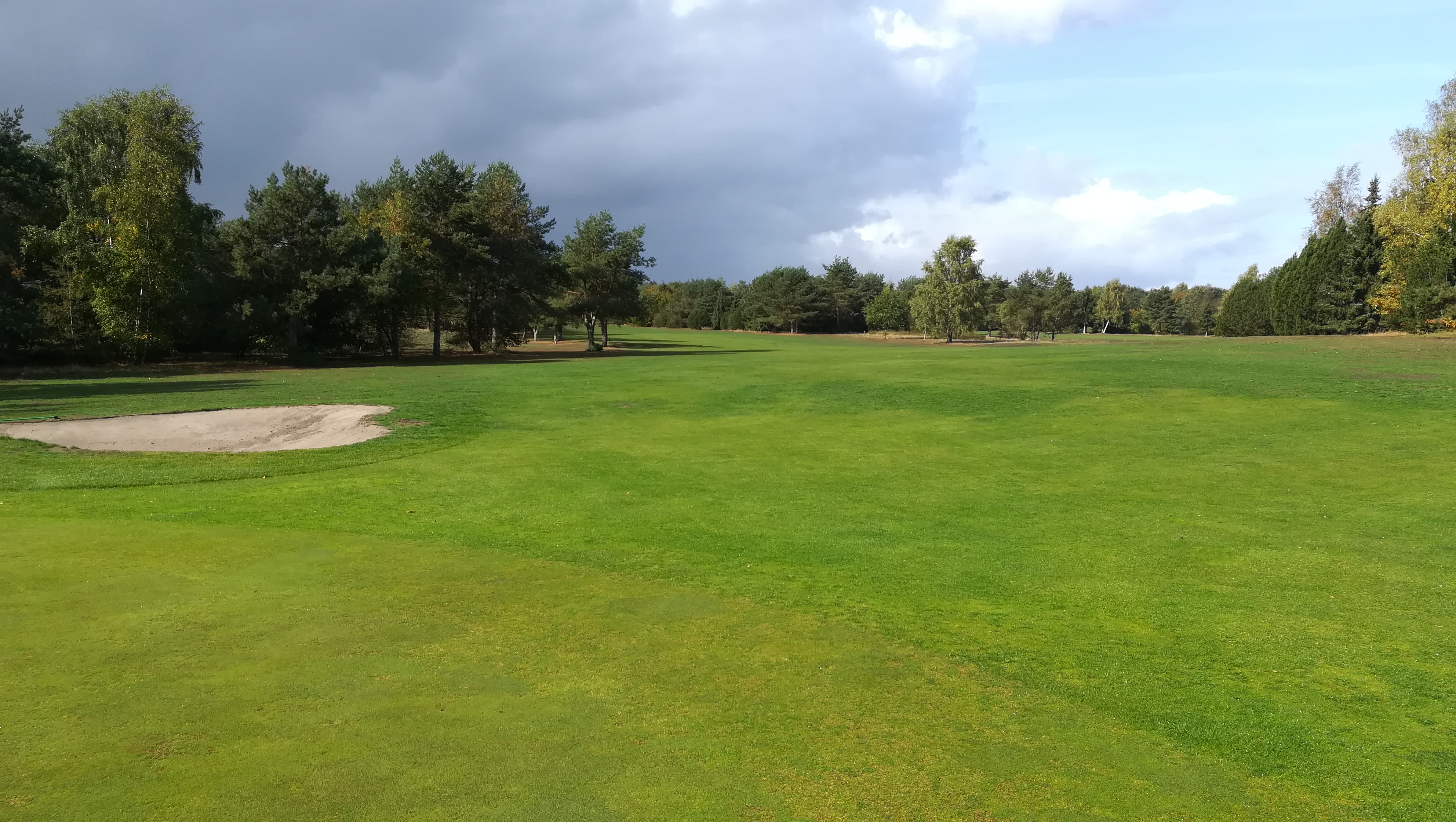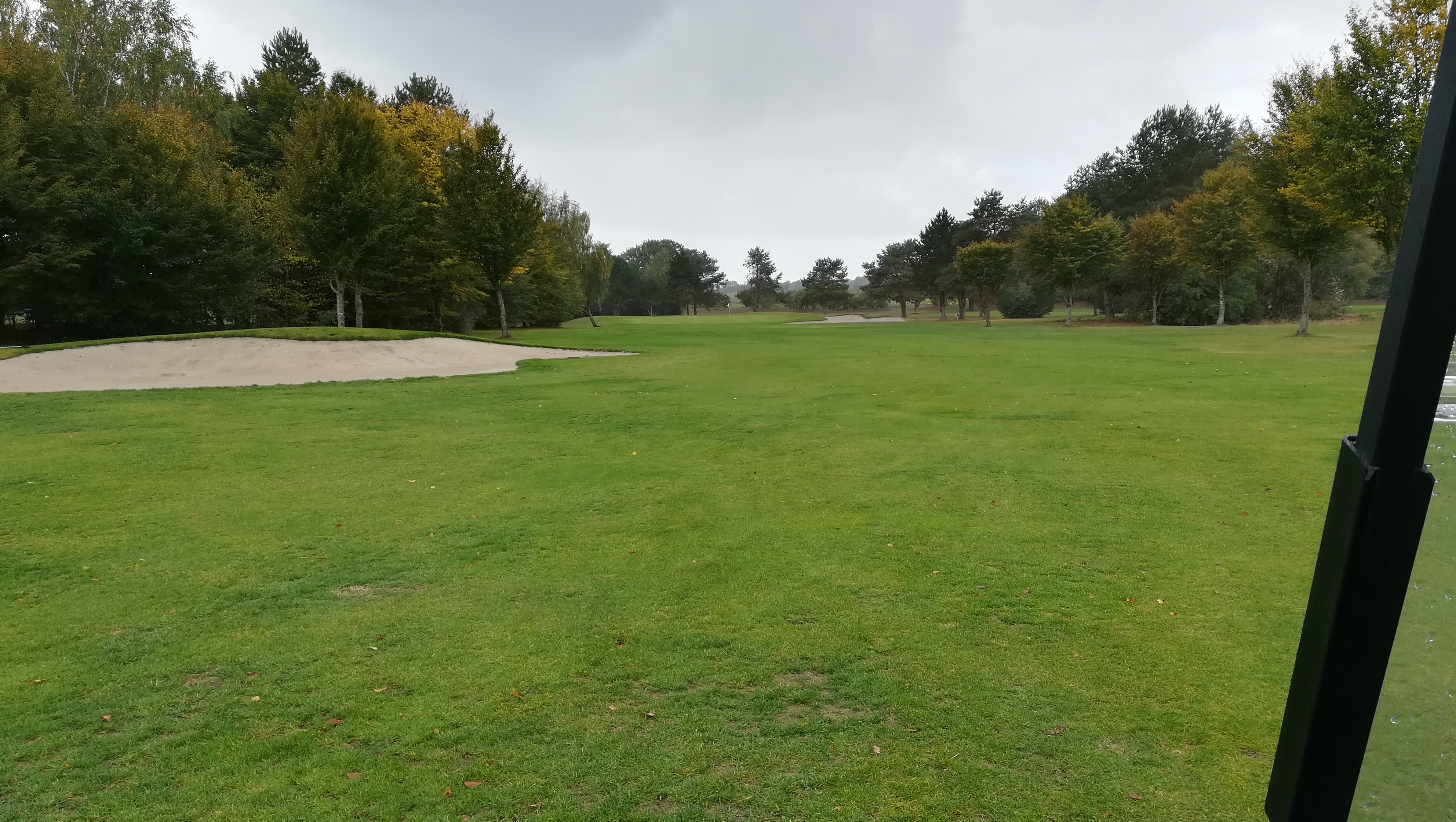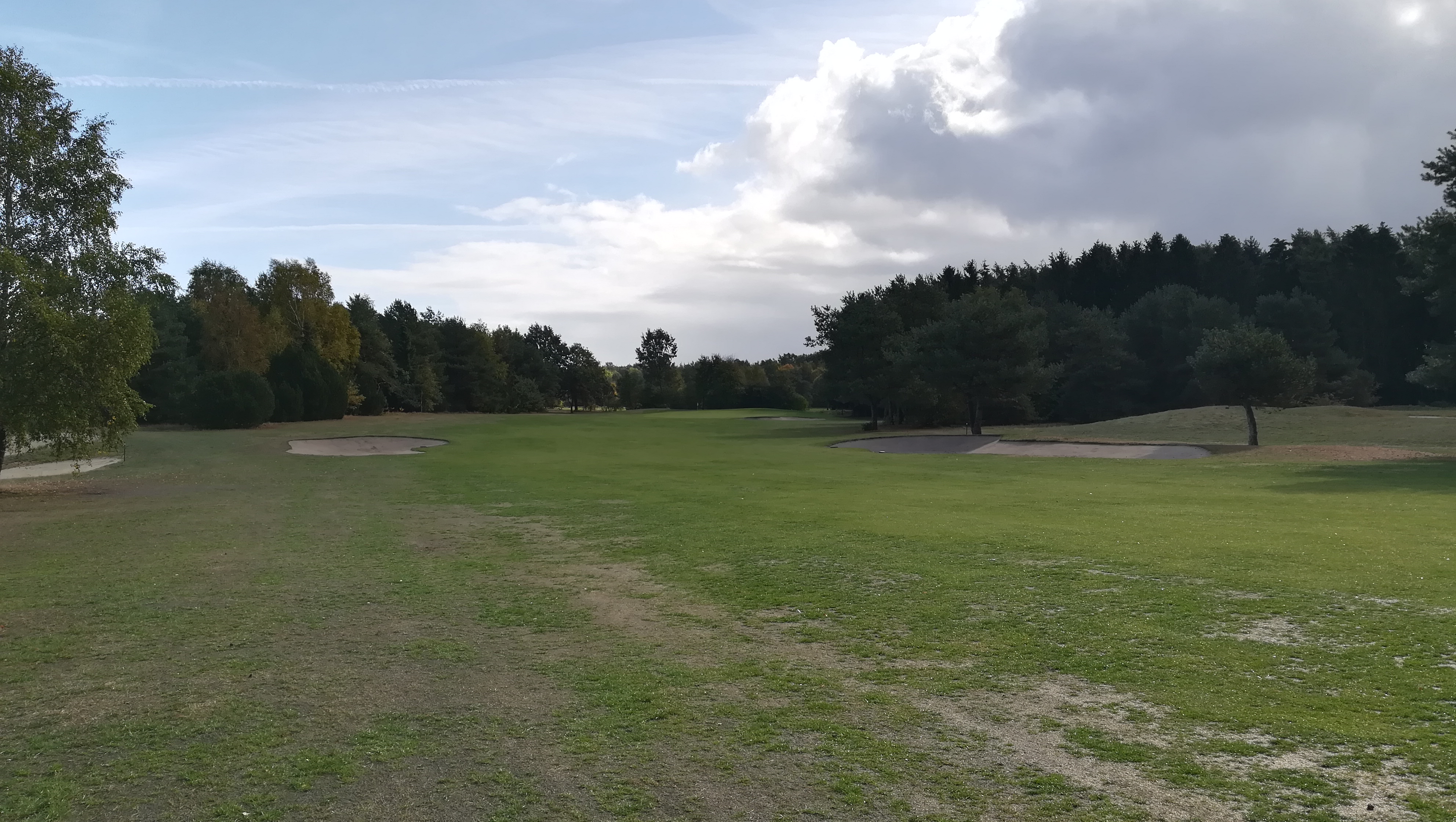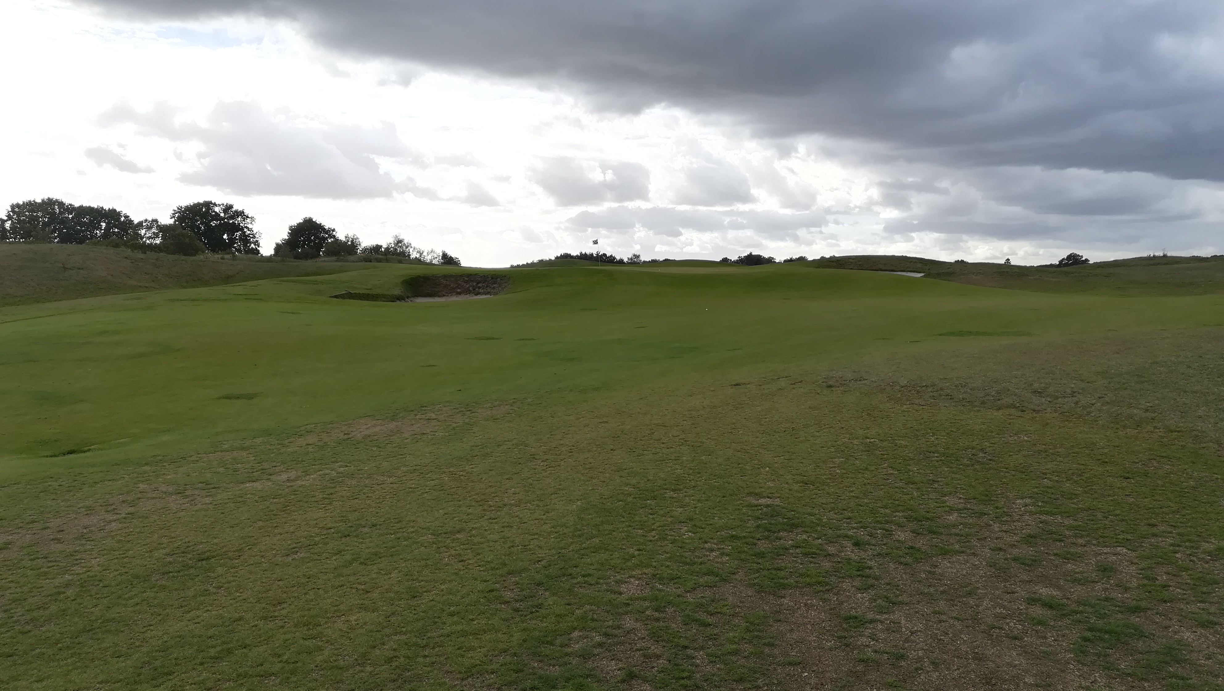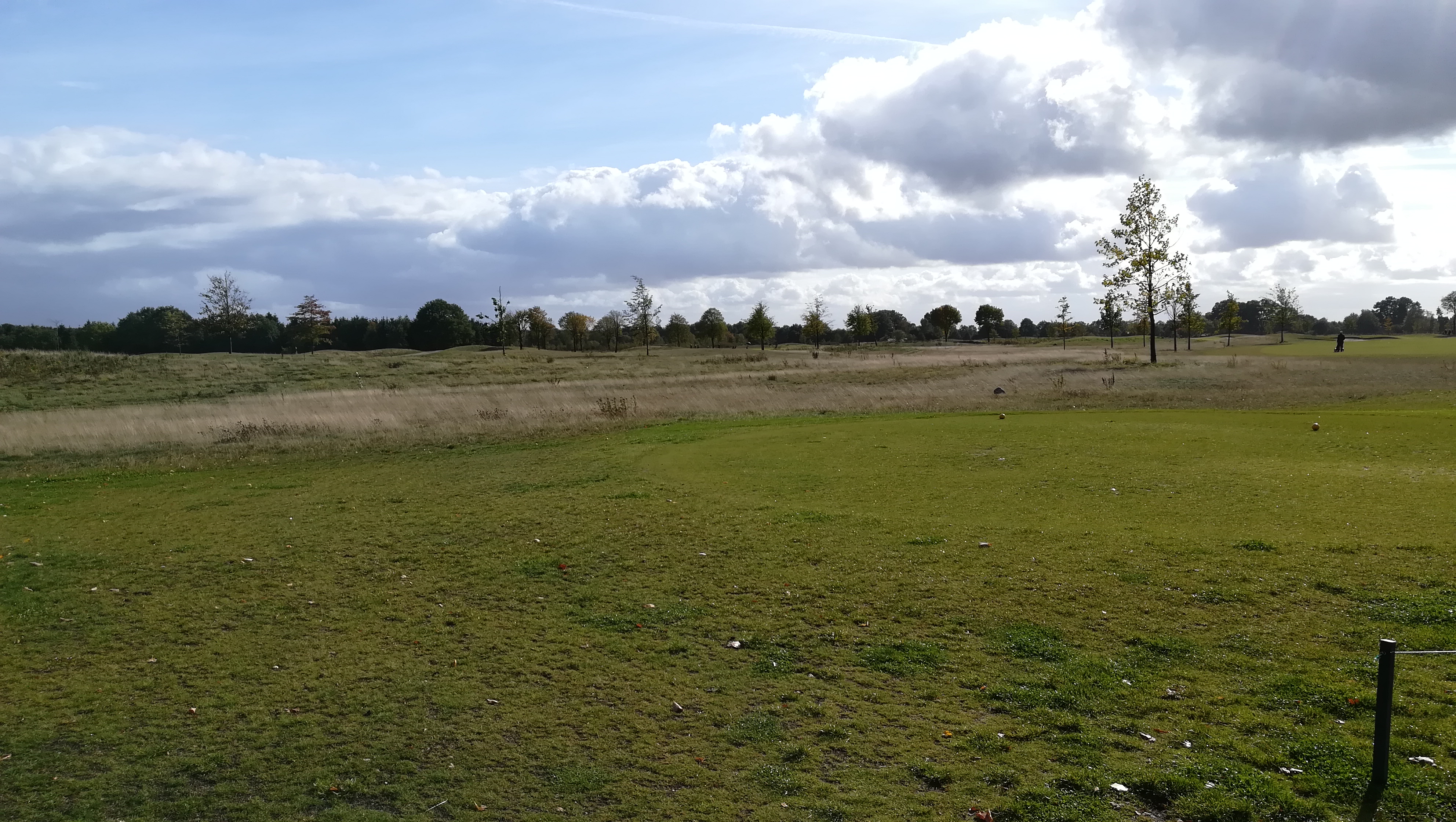 Nebenbei ist uns aufgefallen, dass der Platz zwar auch unter dem langen und heißen Sommer gelitten haben muss, aber trotzdem in einem insgesamt sehr guten Zustand war. Wir haben auf unserer Runde bis auf Hagel und Schnee so ziemlich jedes Wetter erlebt. Einige kräftige Regenschauer zwischendurch hat der Platz locker weggeschlürft – da ist also Qualität „verbaut“.