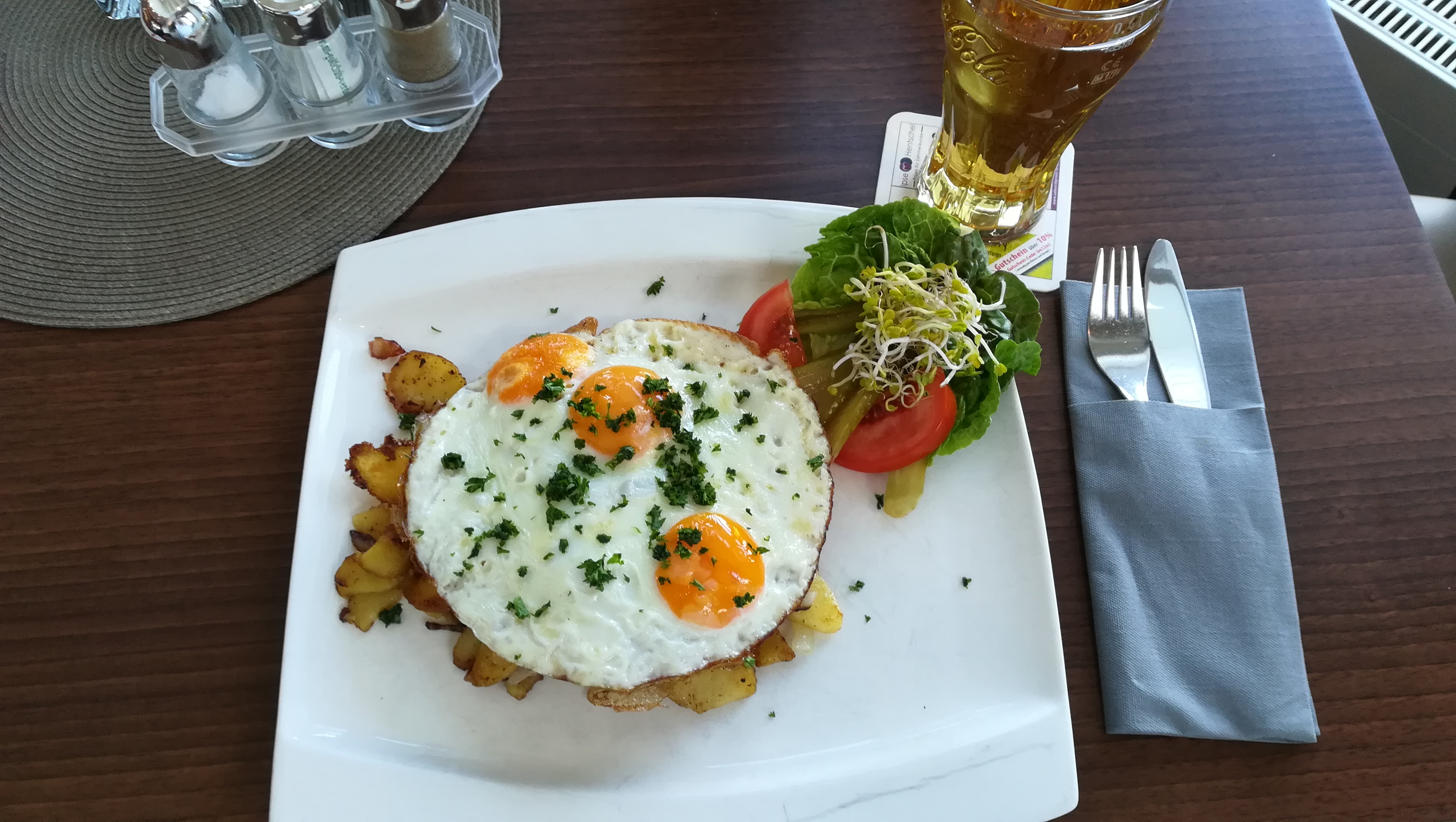 Dass der Himmel zum Schluss doch noch strahlend blau wurde und die Sonne unsere nassen Sachen gleich getrocknet hat, verbuche ich mal als Bonus. Aber so sitzt es sich auf der Terrasse natürlich noch etwas schöner.