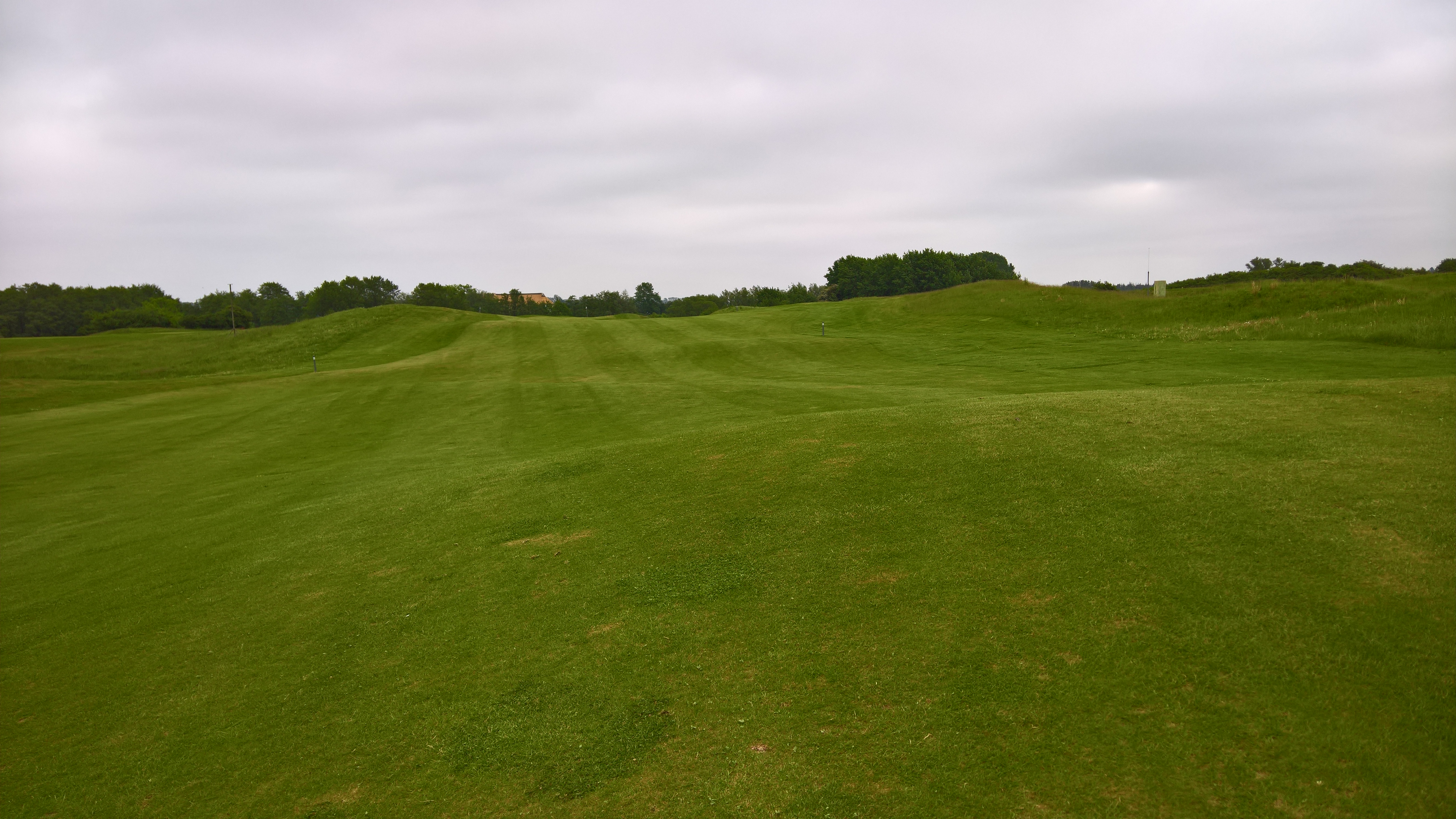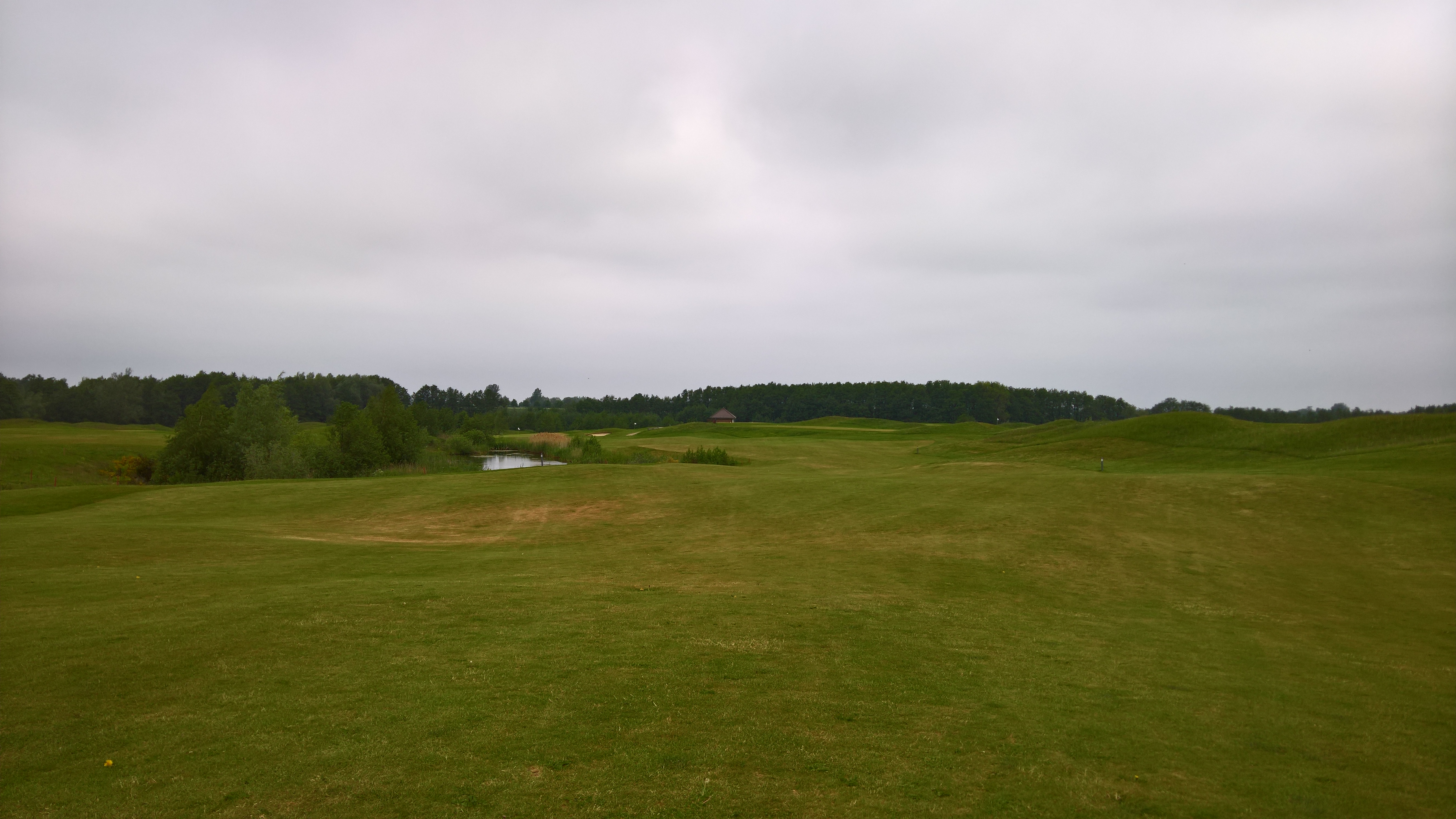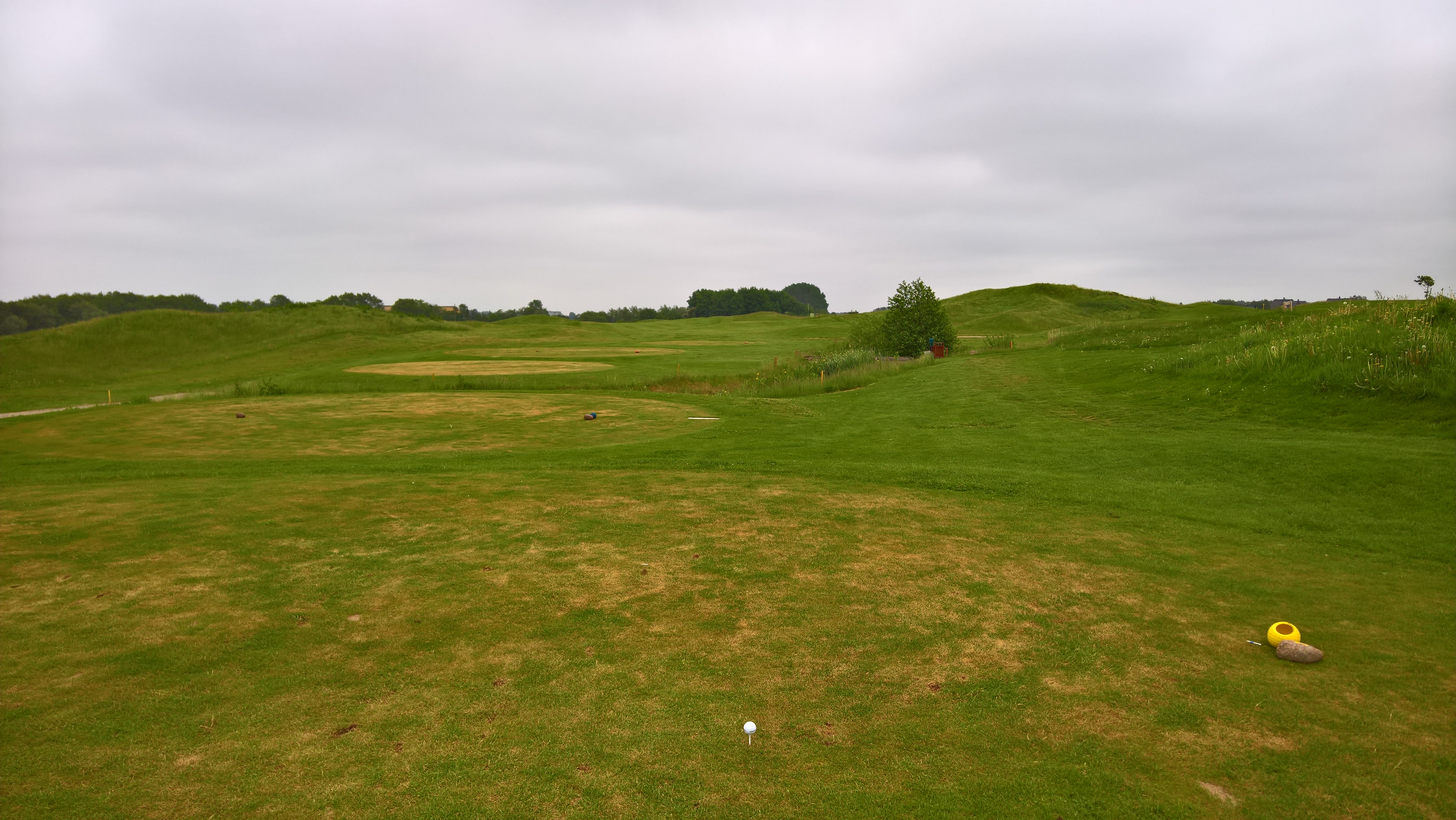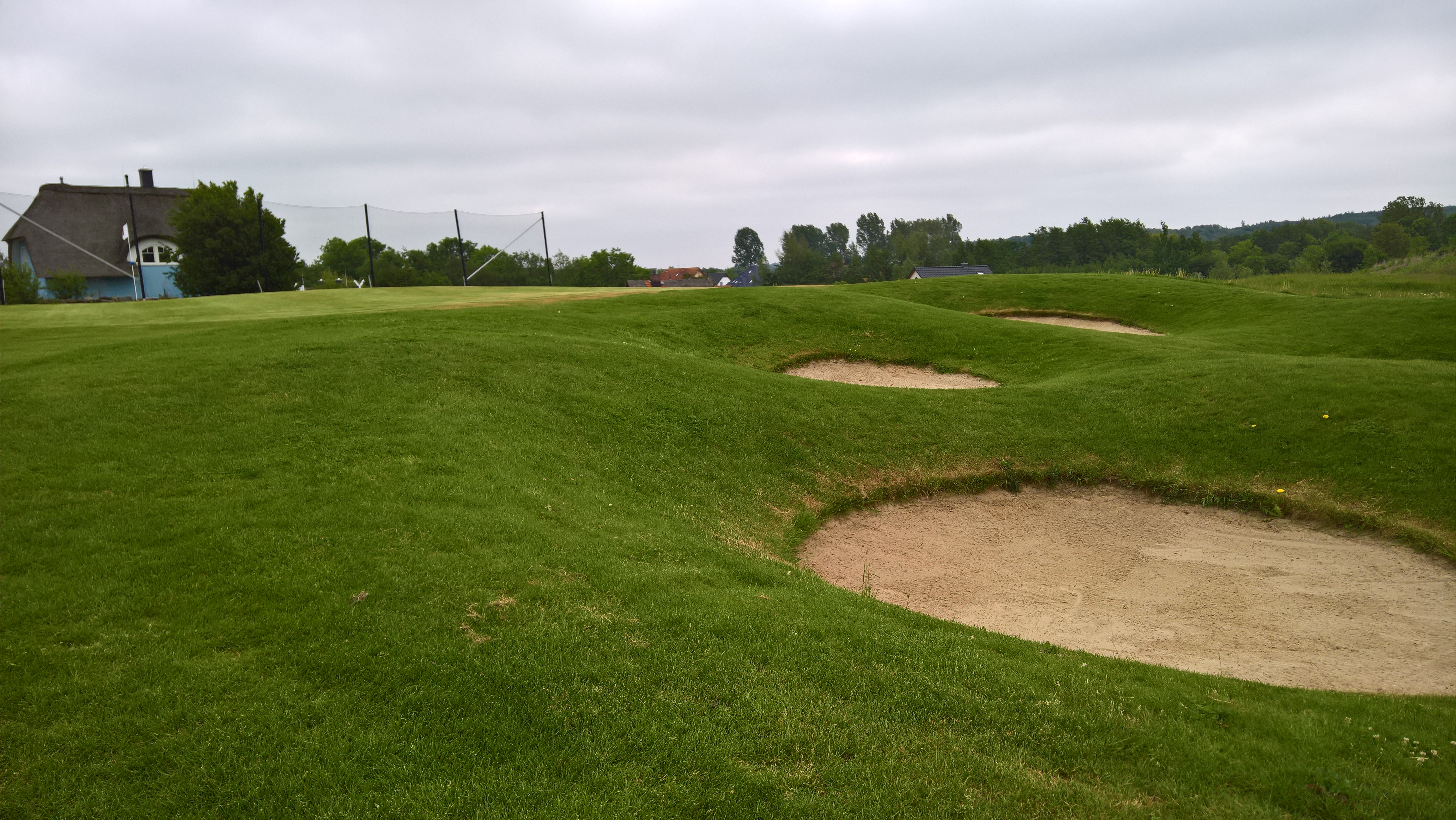 Klassisch im Linkskurs-Stil angelegt hat der Platz kaum größeren Pflanzenbewuchs, Bäume gibt es im Grund nur am Geländerand. Dafür sind die Fairways sehr wellig, es gibt hohes (fieses, gefräßiges, hinterhältiges) Rough und jede Menge Wasser. Die Grüns sind relativ groß, stark onduliert und nicht ganz so schnell wie ich erwartet hatte (aber trotzdem deutlich schneller als bei mir im Heimatclub).