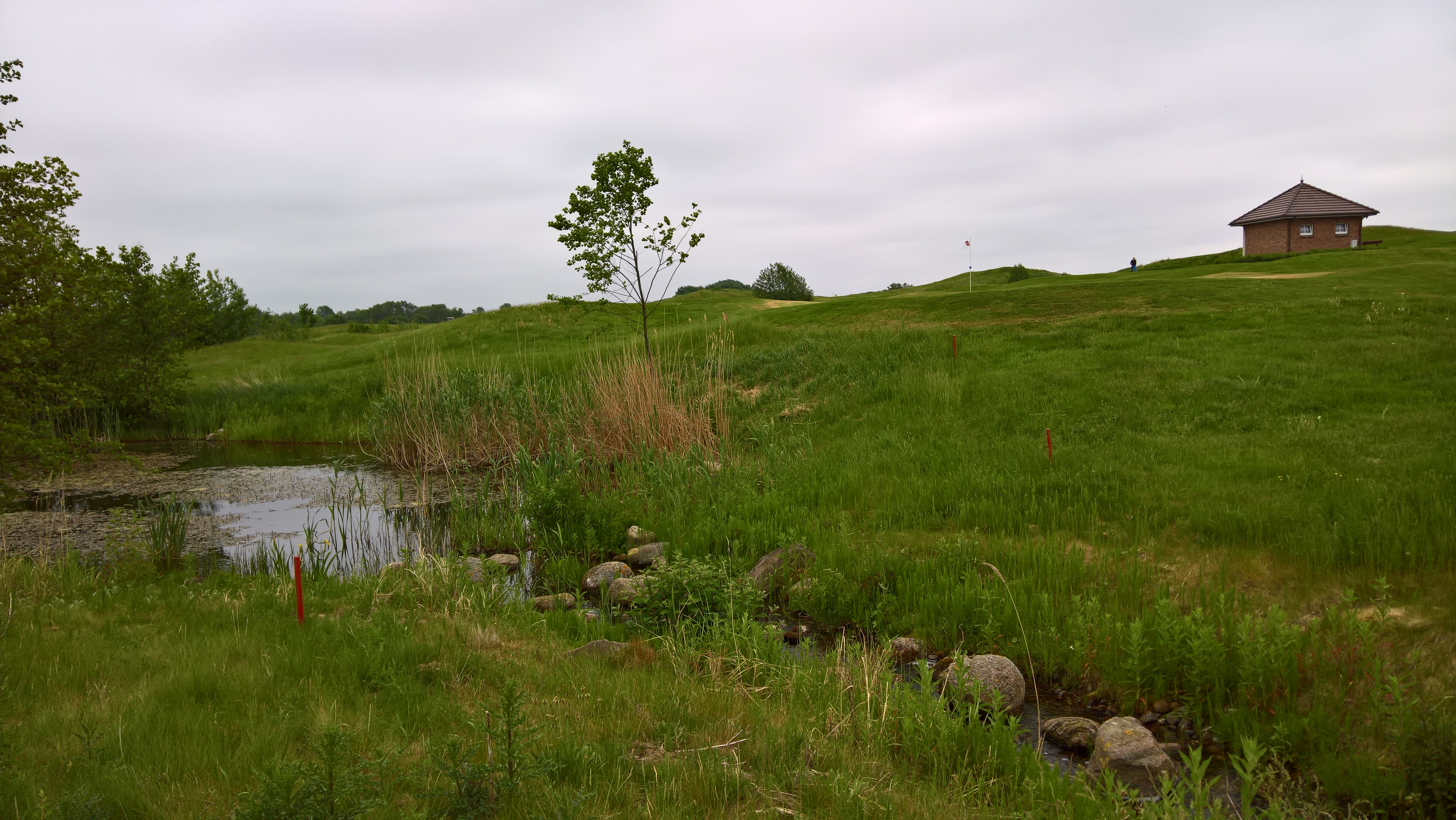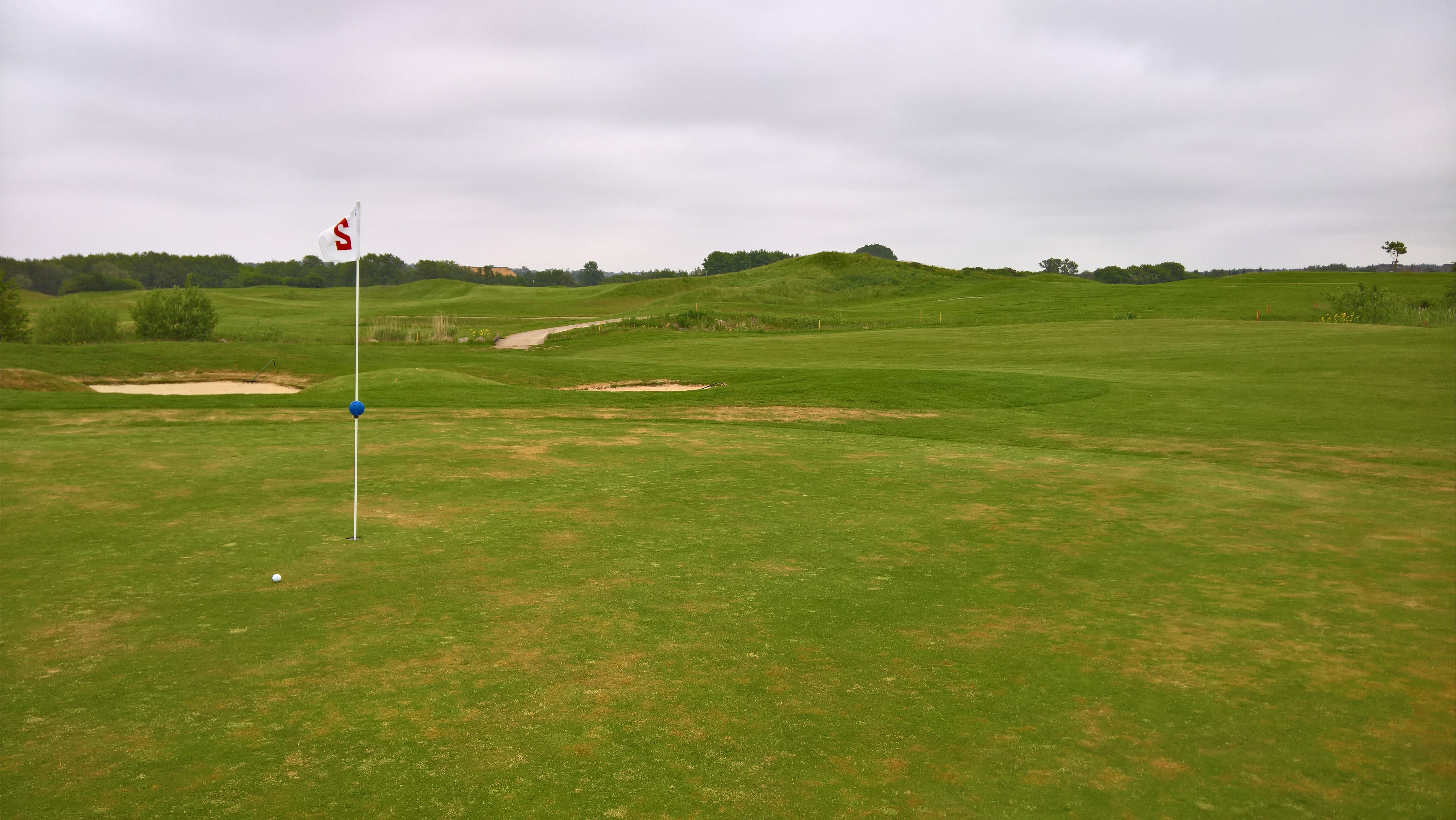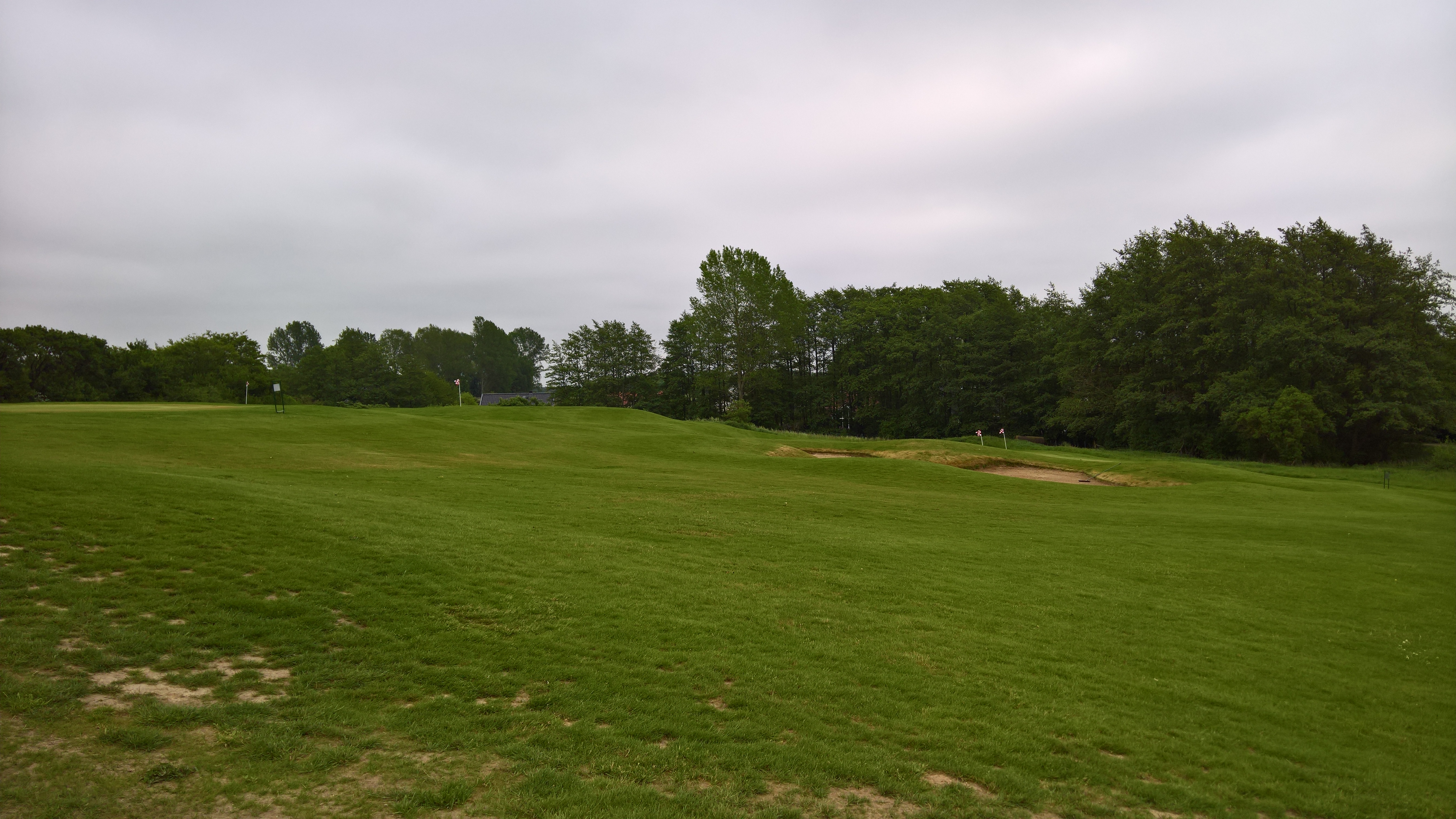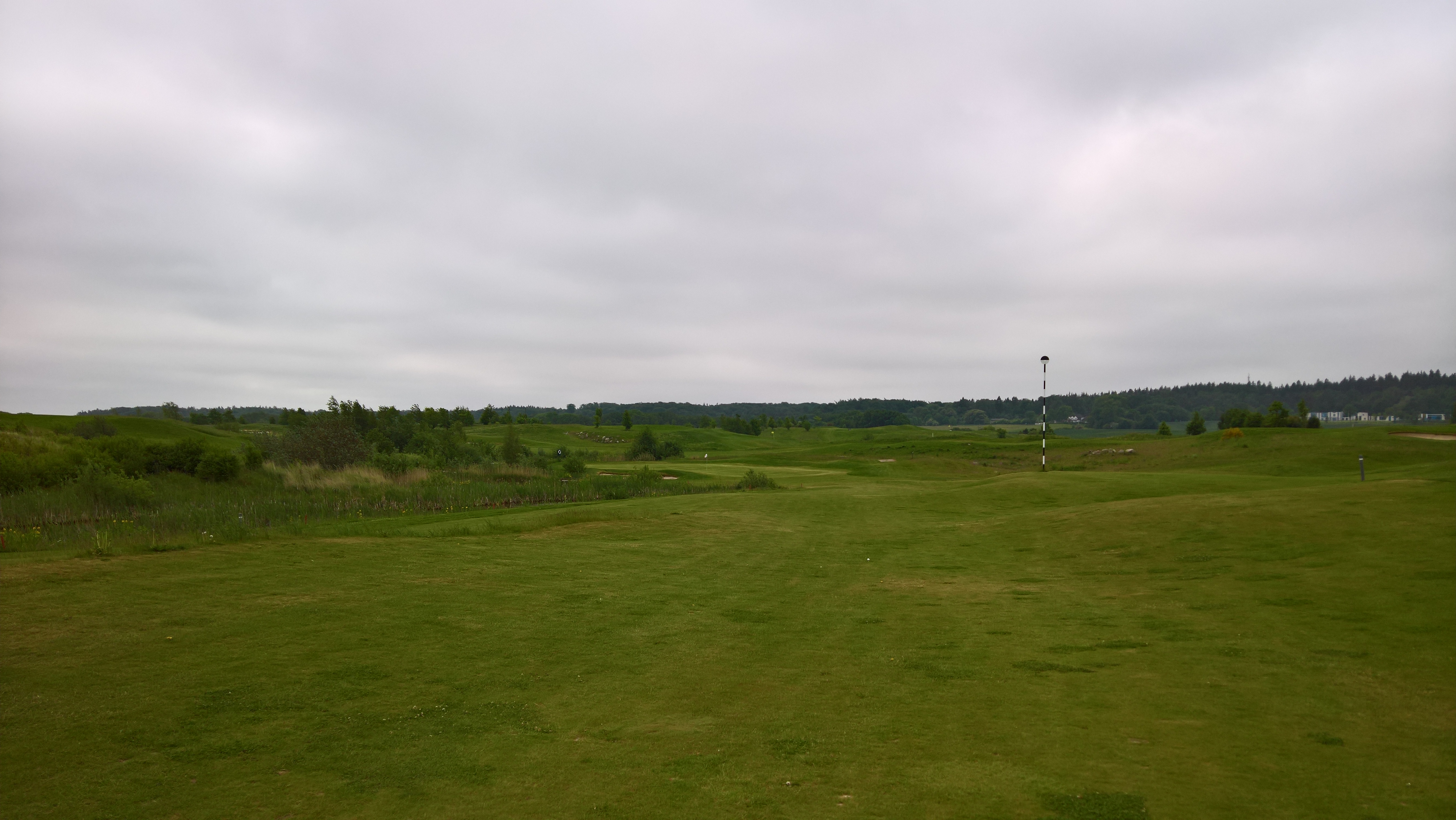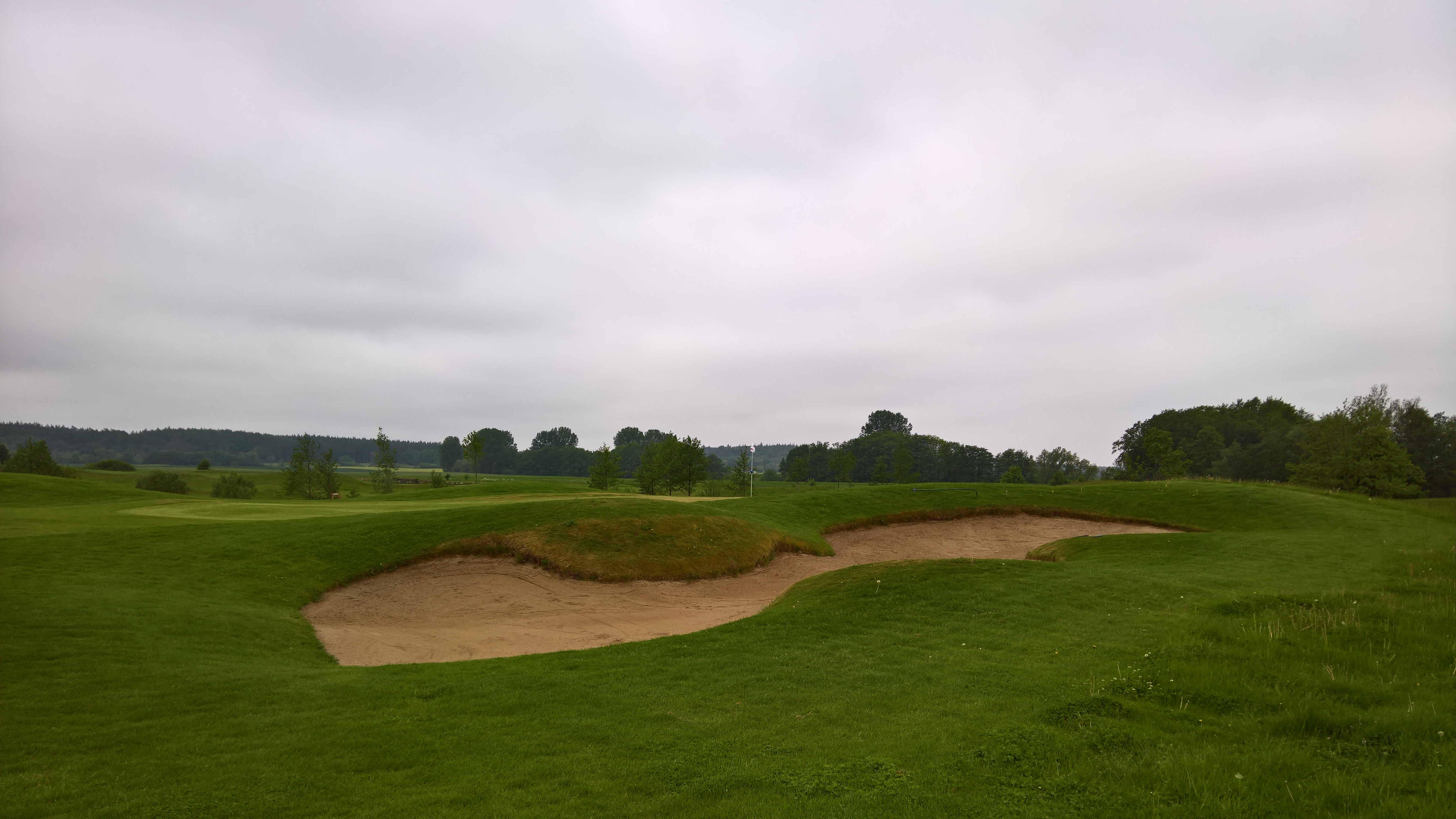 Klassisch im Linkskurs-Stil angelegt hat der Platz kaum größeren Pflanzenbewuchs, Bäume gibt es im Grund nur am Geländerand. Dafür sind die Fairways sehr wellig, es gibt hohes (fieses, gefräßiges, hinterhältiges) Rough und jede Menge Wasser. Die Grüns sind relativ groß, stark onduliert und nicht ganz so schnell wie ich erwartet hatte (aber trotzdem deutlich schneller als bei mir im Heimatclub).