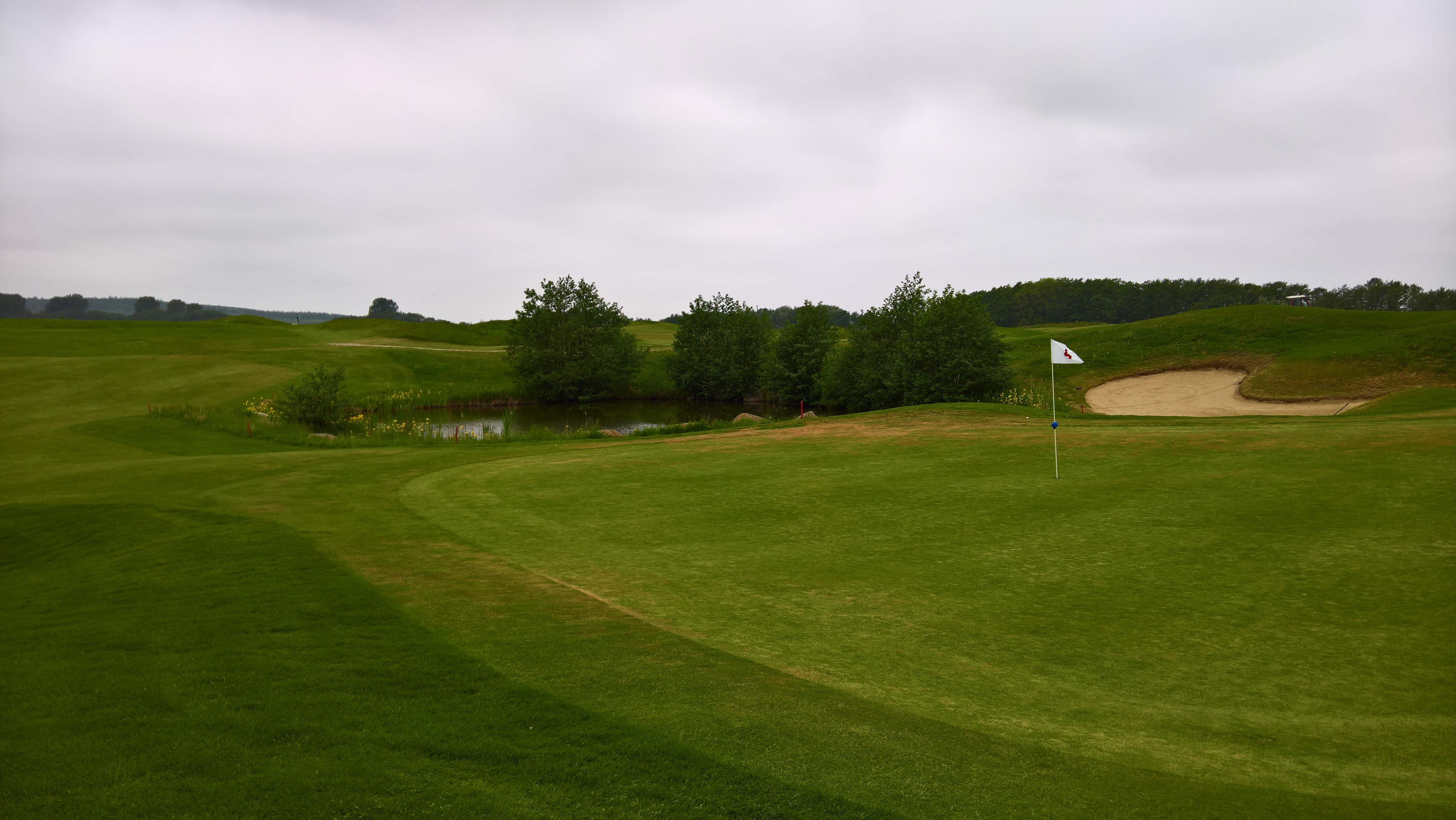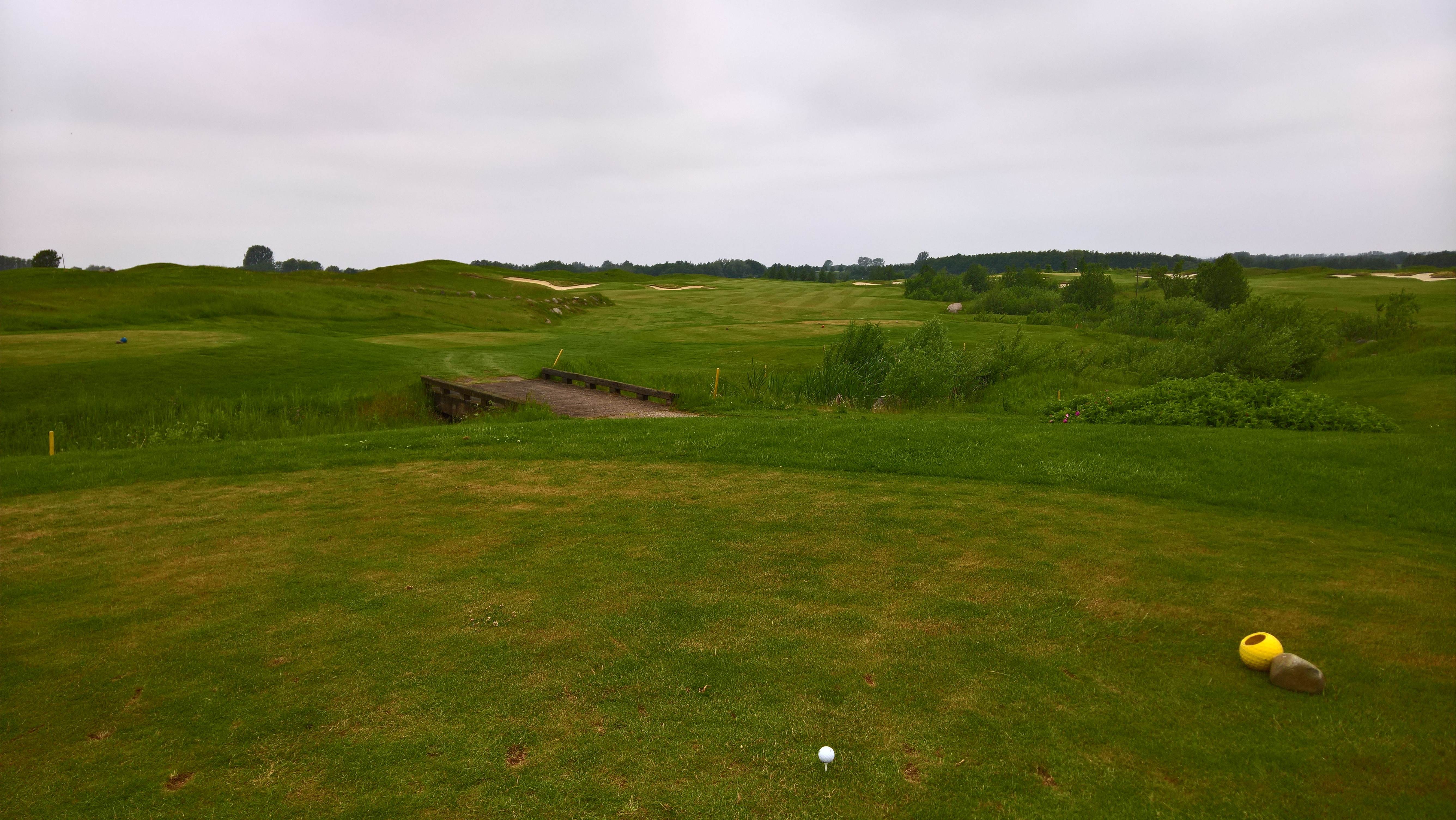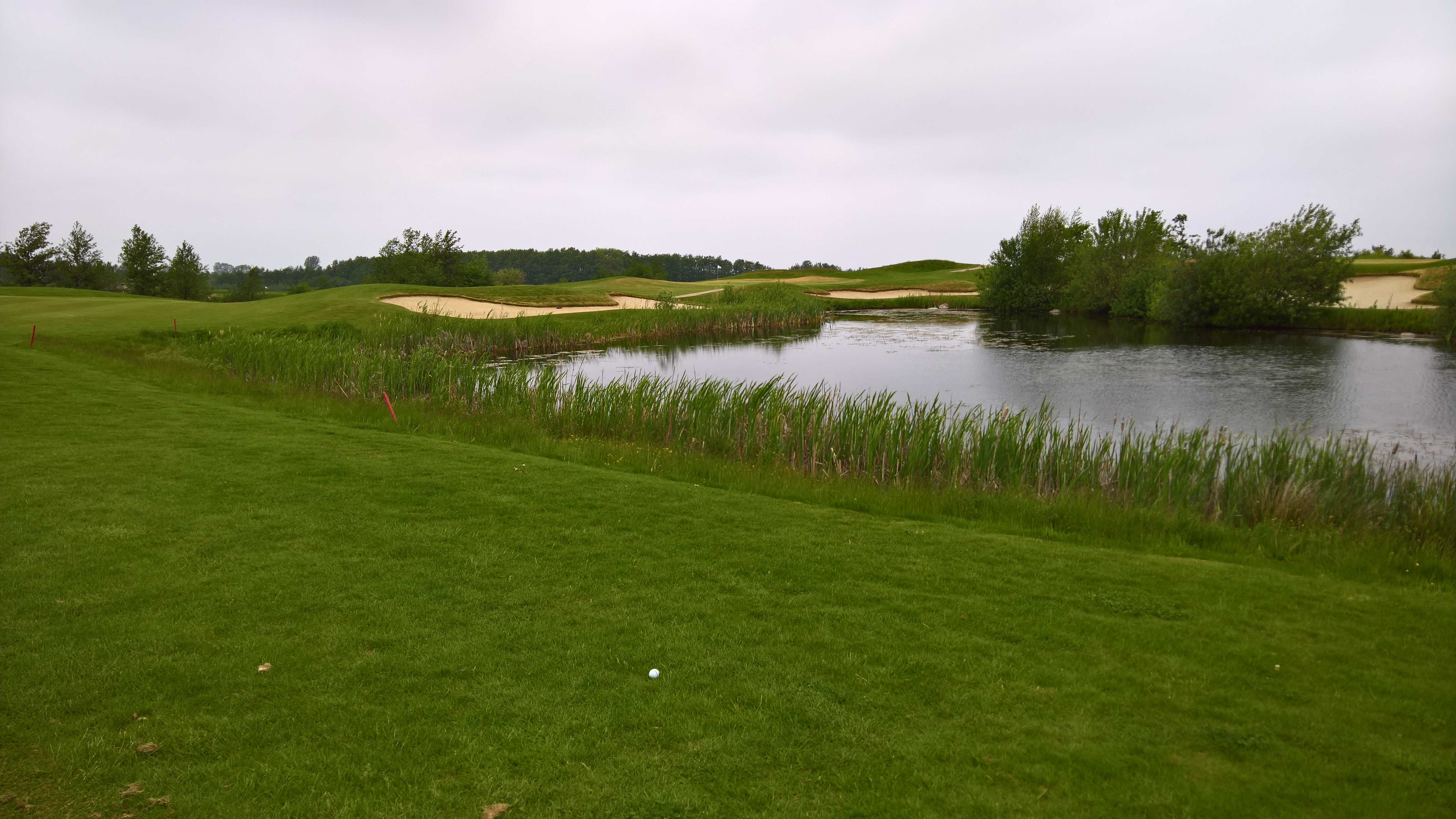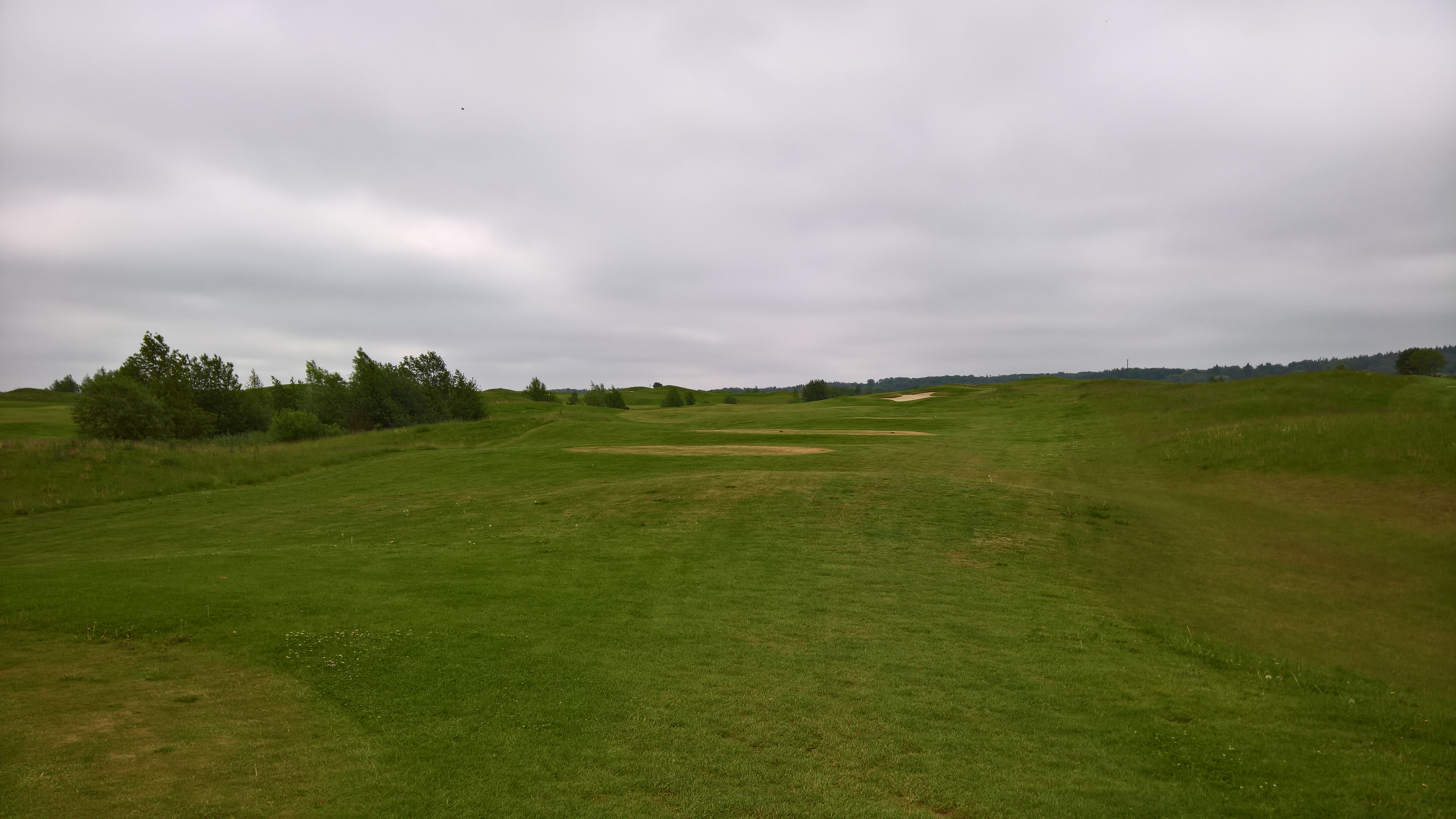 Klassisch im Linkskurs-Stil angelegt hat der Platz kaum größeren Pflanzenbewuchs, Bäume gibt es im Grund nur am Geländerand. Dafür sind die Fairways sehr wellig, es gibt hohes (fieses, gefräßiges, hinterhältiges) Rough und jede Menge Wasser. Die Grüns sind relativ groß, stark onduliert und nicht ganz so schnell wie ich erwartet hatte (aber trotzdem deutlich schneller als bei mir im Heimatclub).