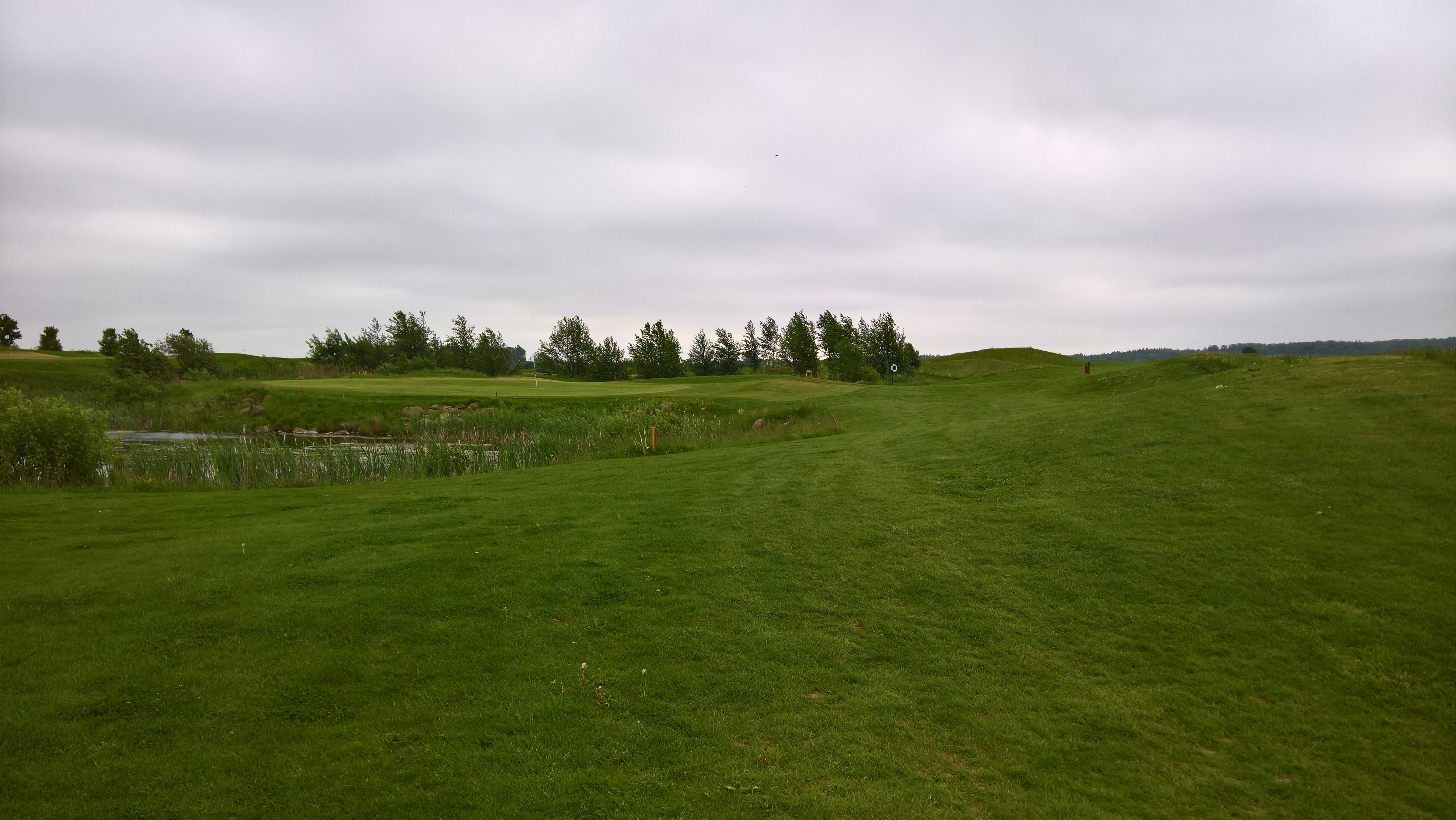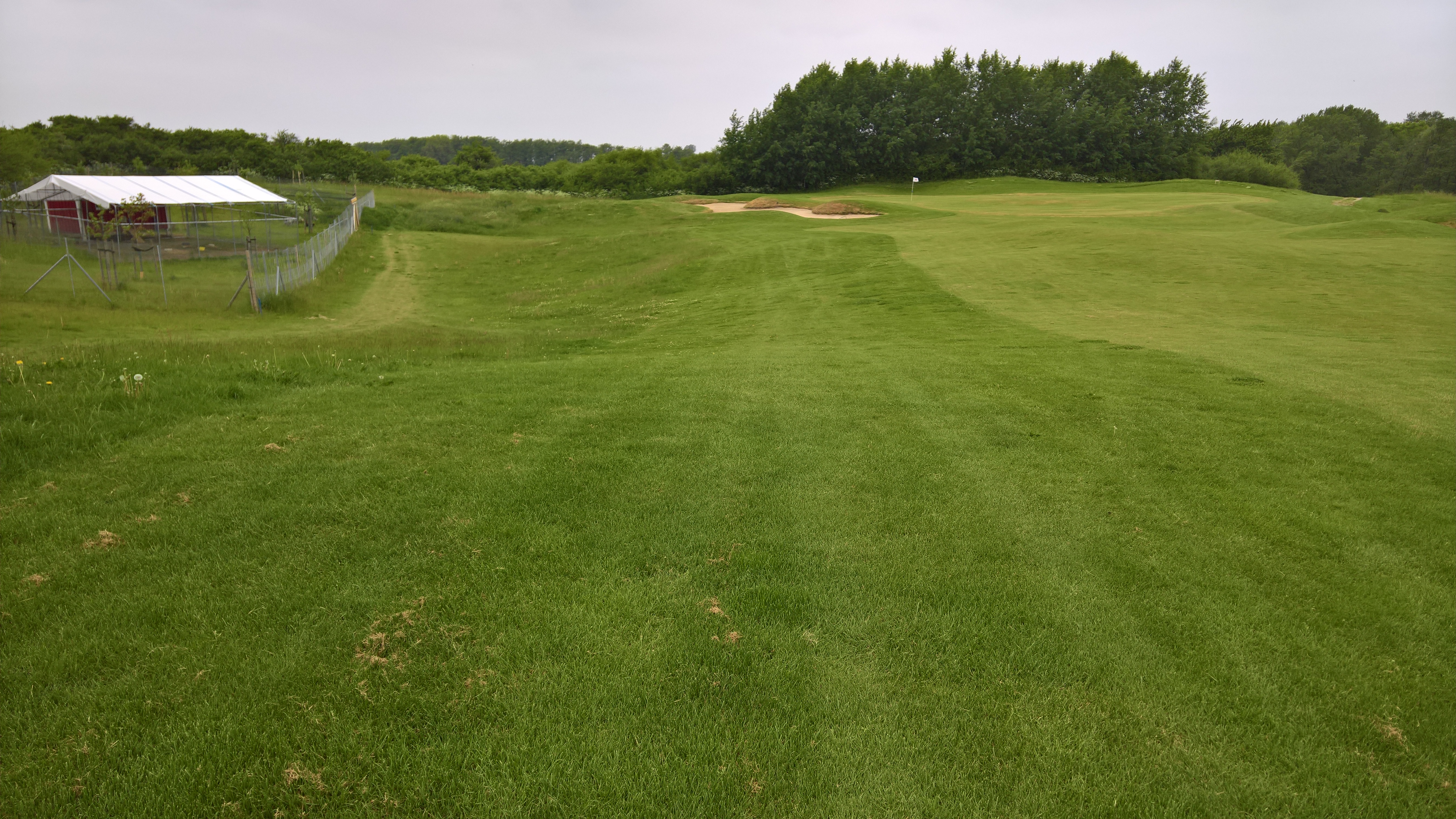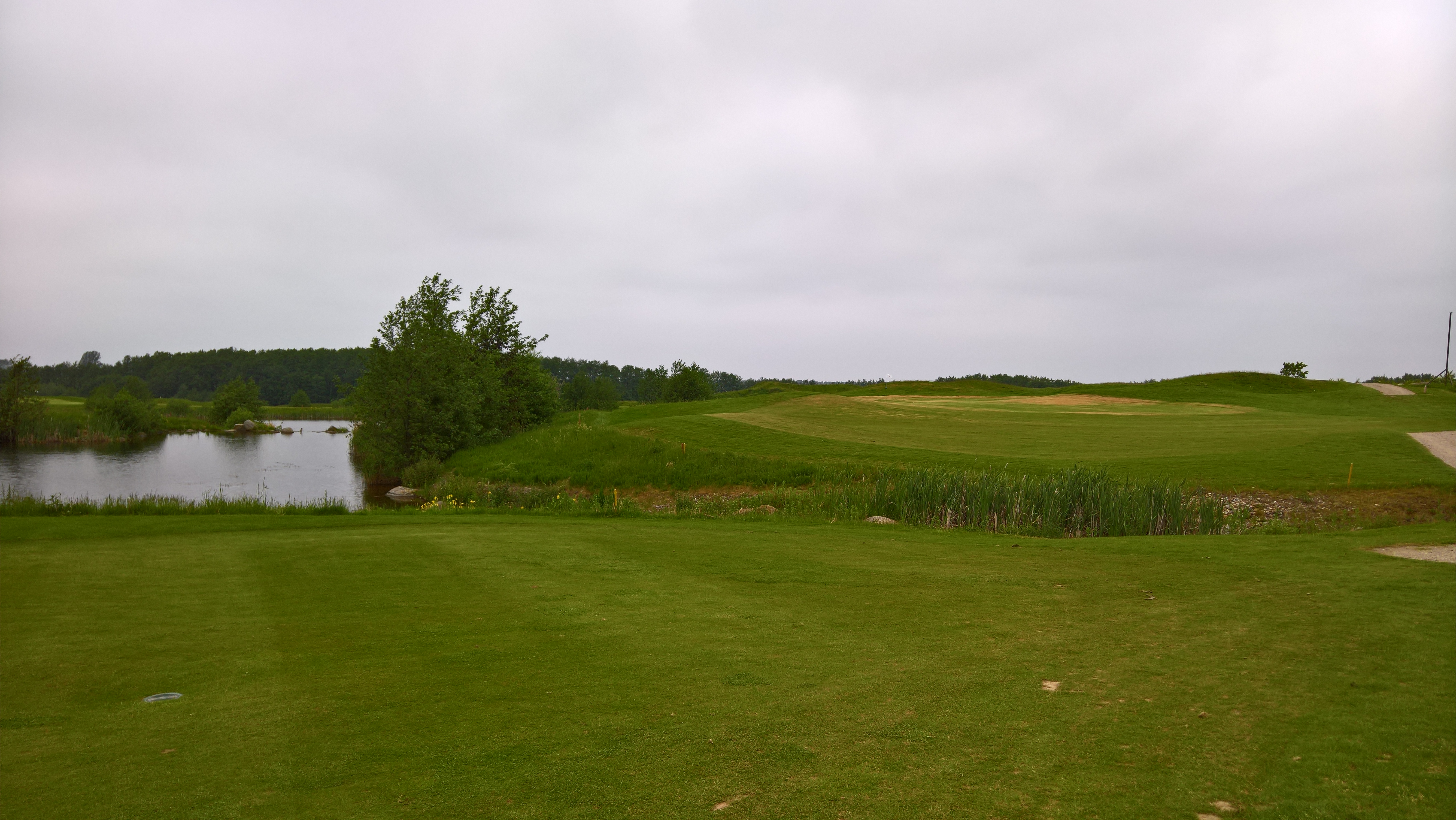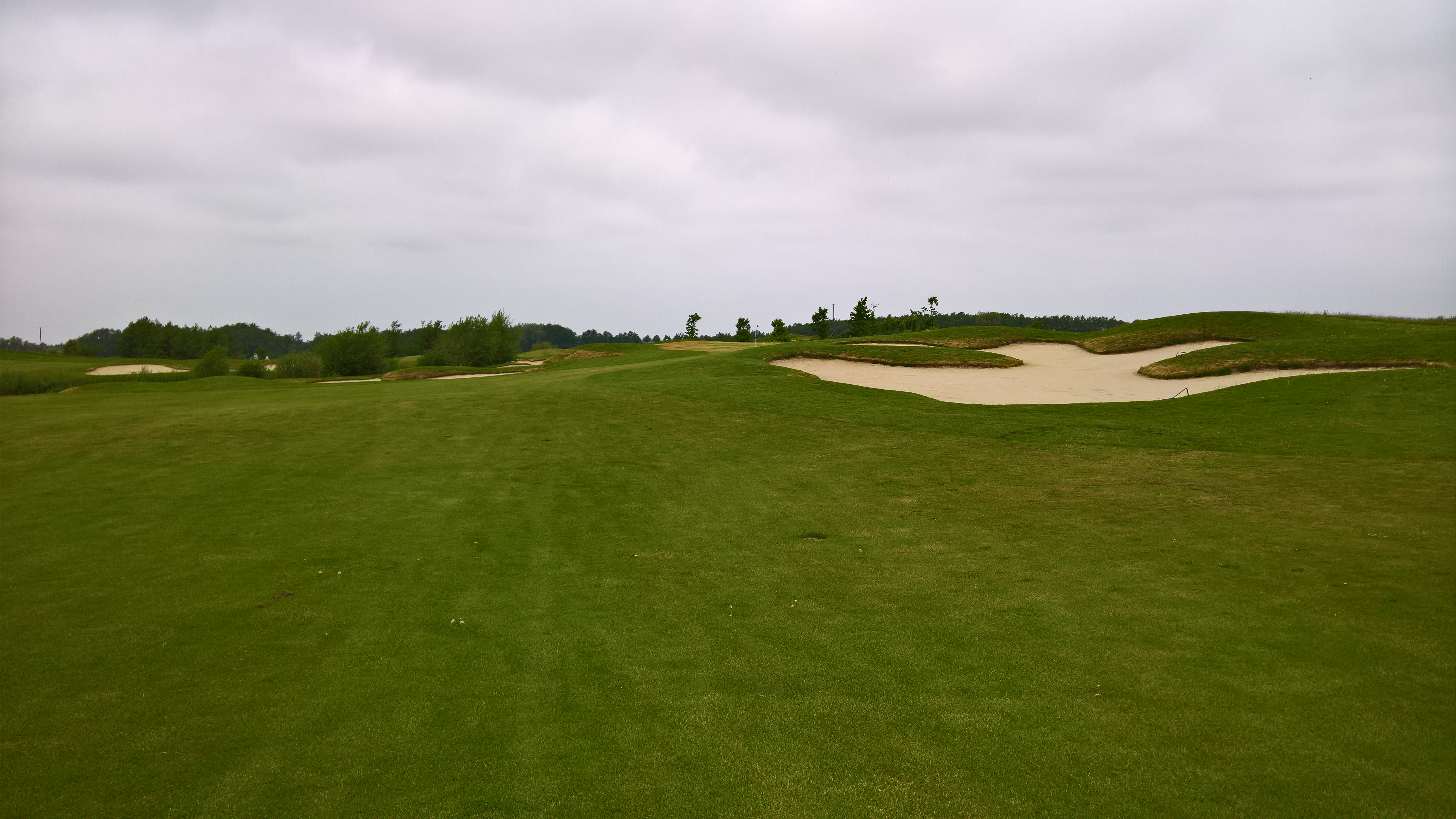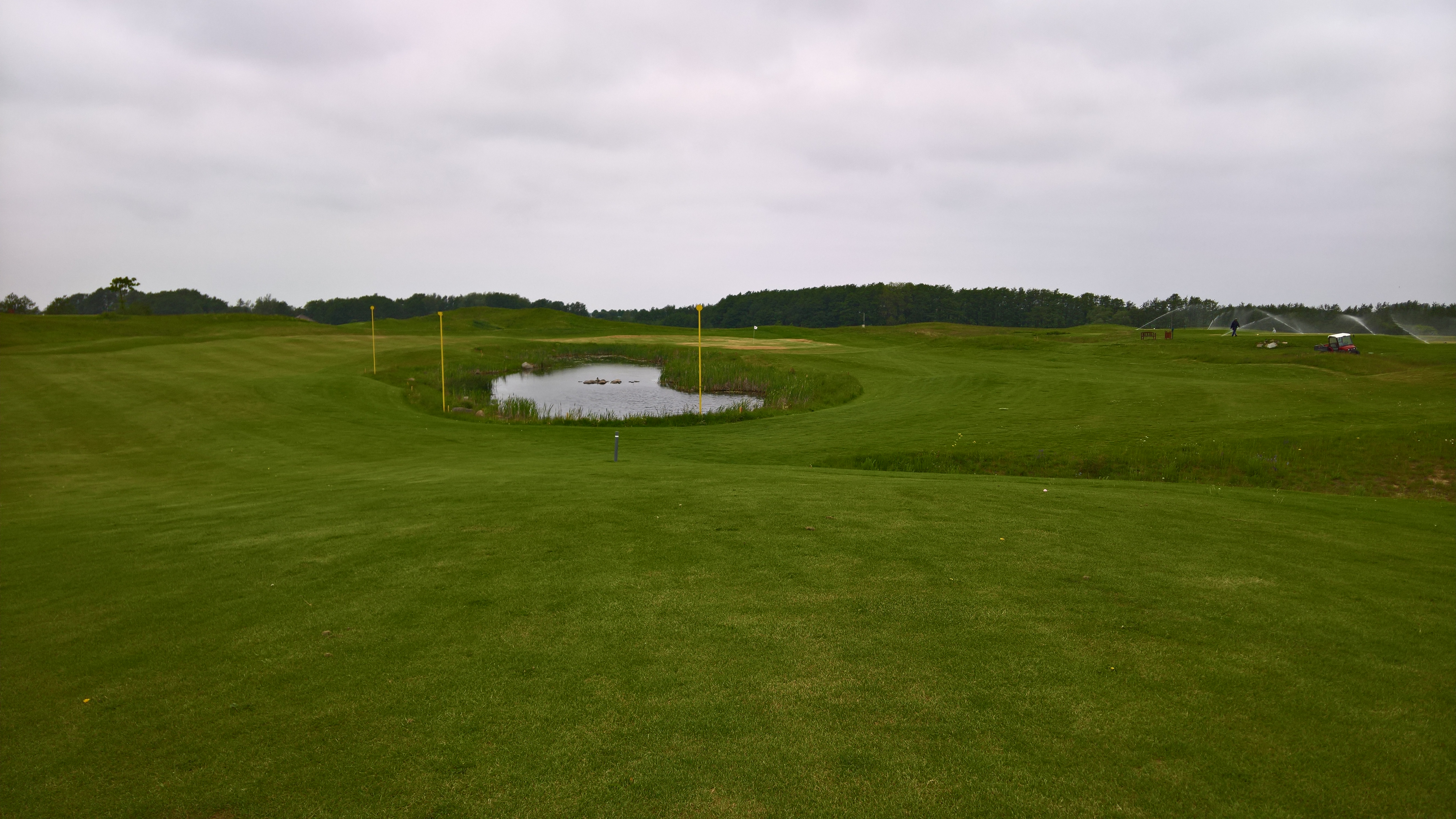 Klassisch im Linkskurs-Stil angelegt hat der Platz kaum größeren Pflanzenbewuchs, Bäume gibt es im Grund nur am Geländerand. Dafür sind die Fairways sehr wellig, es gibt hohes (fieses, gefräßiges, hinterhältiges) Rough und jede Menge Wasser. Die Grüns sind relativ groß, stark onduliert und nicht ganz so schnell wie ich erwartet hatte (aber trotzdem deutlich schneller als bei mir im Heimatclub).