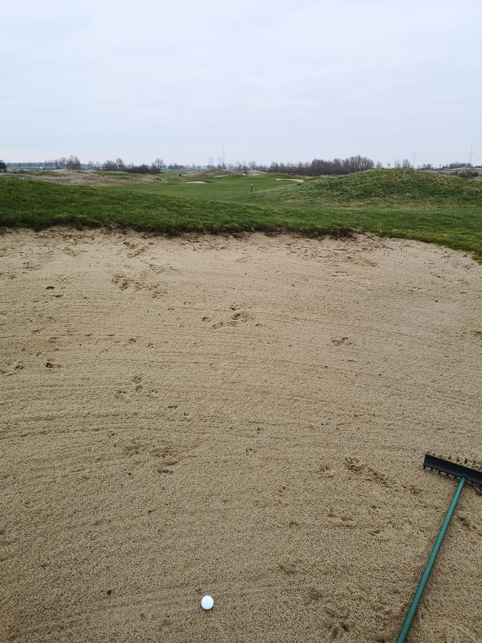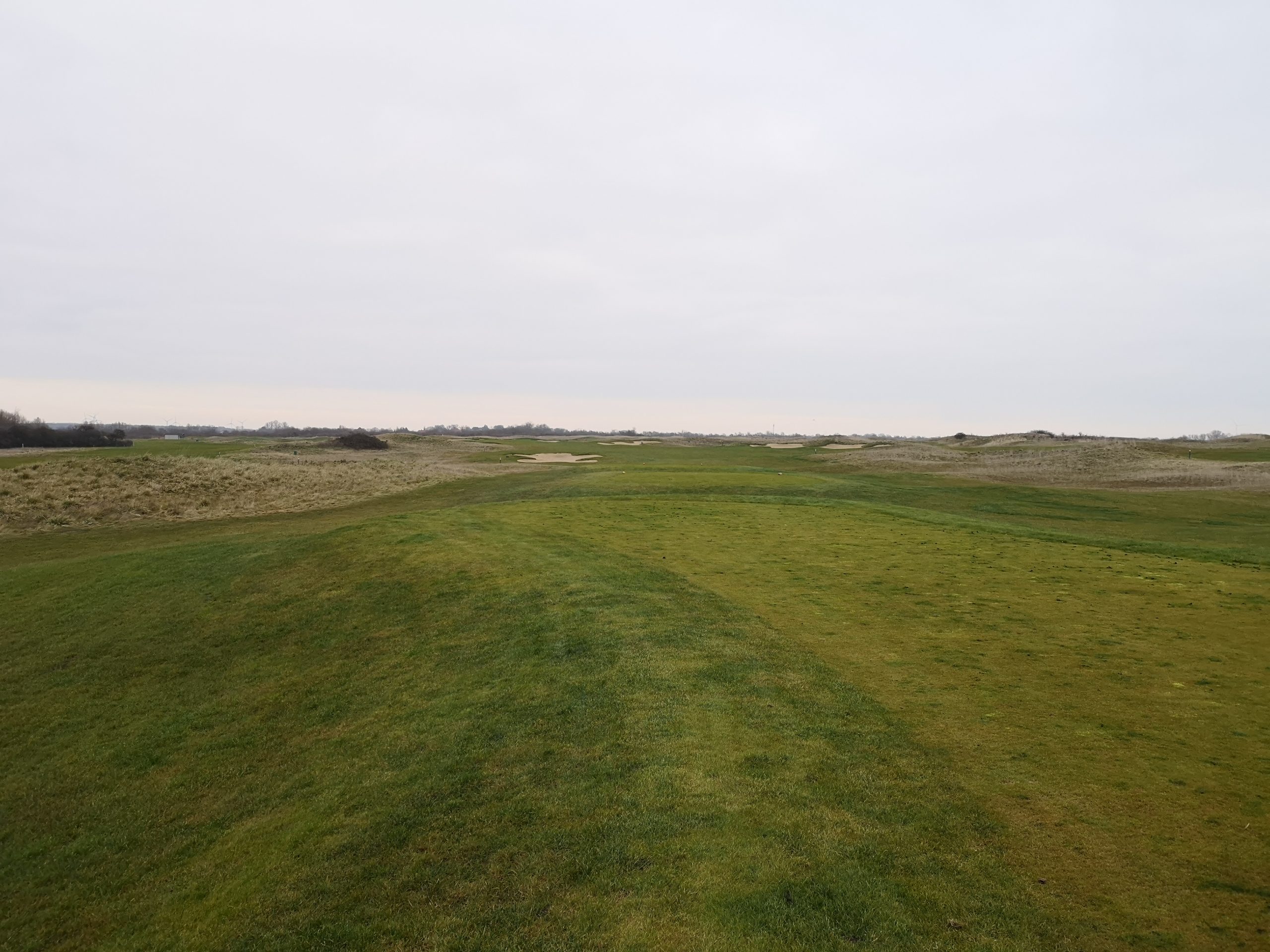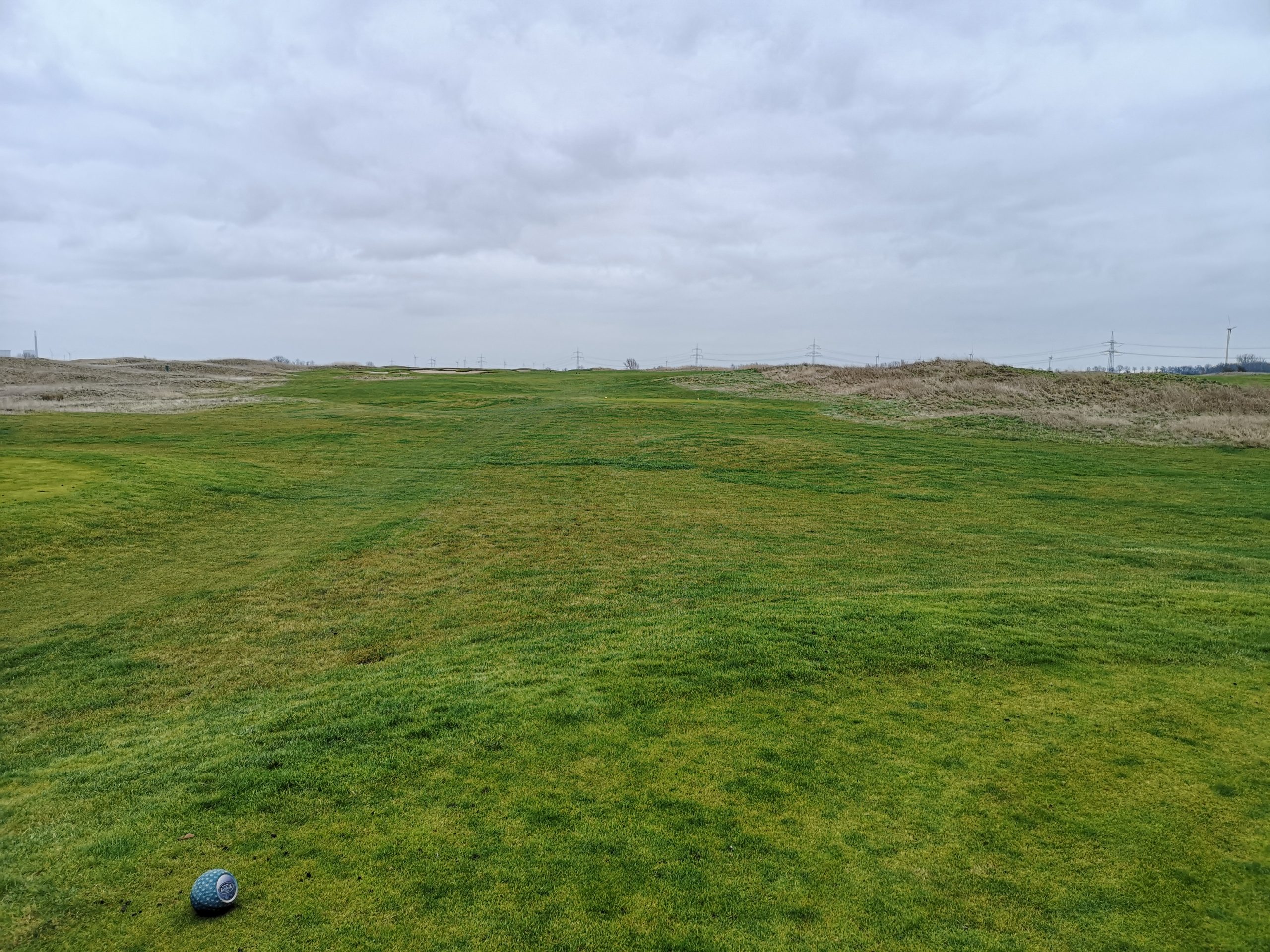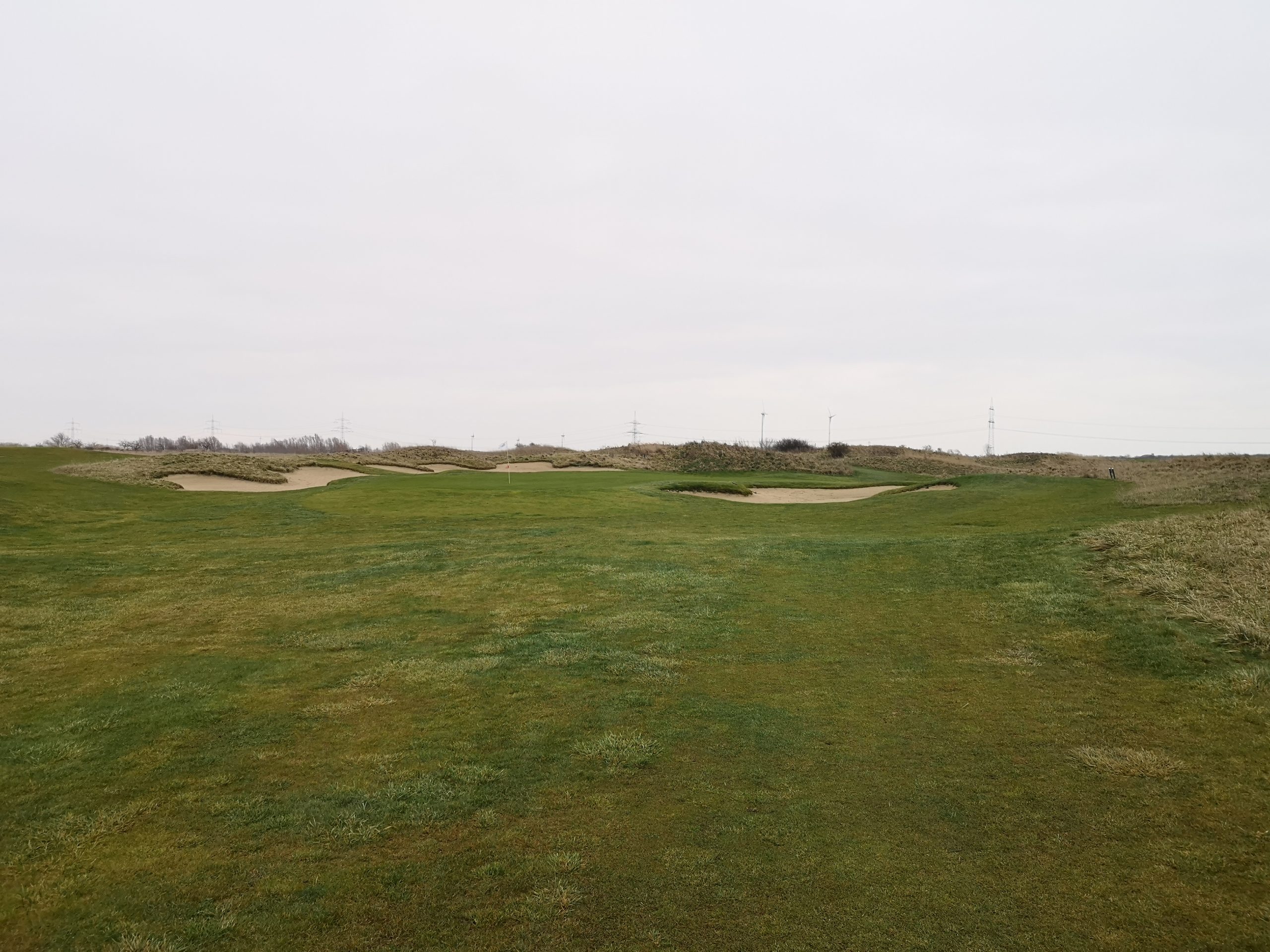 Die ersten neun kann man weitestgehend trocken gestalten – weil es nur an den Löchern eins und neun Wasser gibt. Dafür begleitet das allgegenwärtige Dünengras als Rough so gut wie jedes Fairway. Dazu gibt es einige größere Bunkerflächen, die nicht ohne sind. Es sind zwar keine Topfbunker, das fand ich aber nicht sooo schlimm…