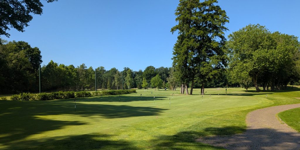 Die Übungsanlagen sind absolut ausreichend. Es gibt eine schmale aber schöne Driving Range, großzügige Abschlagbereiche und gepflegte Kurzspiel- und Puttingbereiche, sodass sich vor einer Runde noch einmal besonders gut der Approach und das Putttempo checken lassen. Das Puttinggrün neben dem ersten Abschlag hatte es mir besonders angetan – nicht riesig, aber mit ordentlichen Breaks und ein guter erster Eindruck, was auf der Runde wartet.