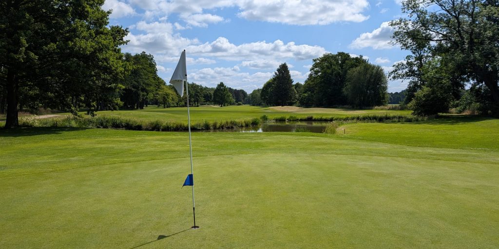 Der Platz selbst präsentiert sich als klassischer Parkland-Course: flaches Gelände, alte Eichen und Buchen, enge Fairways und punktuell eingesetzte Wasserhindernisse und Bunker. Schon die Anordnung der Bäume zwingt zur Präzision statt zur rohen Länge.